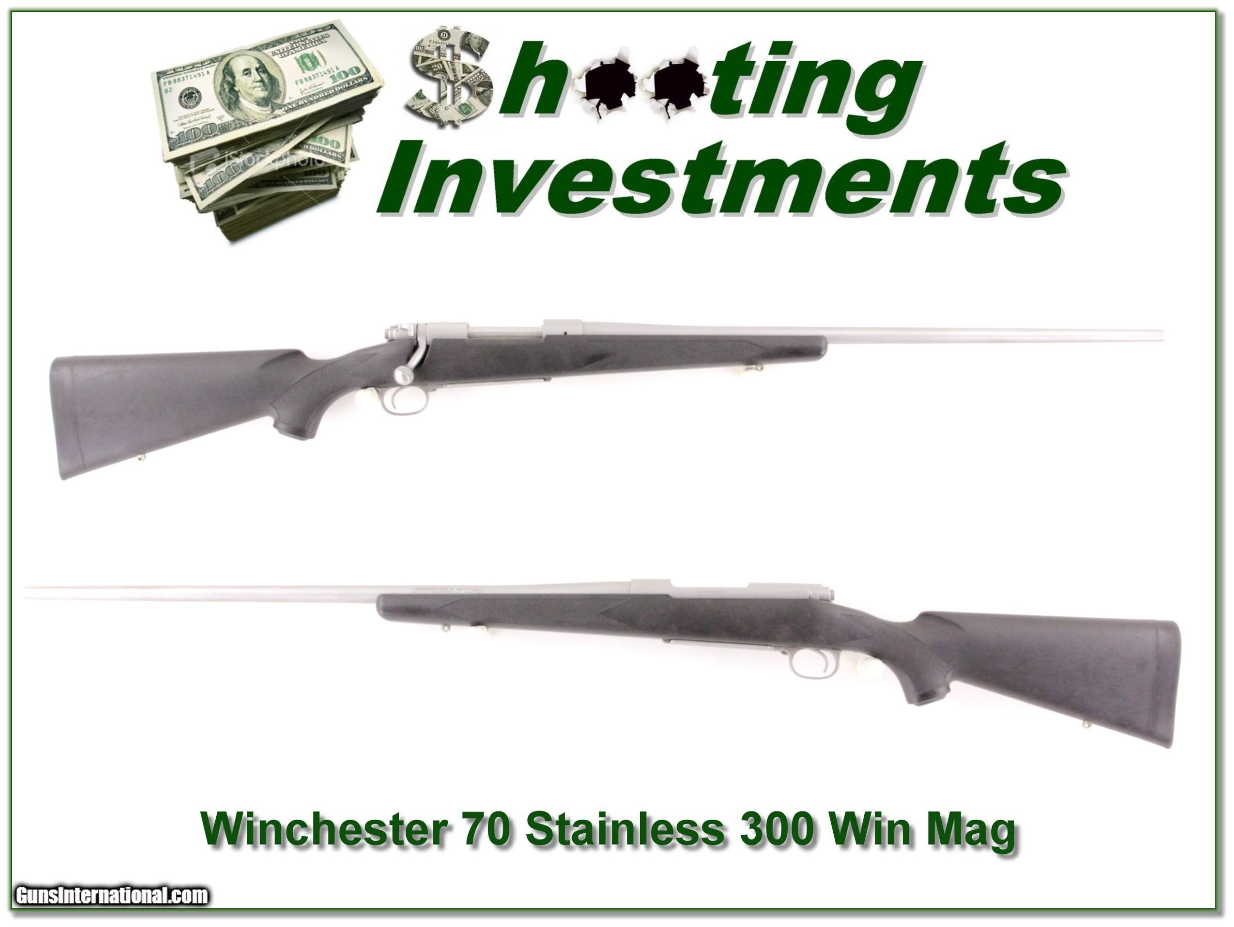 Description: This is a like new condition Winchester 70 Stainless in 300 Winchester Magnum. If fired, not more than a few rounds. I see no wear on the bolt jeweling. This is an early New Haven made Stainless 30. It will make a classic hunting gun and they just don’t make them like they used too! I am selling this one on consignment and as such lay-a-way can’t be used. It does of course have the standard 3-day inspection. Shipping with insurance is $39. Please email me with any questions or larger pictures. (Consign your quality firearms with Shooting Investments for only 12%! Let me know if you have any you would like to sell!) 19-0994 Payment: Payment is by Money Order, Cashiers Check or Personal Check. I can now also accept Credit Cards (MasterCard, Visa, Discover & American Express) with a 3% convenience fee. PayPal can be used for some items but never for firearms. Shipping: The shipping charge will be listed in each description. It is $39 for most firearms. Some heavy guns or those insured for over $2000 will be higher. Shipments to Alaska and Hawaii are higher because air shipment is required. Most firearms are shipped on Tuesday and Thursday and usually in 5 days of receipt of payment. We package all shipments carefully and insure them. Optics are shipped Priority Mail and most other non-firearm shipments are shipped First Class. Returns: Our return policy is simple. If for any reason you are not pleased with your purchase, you may return your item for a full refund of purchase price. Ammunition cannot be returned. It is important to us that you are happy. Guns cannot be fired or dissembled before returning them and they must be returned in the same condition as received. Notification of a return must occur with-in 3 days of receipt at your dealer. Shipping, convenience and dealer fees are not refundable and are the responsibility of the buyer. Lay-a-way: If needed, we offer a 60 day lay-a-way option on most firearms. It is 1/3 now, 1/3 in 30 days and 1/3 in 60 days. Lay-a-way firearm sales are final and if not completed the first payment cannot be returned. Consigning your firearms with Shooting Investments: We will help you get top dollar for your firearms. While most local guns shops charge 20% or more, our fee is only 12% with a minimum of $75. At your local gun shop it might take months to sell. Selling on-line provides instant access to thousands of interested buyers. You won’t find any other on-line dealer willing to sell your firearms for only 12% or listing every gun on 3 separate s. Selling through an House typically costs the seller 15% and the buyer an addition 15% (so 30%) and you have to wait several months to sell and longer to receive funds. If properly priced, we will sell your firearms in a few weeks. Send us an email or give us a call and we’ll explain how easy it is for you to get top dollar. Trading: Trading for use is really just buying your gun to re-sell. If you have a gun you want to trade, please email a picture and we will let you know what we can give or it. You will always get more if we sell it for you on consignment. Help for California Buyers: We are happy to ship to California. It is the buyer’s responsibility to make sure any item you buy is legal in your state. We are also happy to help with your purchase of a firearm from someone other than us. If you see a gun you would like to buy but the seller can’t or won’t ship to California they can ship to use and we’ll then ship it to your California dealer. The cost for this service is only $30 + shipping. Let us know if we can help! SOLD |
