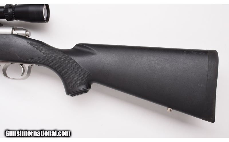 Description: Pre-owned Model 70 Stainless Classic with Pre-64 style controlled-round feed, claw extractor action. Polymer stock. Solid U.S. production rifle shows few scattered scratches and freckles. Quality optics installed. .338 Winchester Magnum SOLD Metal Condition: Matte Stainless Bore Condition: Bright/Sharp Barrels: 26 Inch Tapered Stock Dimensions: 13 1/2" LOP Butt Pad: Winchester Recoil Pad Weight: 8 lbs 9 oz Sights: Leupold VX II 3-9X 40mm Item Location: Buda, TX |