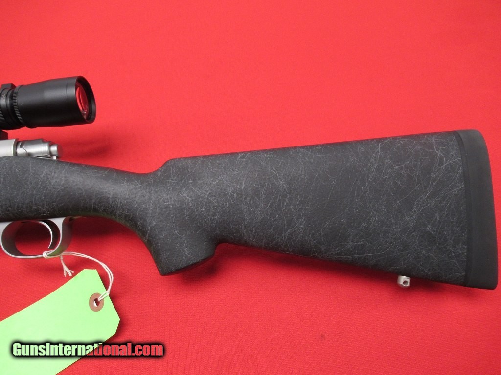 Description: Winchester Model 70 Stnls/Syn 24" w/ Leupold -- Stainless action with full-length extractor, stainless barrel with factory installed folding sight, hooded front sight, black composite stock with spidercheckering, Talley quick detach steel rings, Leupold VX-III 1.75-6x20mm scope. This gun is in virtually new condition. MINT SOLD |