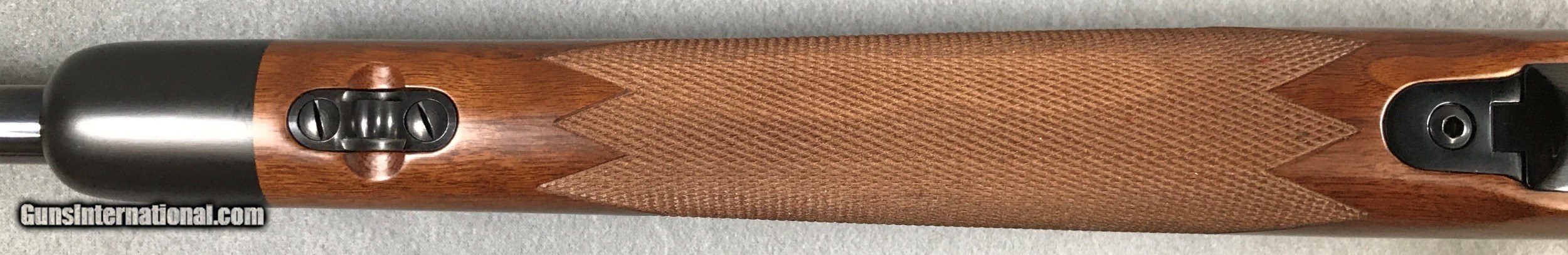 Description: Winchester Model 70 Super Grade (post-64). .338 Winchester Magnum. Pre-64 style controlled round feed with claw extractor. 3 position safety. 26" barrel. LOP 13 3/4". Grade IV/V walnut stock with shadowline cheekpiece. Super Grade inletted sling swivel studs. 8lbs 9oz. Excellent, near new condition with minor handling marks. Bore is excellent. Mfg. 2011. With Leupold, Dual Dovetail, matte finish, medium, rings and bases. $50.00 S&H SOLD Rifle Caliber: .338 Winchester Magnum Manufacturer: WINCHESTER Model: 70 SUPER GRADE Serial Number: 35CZZ03976 Barrel Length: 26 Condition: EXCELLENT Metal Condition: EXCELLENT Wood Condition: EXCELLENT Bore Condition: EXCELLENT Stock: GRADE IV/V WALNUT LOP: 13 3/4 Weight: 8lbs 9oz Manufacture Date: 2011 |