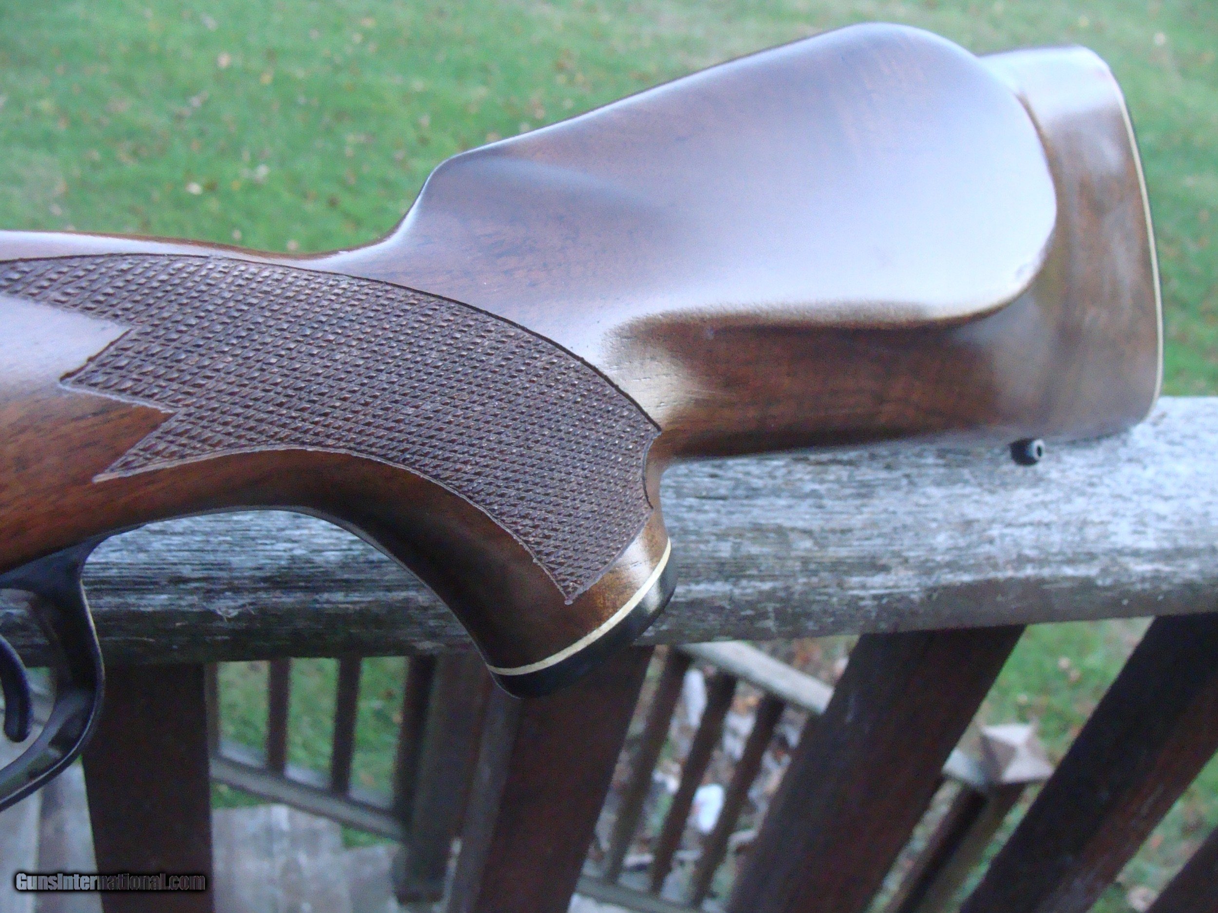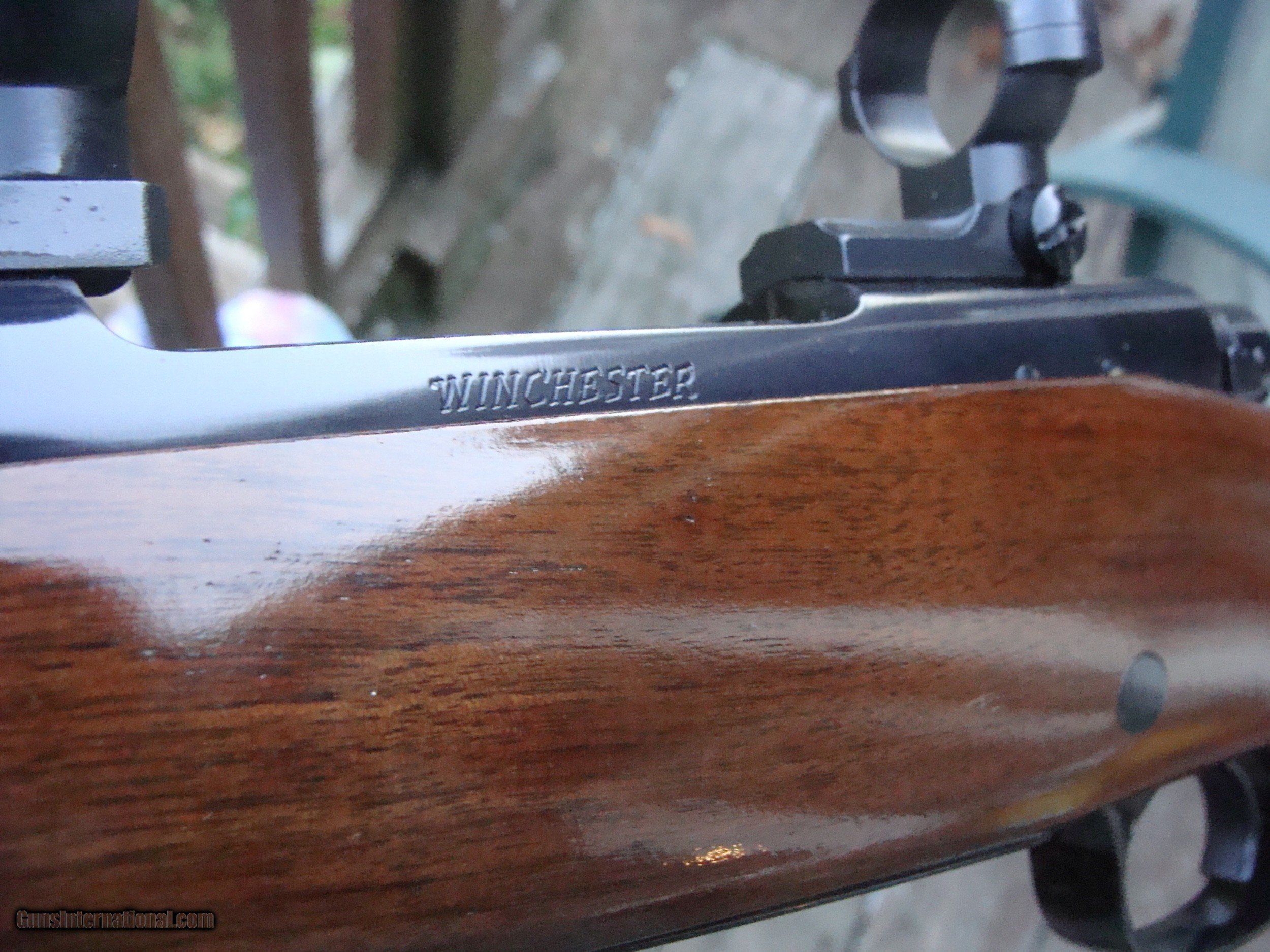 Description: Rarely found; we have had this gun twice and its the only Med-Heavy Barreled Varmint model of its type we have seen. In the years following the dismal (for Winchester) 1964 Transition era Winchester knew they would have to up their game to compete with Remington; this beauty and others similar were the result; deep blue high polish luster, real cut checkering with medium to dark American Walnut stock. The medium to heavy barrel is not so heavy that it cannot be carried. Only a few modest handling and safe marks distinguish and blems to finish prevernt this from being described as in near new cond. Sights have been removed for scope clearance and did not come to us with the gun. There are no non factory modifications. We have many excellent used scopes, both periof correct and newer we sell at bargian prices, pls inquire This is a true New Haven Ct. made Winchester. Shipping to any location in the lower 48 States USPS Priority is $ 49.00 WE ARE AN FFL 01 IN THE NORTHEAST WHERE MANY FINE US MADE GUNS WERE PRODUCED AND WE OFTEN GET SOME FAIRLY HARD TO FIND AND HARDLY USED GUNS. WE HAVE OVER 1500 SALES ON ALL SITES WITH AN A+ RATING ON ALL (WE ALSO KEEP AN INVENTORY OF OLDER PERIOD CORRECT SCOPES; CALL WITH NEEDS) WE MOSTLY PICK VERY CLEAN GUNS, PRICE THEM FAIRLY AND WORK WITH MODEST MARGINS WE ARE HAPPY TO TAKE CONSIGNMENT GUNS AND COLLECTIONS OR WILL BUY YOURS OUTRIGHT. WE SOMETIMES ARE EMPLOYED FOR ESTATE PURPOSES AND VALUATIONS. CT RESIDENTS MUST CONTACT US TO UNDERSTAND OUR IN STATE TRANSFER POLICIES. WE CAN TAKE A CREDIT CARD HOWEVER THERE IS A 3% ADD ON BASED ON THE TOTAL FOR USE OF A CARD. IT IS ALWAYS THE BUYERS RESPONSIBILITY TO GET US A COPY OF YOUR RECEIVING FFL'S LIC AND WE REQUIRE A COPY OF YOUR PHOTO ID BEFORE THE GUN SHIPS YOU MUST CALL YOUR FFL.WE DO NOT CALL FOR YOU. LAYAWAY PURCHASES NOT COMPLETED OR ANY RETURNED ITEM UNLESS NOT AS DESCRIBED ARE SUBJECT TO A 10% RELISTING/RESTOCKING FEE AND MUST BE RETURNED WITH NO MARKS OR SCRATCHES, SENT BACK INSURED, PRIORITY SIGNATURE REQUIRED WE DO NOT OFFER AN INSPECTION PERIOD PER SE HOWEVER GUNS MAY BE RETURNED IF NOT EXACTLY AS DESCRIBED HOWEVER UNDER NO CIRCUMSTANCE MAY ANY GUN TO BE RETURNED HAVE BEEN REMOVED AT ANY TIME FROM RECEIVING FFL DEALERS PREMISIS SOLD |