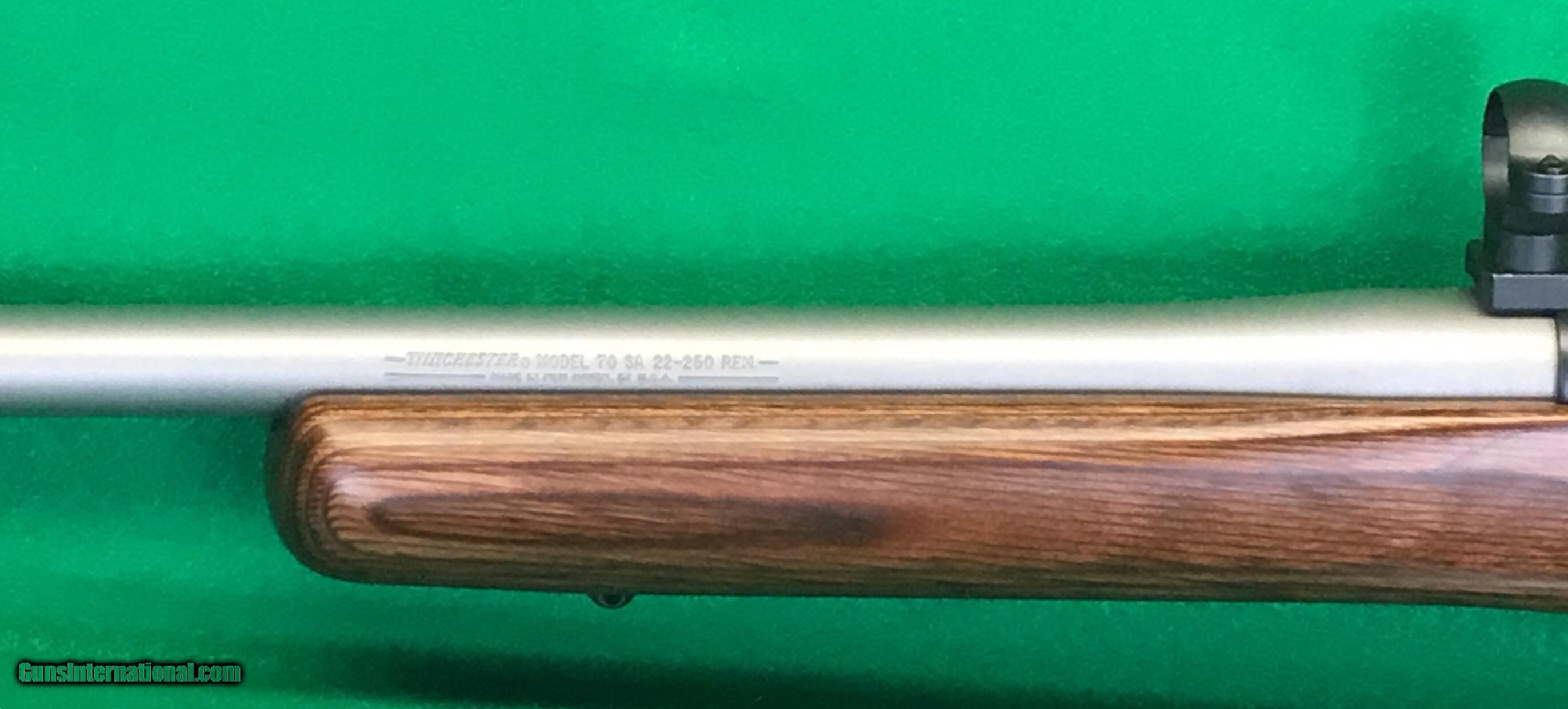 Description: Winchester M70 varminter “Coyote” in 22-250 Remington. Brown laminated stock with 24 inch heavy stainless barrel. Bore looks new. Rifle is in near mint condition with Leupold rings and bases. $898 plus $38 insured shipping. No credit cards and no trades. Lay-a-way available. SOLD |