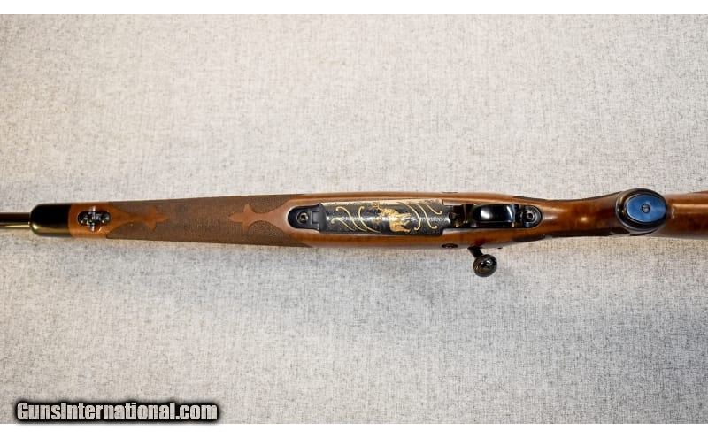 Description: This is a factory direct Winchester model 70 Super Grade Western Big Game Series Mule Deer edition in .264 Winchester Magnum limited to 129 rifles, the series features high polished blue finish, specially engraved floor plate with gold enhanced deer, highly figured AAA Claro walnut stock with shadowline cheekpiece and fleur-de-lis checkering .264 Winchester Magnum SOLD Metal Condition: Very good with a few small scratches Wood Condition: Very good with a few small scratches Bore Condition: Clean with bright lands Barrels: 26" hammer forged Triggers: M.O.A. trigger system Stock Dimensions: 13 3/4" LOP Fore End: Checkered AAA grade Claro walnut Butt Pad: Pachmayr Decelerator Weight: 8 lbs. Sights: Drilled and tapped for scope rings Item Location: Glendale, AZ |