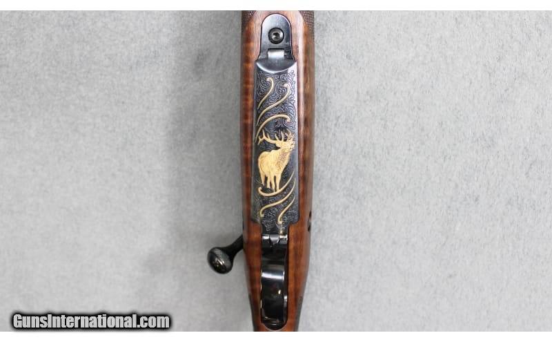 Description: Factory New Limited Series – Winchester Model 70 Western Big Game Series bolt action rifle chambered in .300 Winchester Magnum. Features include a high polished blue finished receiver and 26-inch barrel along with a specially scroll-engraved floor plate with gold enhanced game scene showing a Bull Elk. Highly figured AAA Claro walnut stock with shadowline cheekpiece and fleur-de-lis checkering. Very limited production of only 80 copies. Comes in a factory box with accessories. .300 Winchester Magnum SOLD Metal Condition: Factory New Wood Condition: Factory New Bore Condition: Factory New Barrels: 26 inch Butt Pad: Pachmayr Decelerator Recoil Pad Sights: Drilled & Tapped Item Location: Fort Worth, TX |