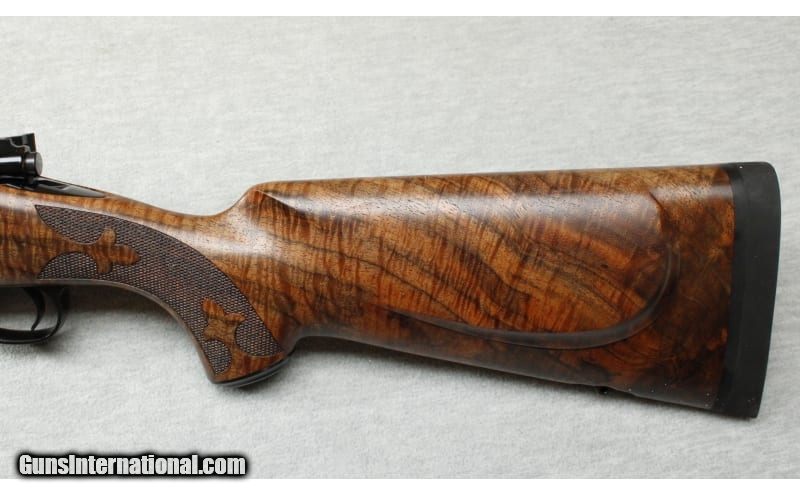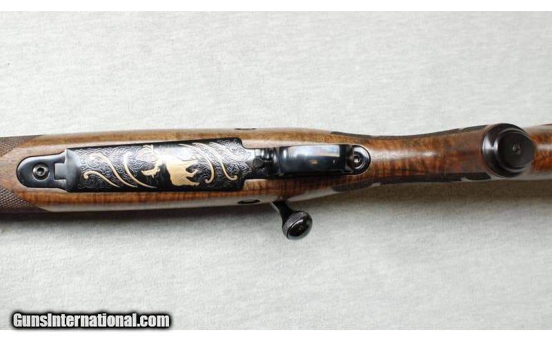 Description: Limited to only 129 rifles, the Mule Deer edition is chambered in 264 Winchester and features high polished blue finish, Specially scroll engraved floor plate with gold enhanced game scene. Highly figured AAA Claro walnut stock with shadowline cheekpiece and fleur-de-lis checkering. Very limited supply production, New in factory box. None SOLD Chambers: Bolt action Metal Condition: New Wood Condition: New Bore Condition: Bright Barrels: 26 Triggers: Factory Stock Dimensions: 13 1/2" LOP Fore End: Checkered Butt Pad: Factory pad Item Location: La Vista, NE |