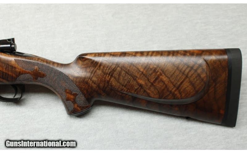 Description: Limited to only 80 rifles, the Elk Edition is chambered in .300 Winchester Magnum and features high polished blue finish, Specially scroll engraved floor plate with gold enhanced game scene. Highly figured AAA Claro walnut stock with shadowline cheekpiece and fleur-de-lis checkering. Very limited supply production, New in factory box. .300 Winchester Magnum SOLD Chambers: Bolt action Metal Condition: New Wood Condition: New Bore Condition: Bright Barrels: 26 Triggers: Factory Stock Dimensions: 13 1/2" LOP Fore End: Checkered Butt Pad: Factory pad Item Location: La Vista, NE |