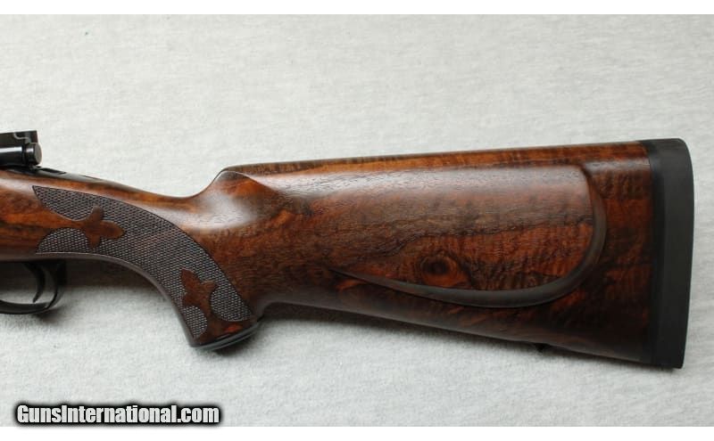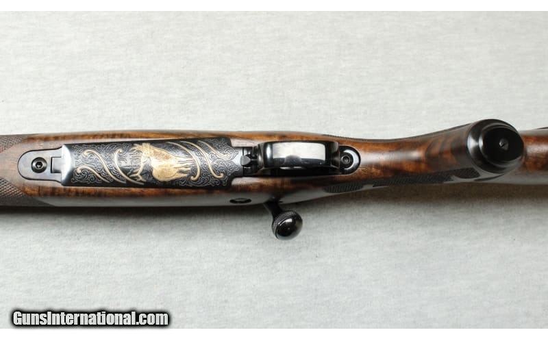 Description: Limited to only 80 rifles, the Elk Edition is chambered in .300 Winchester Magnum and features high polished blue finish, Specially scroll engraved floor plate with gold enhanced game scene. Highly figured AAA Claro walnut stock with shadowline cheekpiece and fleur-de-lis checkering. Very limited supply production, New in factory box. .300 Winchester Magnum SOLD Chambers: Bolt action Metal Condition: New Wood Condition: New Bore Condition: Bright Barrels: 26 Triggers: Factory Stock Dimensions: 13 3/4" LOP Butt Pad: Decelerator pad Item Location: La Vista, NE |