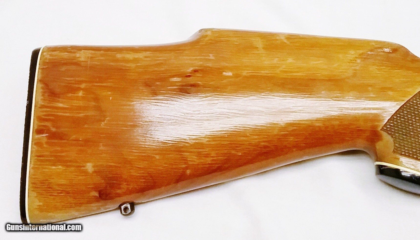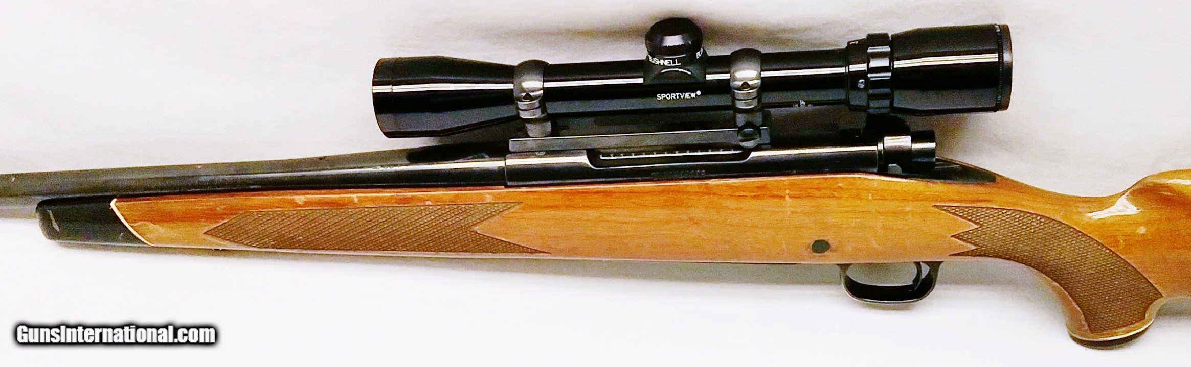 Description: This .30-06 (Post 64) Winchester Model 70 has a 21-3/4” blued round tapered barrel that is drilled and tapped for sights. The bore is in very good condition. The blued receiver is also in very good condition and mounted to the receiver is a 3-9x Bushnell Sportview scope. The Walnut stock features a black forend tip and pistol grip cap as well as checkering on the forend and wrist. The stock finish is lifting throughout and has some usage dents and scratches. Rifle comes with two sling swivel studs and the original Winchester checkered synthetic buttplate. Overall, this rifle is in good condition. Length of pull is 13-1/2”, overall length is 42-1/2”, and weight is 8.2 lbs. Our stock number is A963. Willing to ship to any FFL in the United States, buyer pays freight and insurance. SOLD Manufacturer: Winchester Model: Model 70 (Post 64) Caliber Info: .30-06 Bore: Rifled Condition: Good Bore Condition: Very Good Barrels: One Barrel Type: Tapered Round Action: Bolt Action Triggers: One Stock: Walnut Butt Pad: Synthetic LOP: 13-1/2 in Finish: Blued Weight: 8.2 lbs Sights: Scope Item Location: OR |