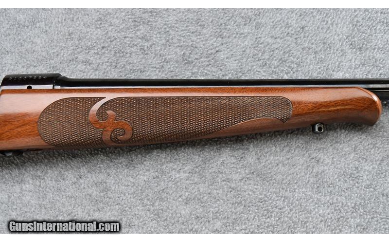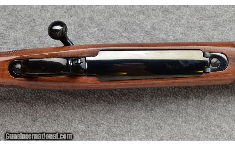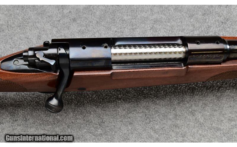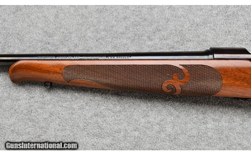 Description: This Winchester Model 70 Featherweight remains in overall excellent condition. There are a few light indentations on left buttstock but remainder is excellent. Blue and bore are also excellent. Push Feed action. No box. 7mm Mauser SOLD Metal Condition: Excellent Wood Condition: Very Good Bore Condition: Excellent Barrels: 22 Triggers: 6 LB Trigger Pull Stock Dimensions: 13 1/2" LOP Fore End: Checkered Walnut Pistol Grip with Black Pistol Grip Cap - Checkered Walnut Schnabel Butt Pad: Red Winchester Butt Pad Weight: 7lbs Sights: None Item Location: Richfield, WI |