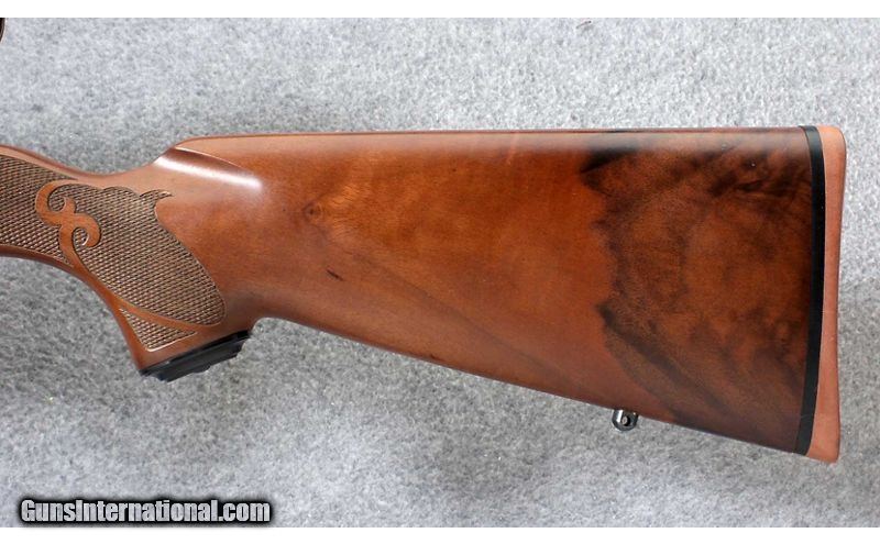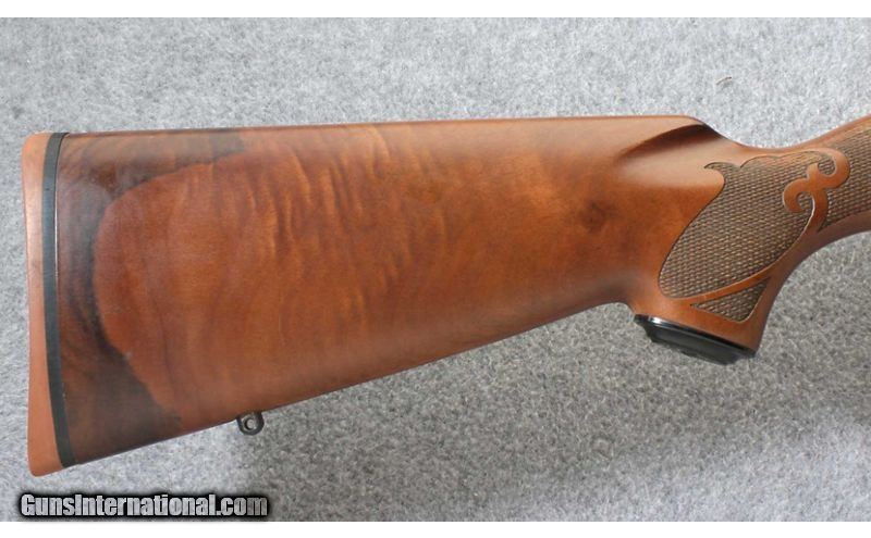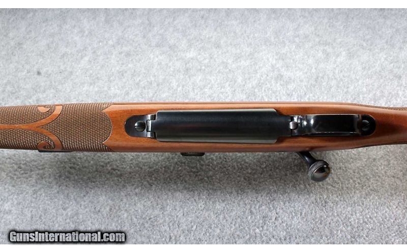 Description: This Winchester Model 70 XTR Featherweight features a push feed action, walnut stock, hinged floor plate magazine for safe unloading and a three position safety. 7mm Remington Magnum SOLD Metal Condition: Very good with some finish wear on the bottom of the barrel Wood Condition: Excellent with handling marks Bore Condition: Excellent Barrels: 24 inch barrel Stock Dimensions: 13 1/2 inch LOP Fore End: Checkered walnut with Schnabel tip Butt Pad: Winchester rubber pad Weight: 8 Lbs. 2 Oz. Sights: Fixed power scope Item Location: Lehi, UT |
