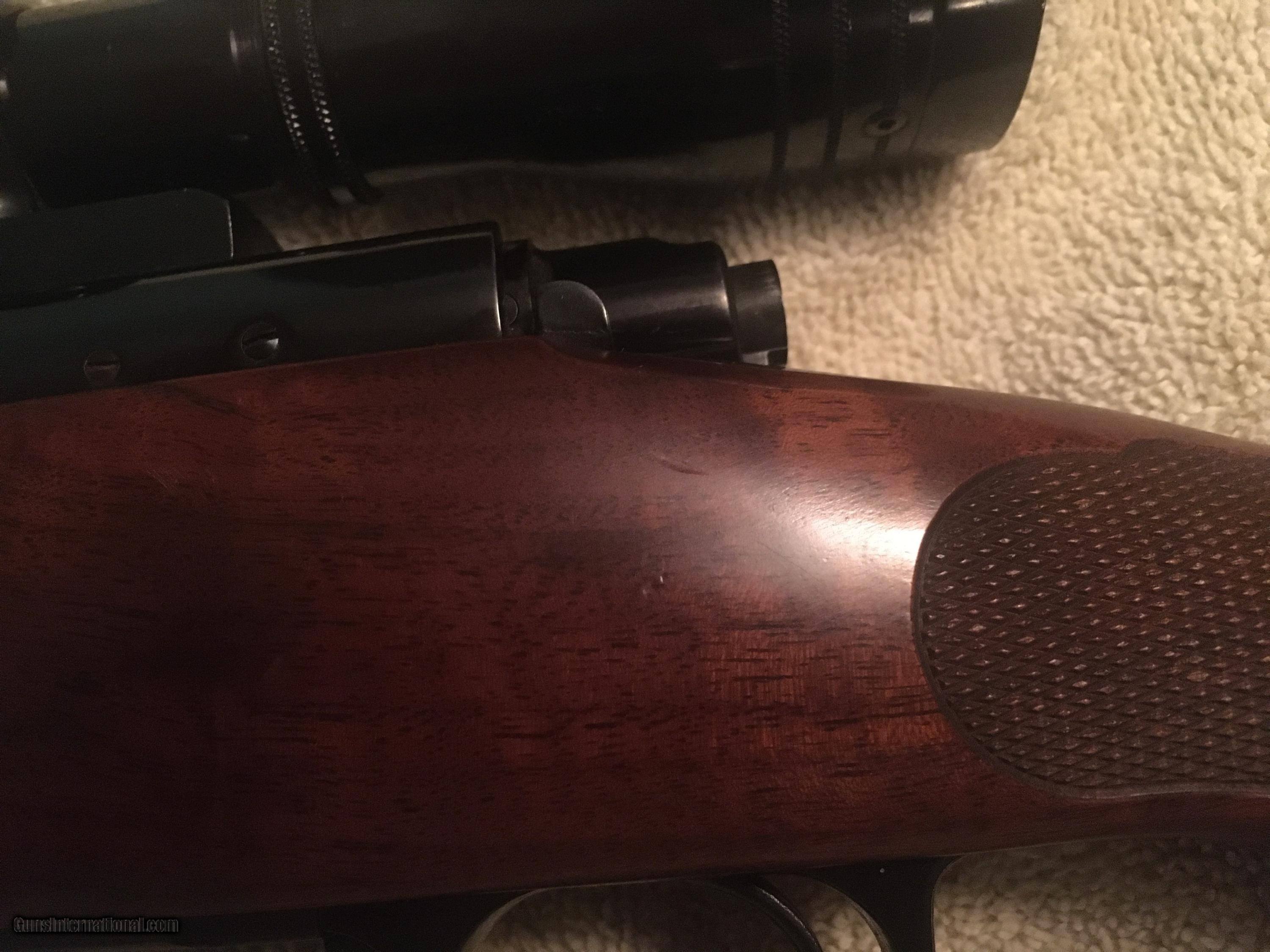 Description: Winchester Featherweight in .257 Roberts. Excellent condition checkering is crisp and clean.One tiny little ding in wood below Bolt Release left side.slight Bluing loss very tip of Barrel.4X Redfield scope on top. SOLD |
