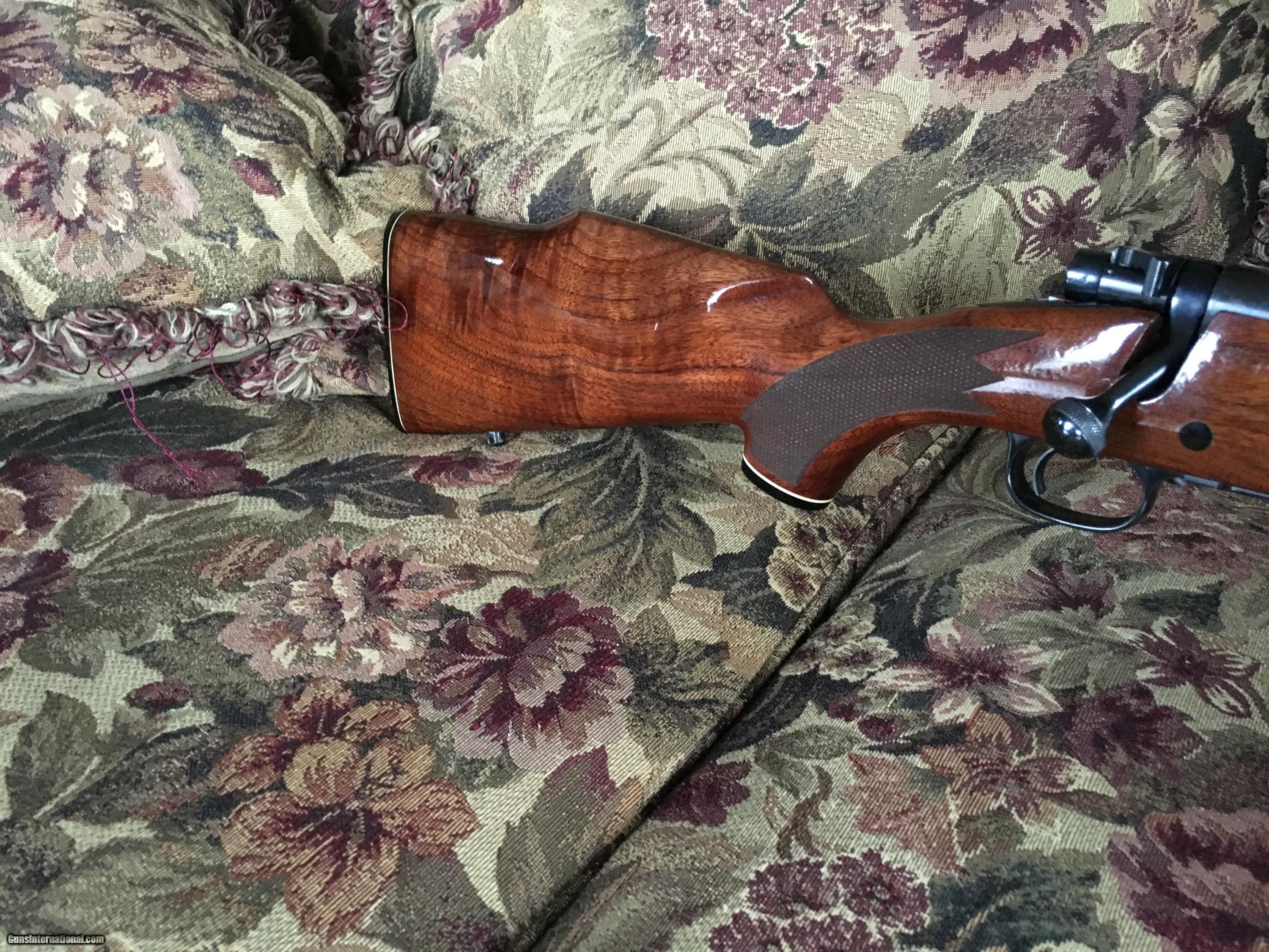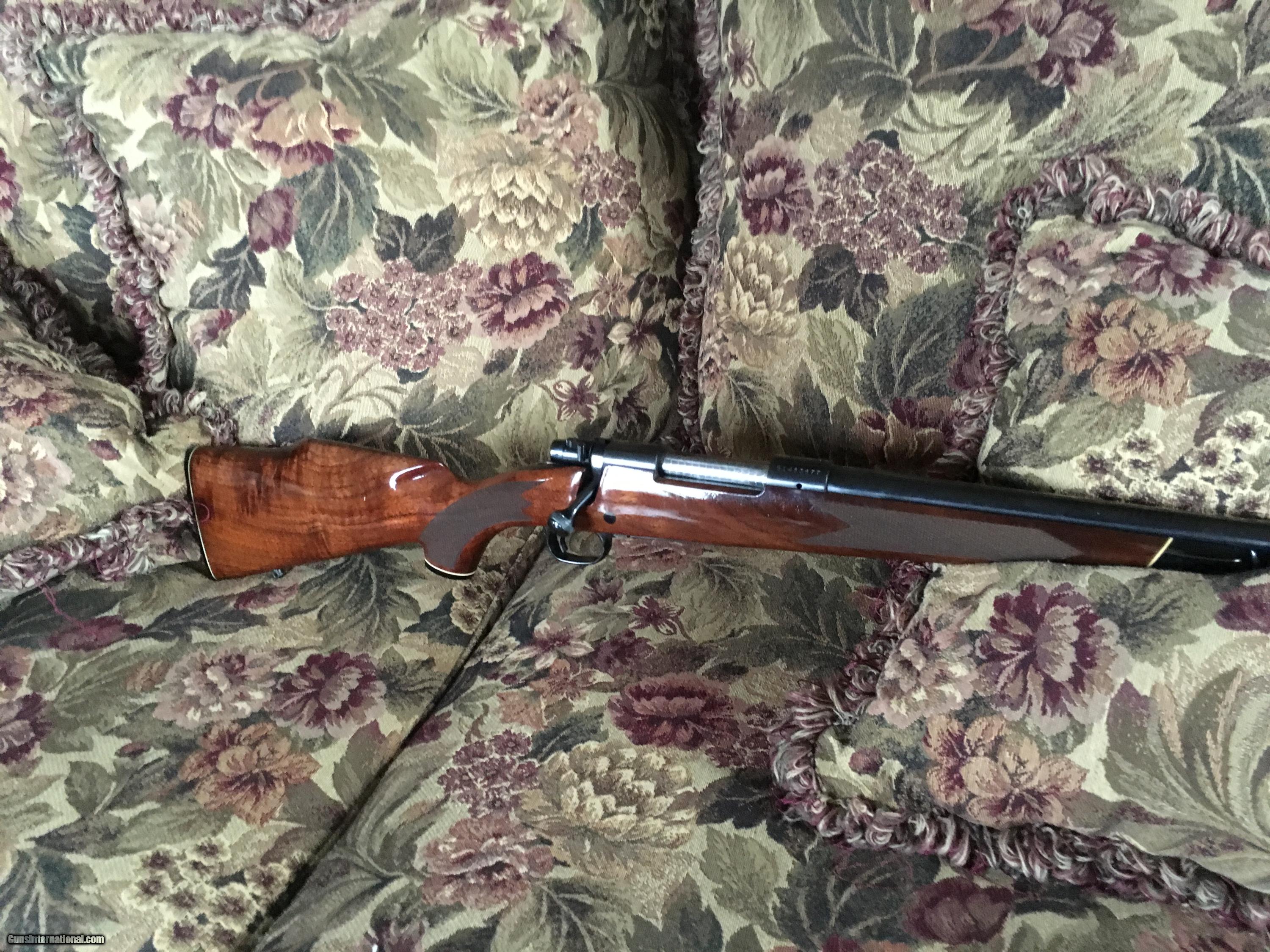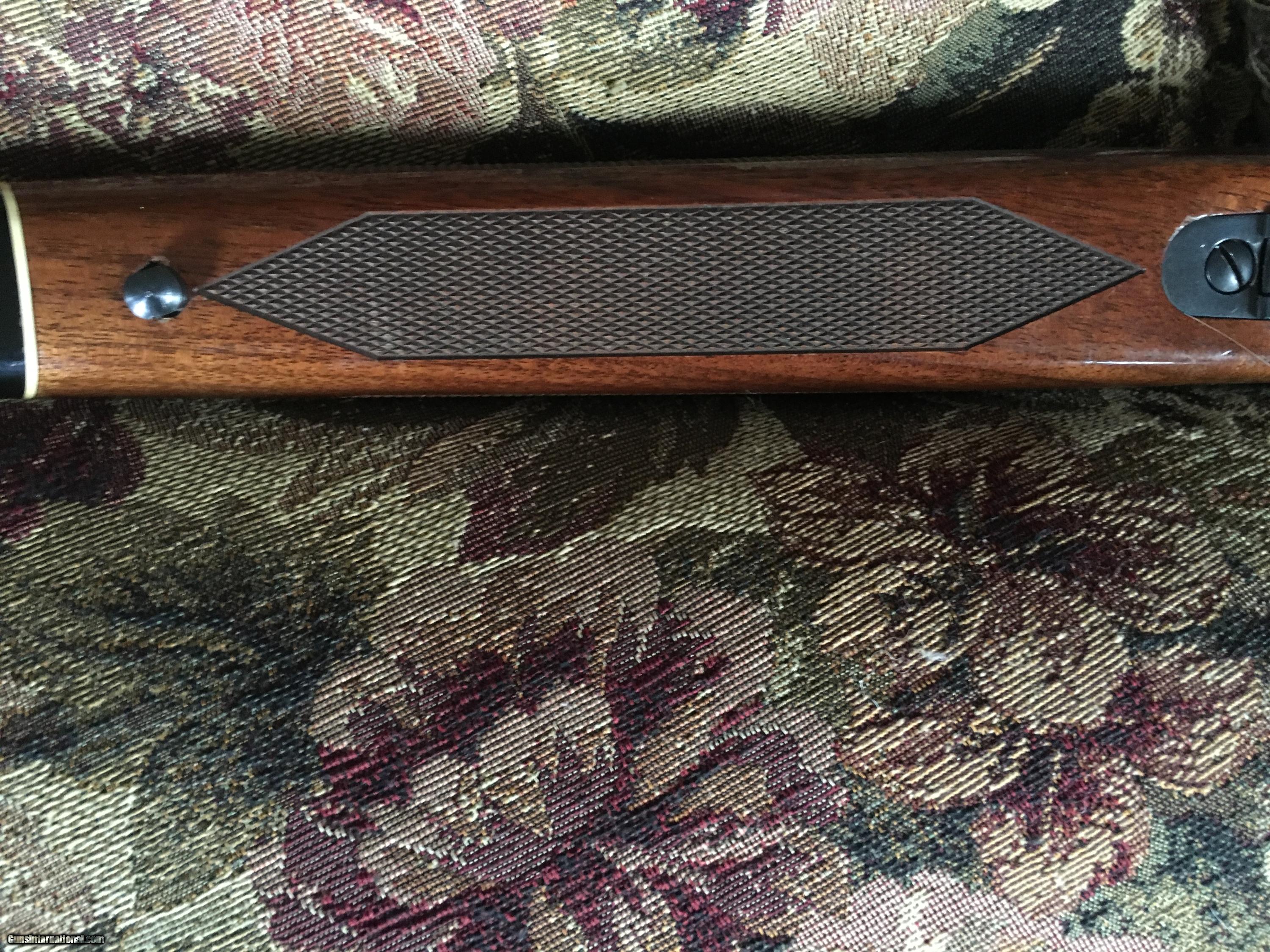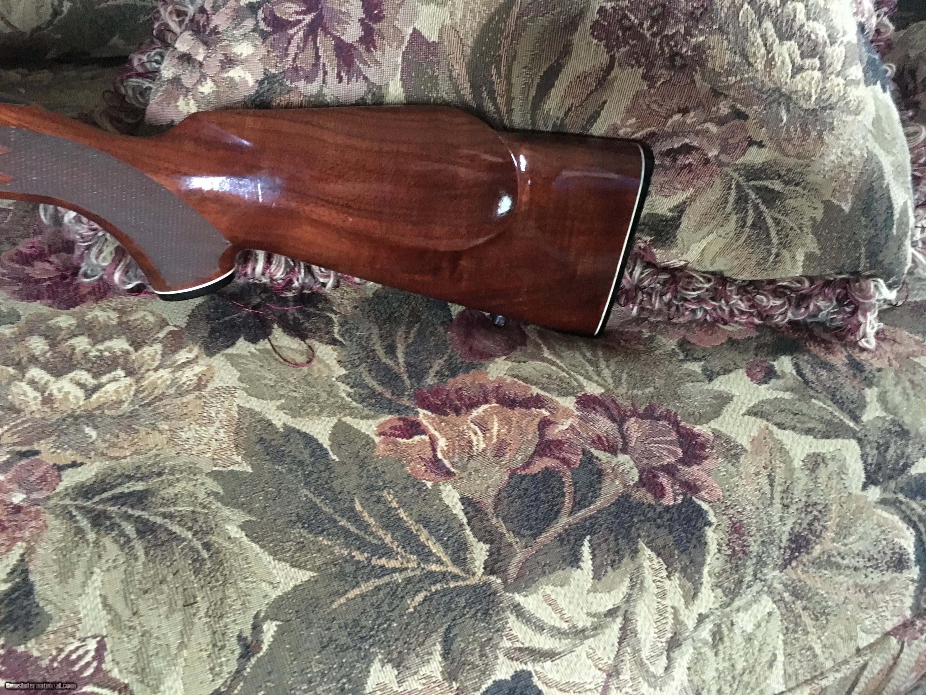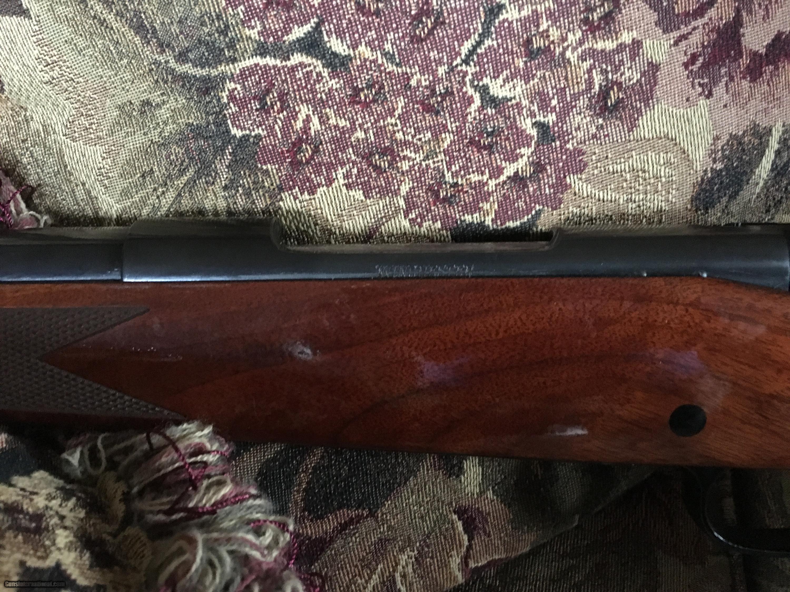 Description: Light glare on right of butt stock & wood under bolt. Also on cheek piece back & at the back of stock. Late 70's Winchester Model 70 .243 Bull Barrel 24". Gun is in excellent shape 98% wood 99% blue. Great Wood! Please call with questions or to buy. SOLD |