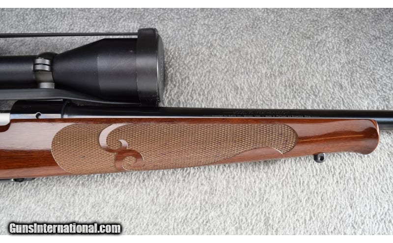 Description: This Winchester was manufactured and assembled in Portugal by Browning and remains in excellent overall condition. Wood is solid and retains high gloss finish. Blue and bore are excellent. No box. Complete with Zeiss Conquest scope with Duplex Reticle. Controlled Round Feed action. .30-06 Springfield SOLD Metal Condition: Excellent Wood Condition: Excellent Bore Condition: Excellent Barrels: 22 Triggers: Factory - 3 Lb Trigger Pull Stock Dimensions: 13 3/4" LOP Fore End: Checkered Walnut Pistol Grip with Black Pistol Grip Cap - Checkered Walnut Schnable Forend Butt Pad: Decelerator Black Rubber Butt Pad Weight: 8 1/2 lbs Sights: Zeiss Conquest 3.5-10x44 Scope with Duplex Reticle Item Location: Wheeling |