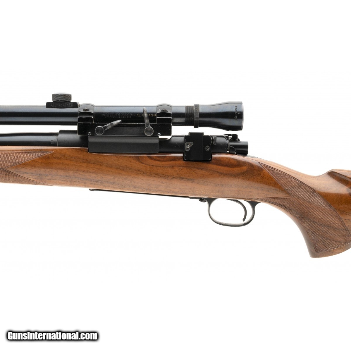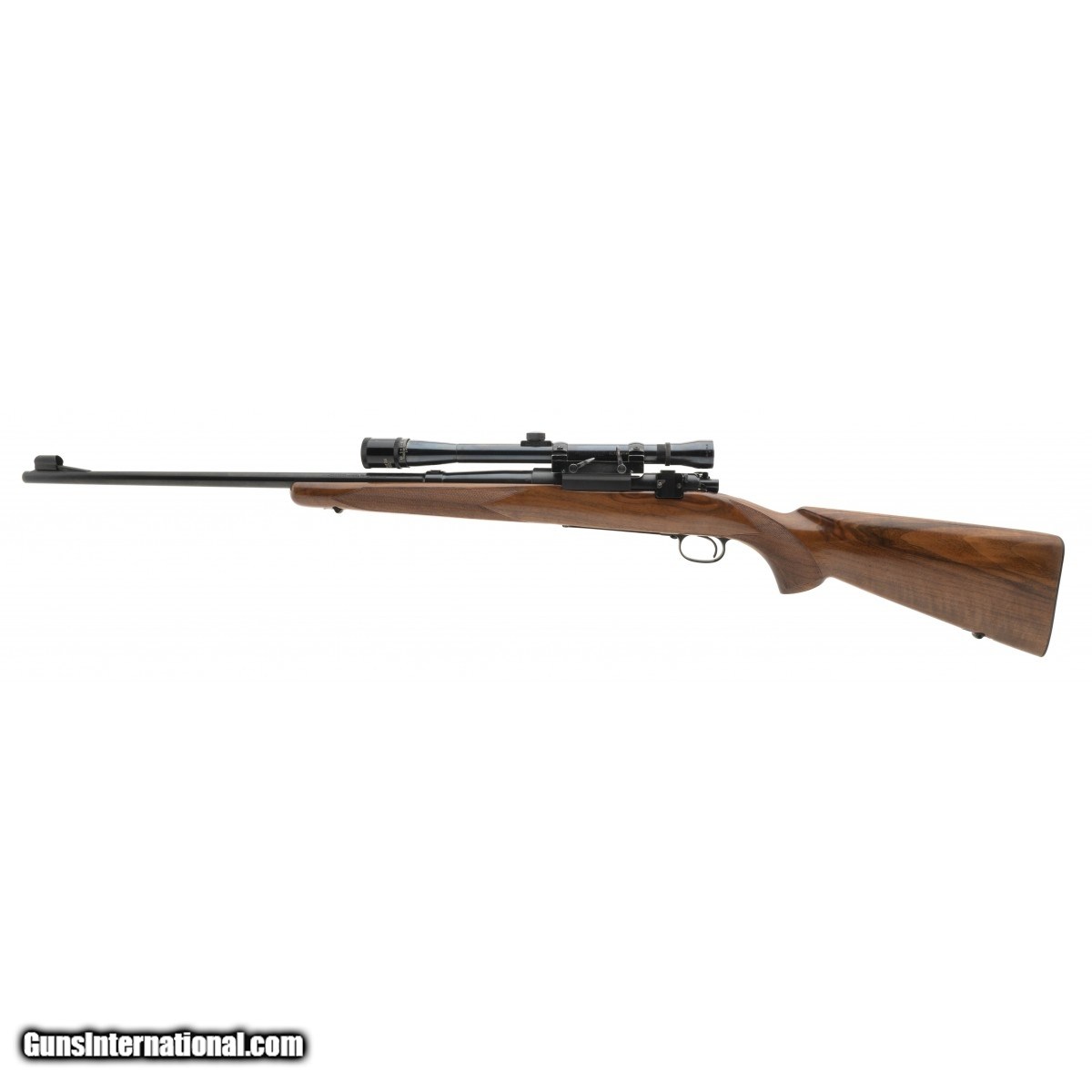 SN: 20069. Made in 1938. .22 Hornet with a 24"" barrel. Bore is excellent. Pre 64 bolt action rifle with Griffin & Howe side mount done by Griffin & Howe, 95 % original finish with expertly refinished stock. Has a Lyman Alaskan 2.5X scope. Overall condition is Excellent. Consignment.