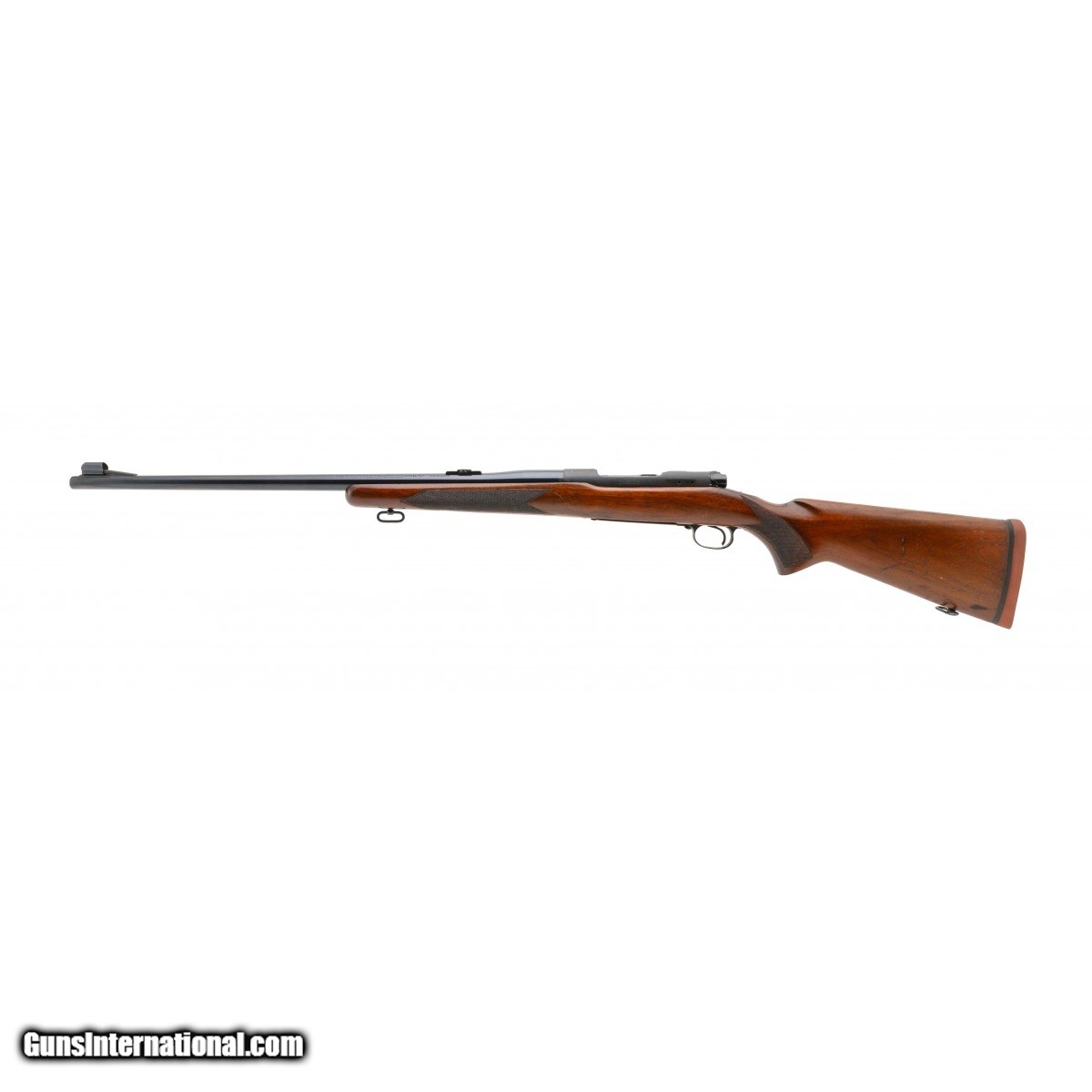 SN: 140558. Made in 1950. 375 H&H Magnum with a 25"" barrel. Bore is shiny with strong rifling. Pre-64 Big game Winchester bolt action rifle. Finish is in good condition with wear noted. Stock shows handling wear with strong checkering remaining. Rifle does have a replacement 2 leaf sight. Action functions properly. Overall very good condition.