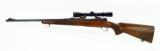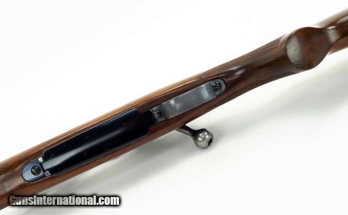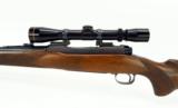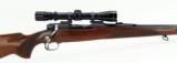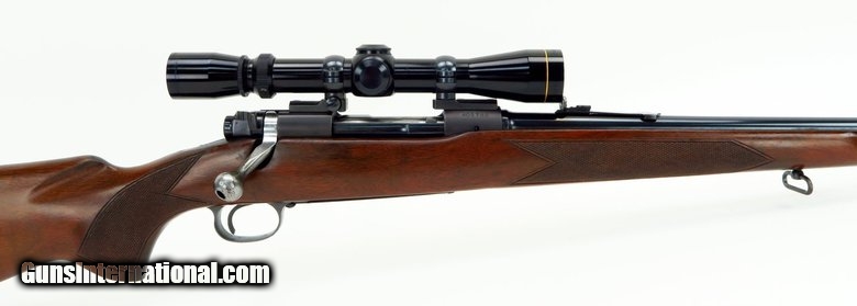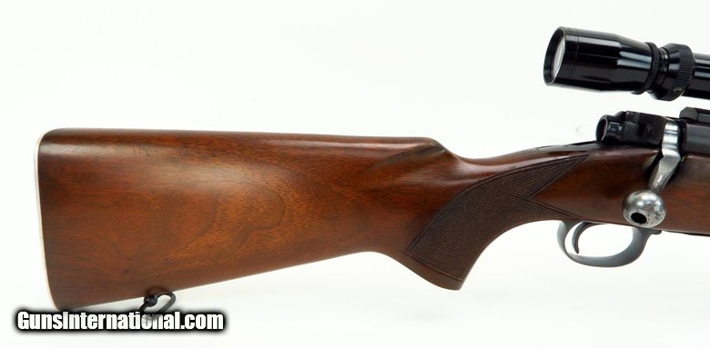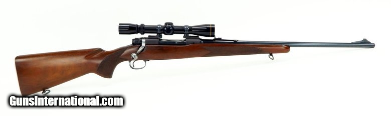 Description: Winchester 70 Featherweight .243 Win caliber rifle. Pre-64 model made in 1957 with aluminum buttplate and Leupold 3x9 scope. The wood shows wear, the metal is near excellent. SOLD |