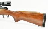 Winchester 70 Featherweight .308 caliber rifle. Pre-64 Featherweight made in 1954. Has had a recoil pad added and the checkering has been removed from pistol grip. Expertly done, it must have seemed like a good idea at the time. Overall excellent condition with Leupold 3.5X10 scope.