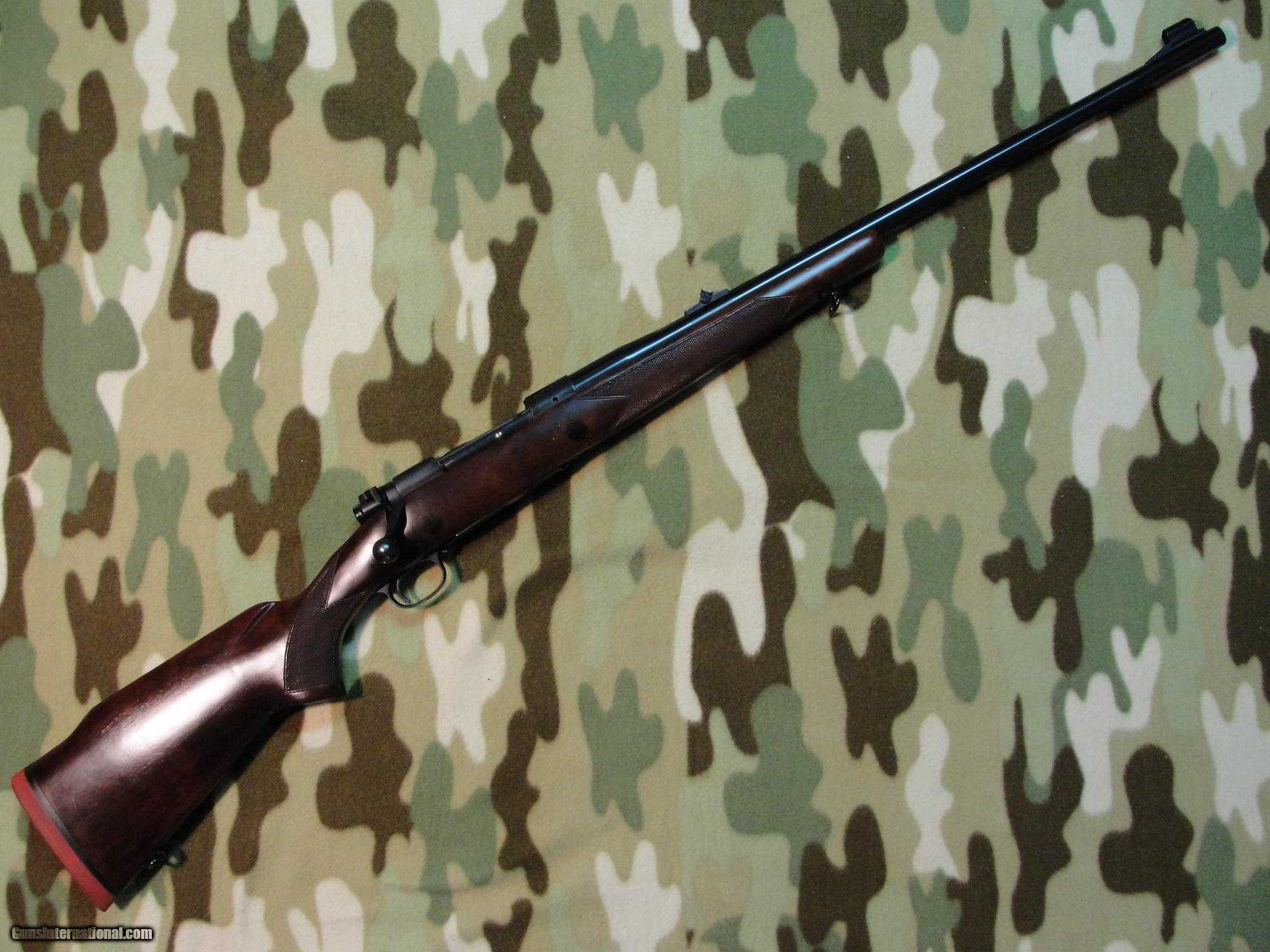 Description: Made in 1961, this is one of the most handsome Model 70's we've seen. Chambered 375 H&H Magnum, 25" excellent bore, chamber and mechanicals, inside and out...AND, its been glass-bedded and TRIPPLE cross bolted! Bolting nicely finished with ebony plugs. What does that mean? THIS is a stock that wont split under the heavy recoil of the 375 cartridge. Wood and metal finish are really nice, with just a minimum of minor dings and handling marks. Call or email with any questions. CA sale/shipping OK! SOLD Curio/Relic: Yes |
