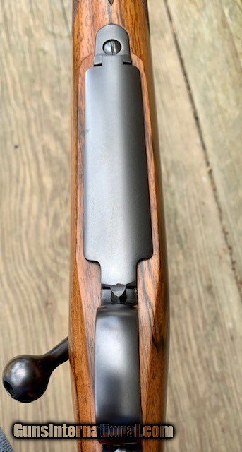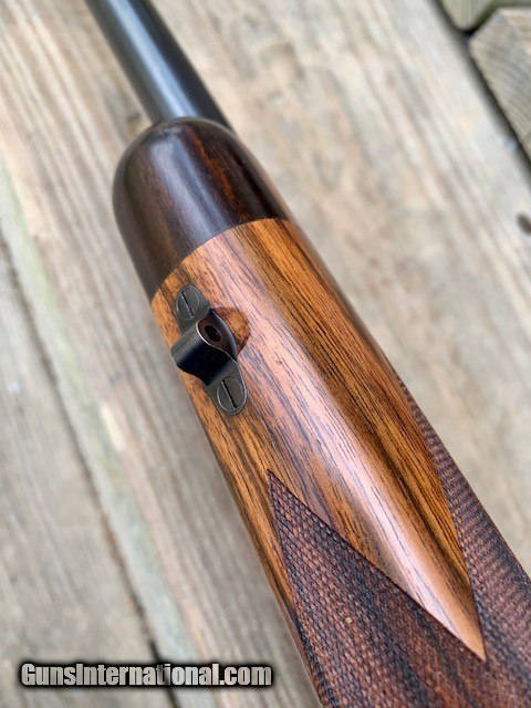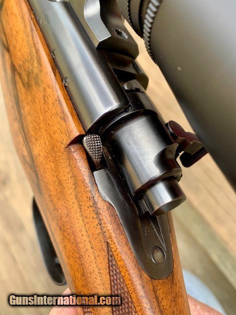Description: Beuatifully executed custom on a Pre 64 Model 70 Featherweight Supergrade .243 barreled action. Gorgeous English Walnut stock with shadowline cheekpiece, inletted swivel studs, wrap around checkering, built up and checkered bolt release, jeweled bolt, extractor, and follower, pre war style tang, skeleton grip cap, and rust blued. Weighs about 7 lb 4 oz, approx 13 5/8 LOP over a Pachmyar Decelerator pad. SCOPE RINGS AND BASES NOT INCLUDED. SOLD Rifle Caliber: .243 Winchester |