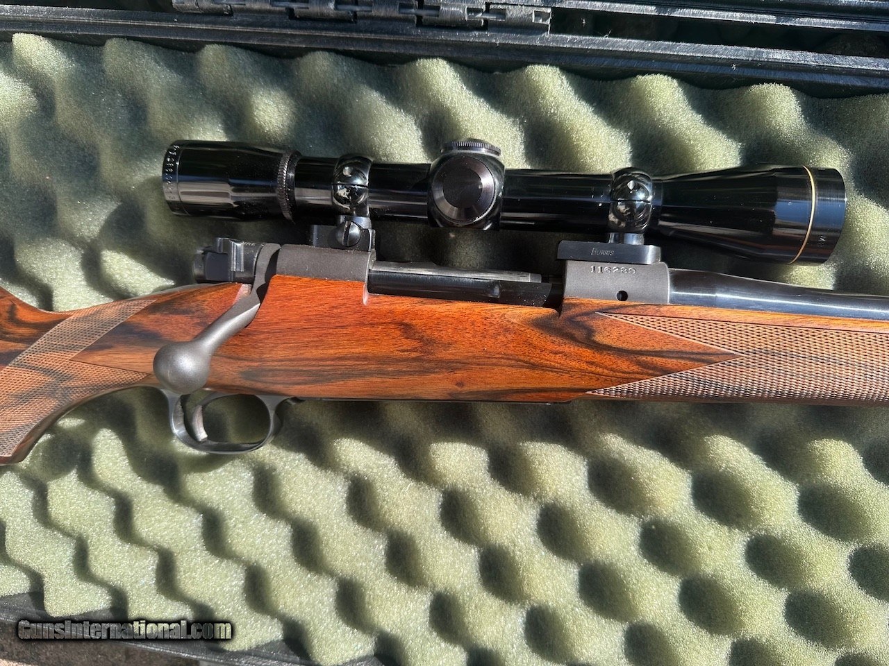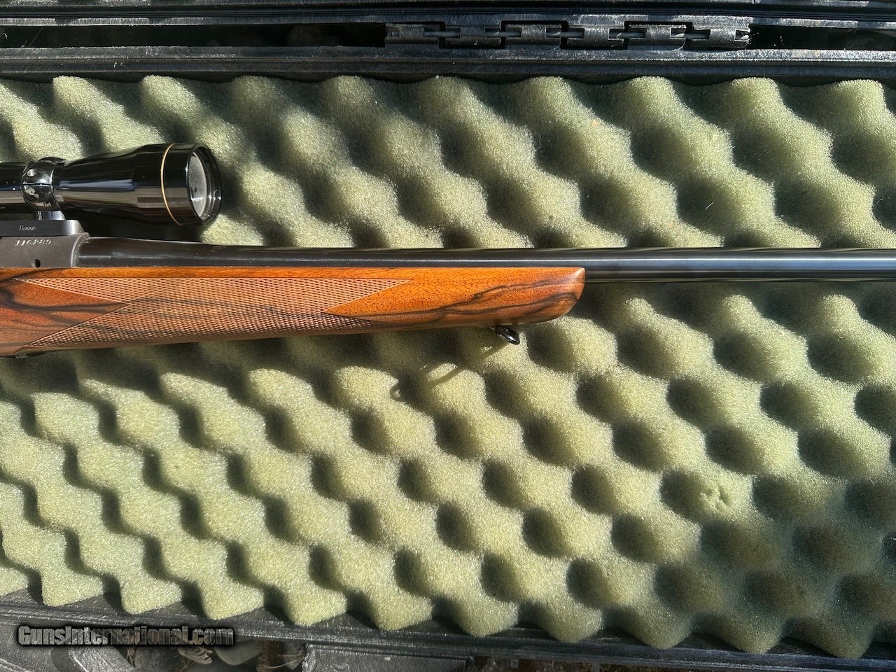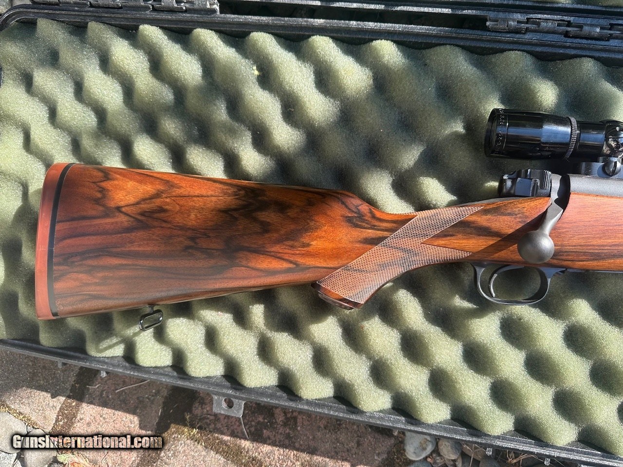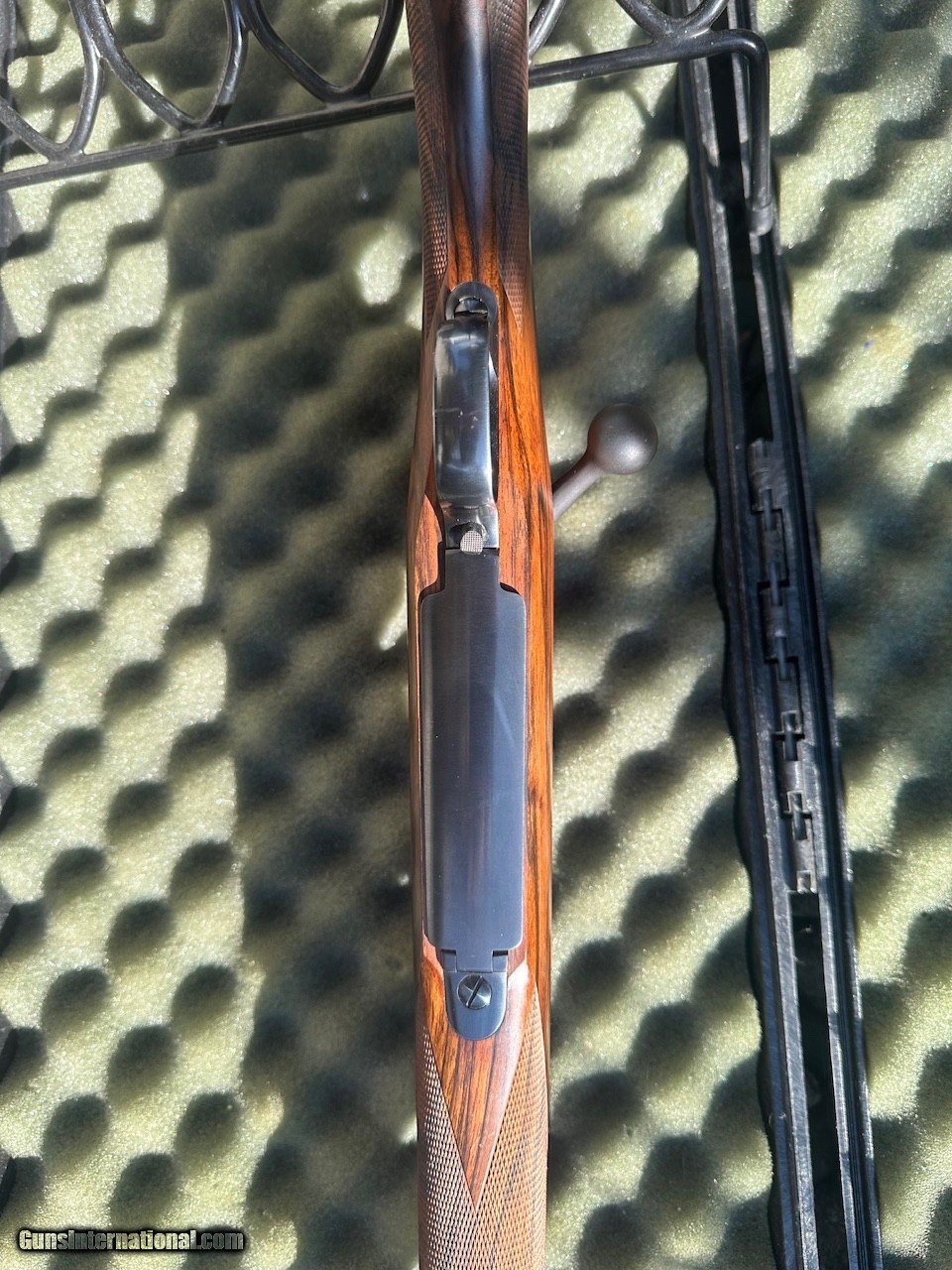 Description: Winchester 64, Model 70 "George Hoenig Custom" .270 Winchester. The rifle was custom built by George Hoenig, Boise, ID. Built on a Pre-64 model 70 barreled action with serial number dating it to 1948. The beautiful rifle has an original, pre-64, 24" Winchester model 70 barrel. The high grade English walnut stock is stunning and finished in a hand-rubbed oil finish, and the hand-cut fine-line checkering is exquisite. Never fired, and the pictures tell the story. G. Hoenig can be researched on line. This piece comes with a M86X Compact Leupold Scope. Price includes shipping. SOLD Curio/Relic: Yes Rifle Caliber: .270 Winchester Manufacturer: Winchester Model: Mod 70 Pre 64 Serial Number: 116289 Barrel Length: 24” Condition: New Metal Condition: New |