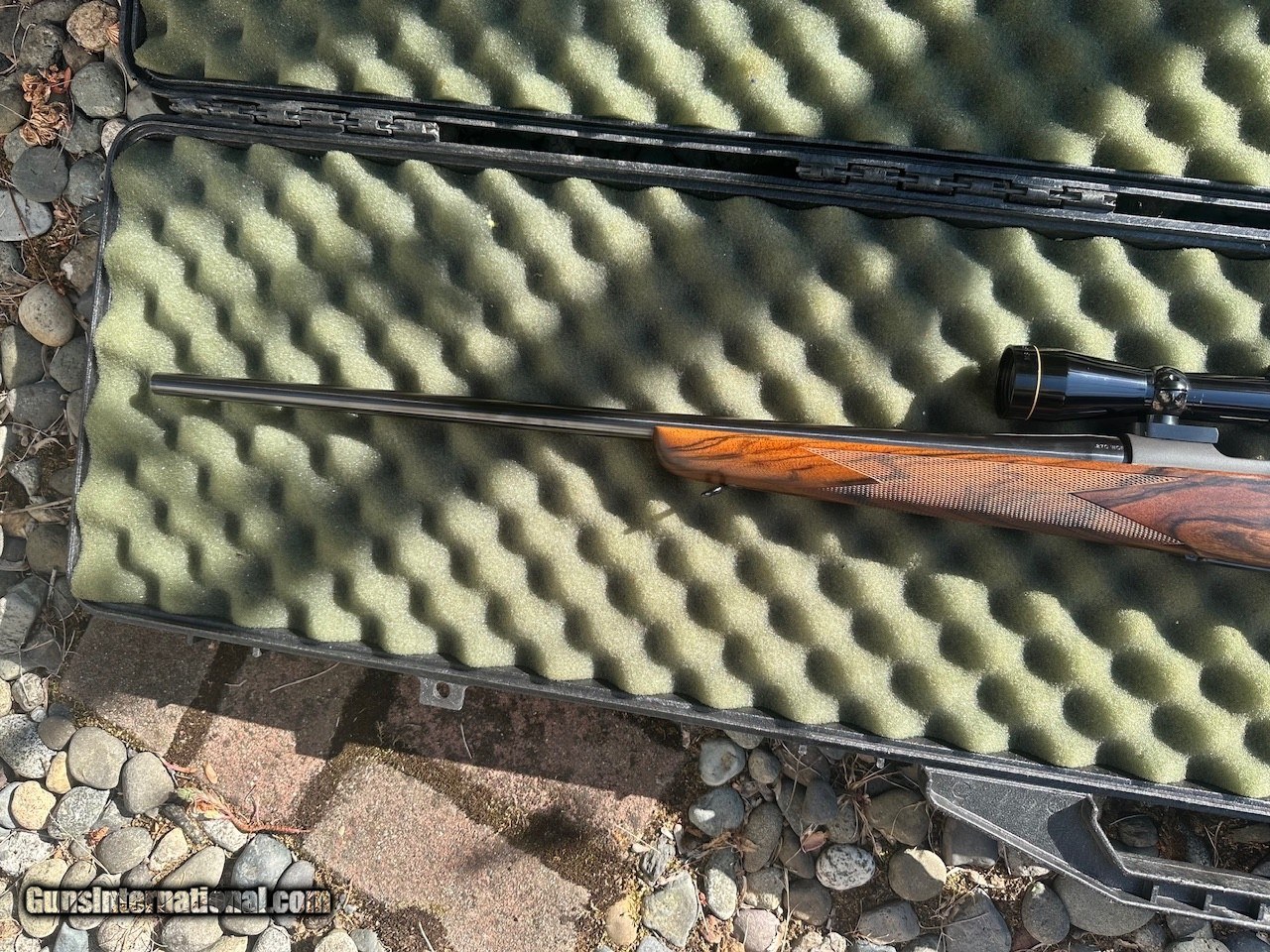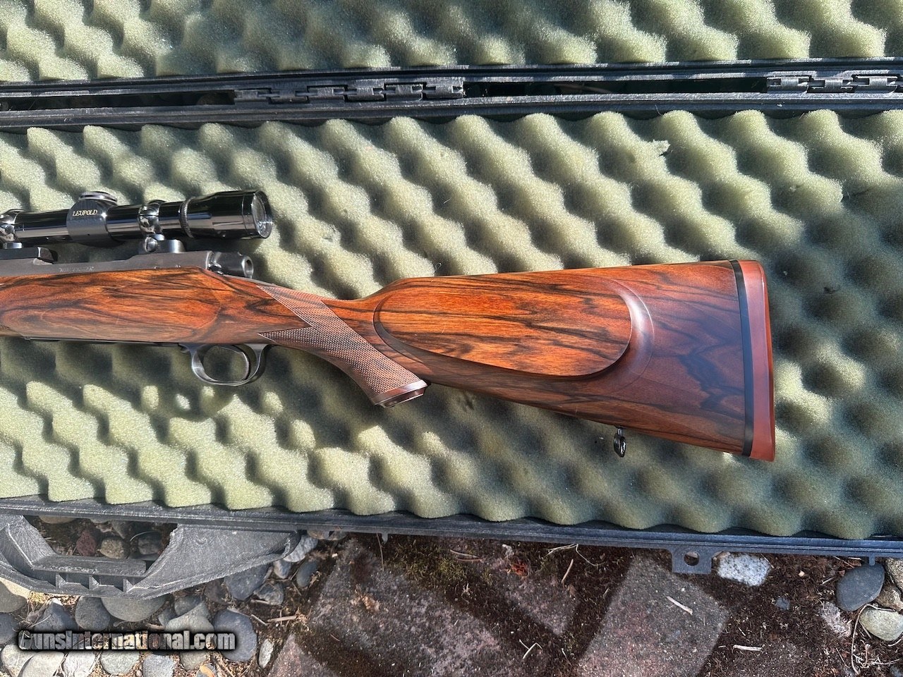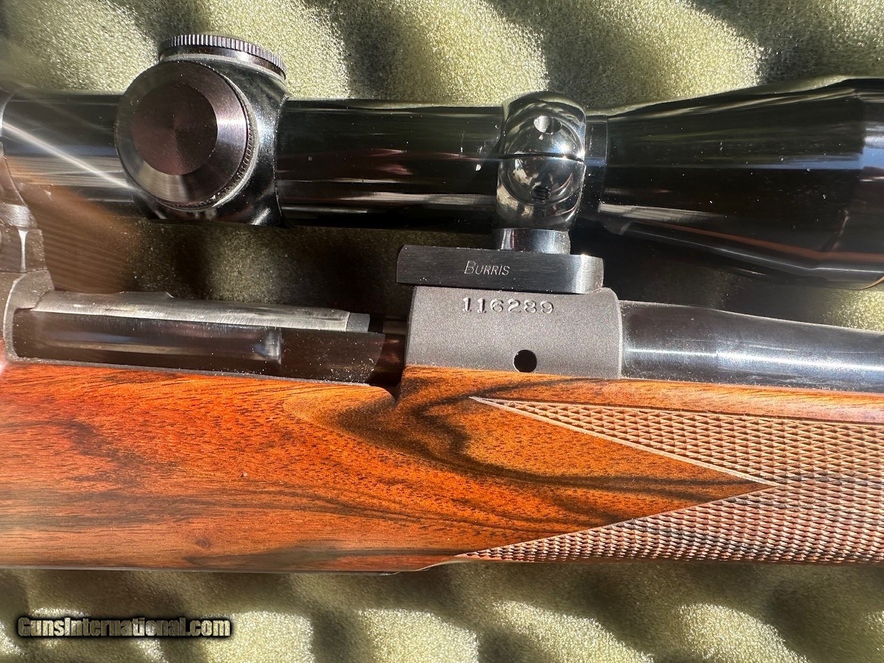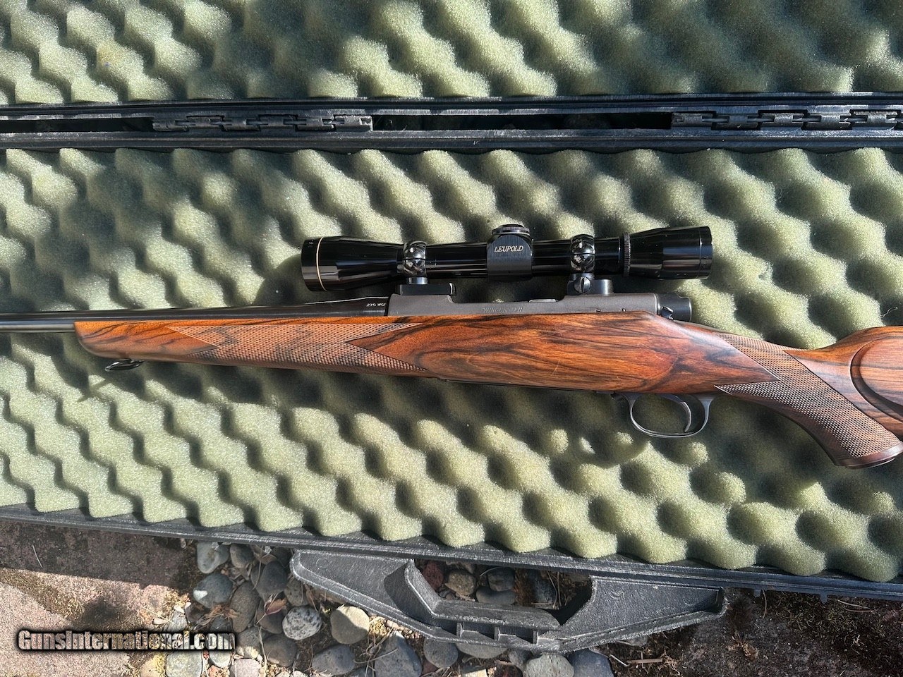 Description: Winchester 64, Model 70 "George Hoenig Custom" .270 Winchester. The rifle was custom built by George Hoenig, Boise, ID. Built on a Pre-64 model 70 barreled action with serial number dating it to 1948. The beautiful rifle has an original, pre-64, 24" Winchester model 70 barrel. The high grade English walnut stock is stunning and finished in a hand-rubbed oil finish, and the hand-cut fine-line checkering is exquisite. Never fired, and the pictures tell the story. G. Hoenig can be researched on line. This piece comes with a M86X Compact Leupold Scope. Price includes shipping. SOLD Curio/Relic: Yes Rifle Caliber: .270 Winchester Manufacturer: Winchester Model: Mod 70 Pre 64 Serial Number: 116289 Barrel Length: 24” Condition: New Metal Condition: New |