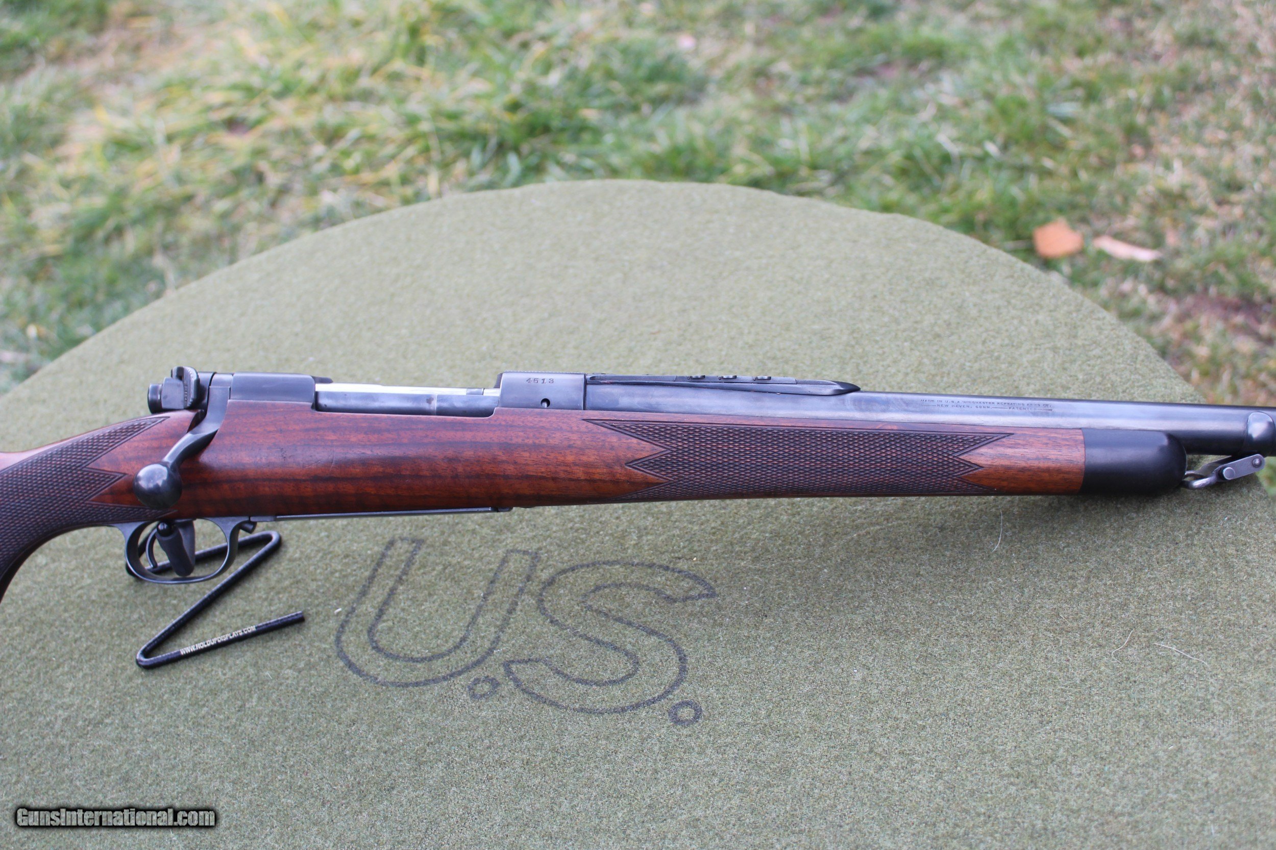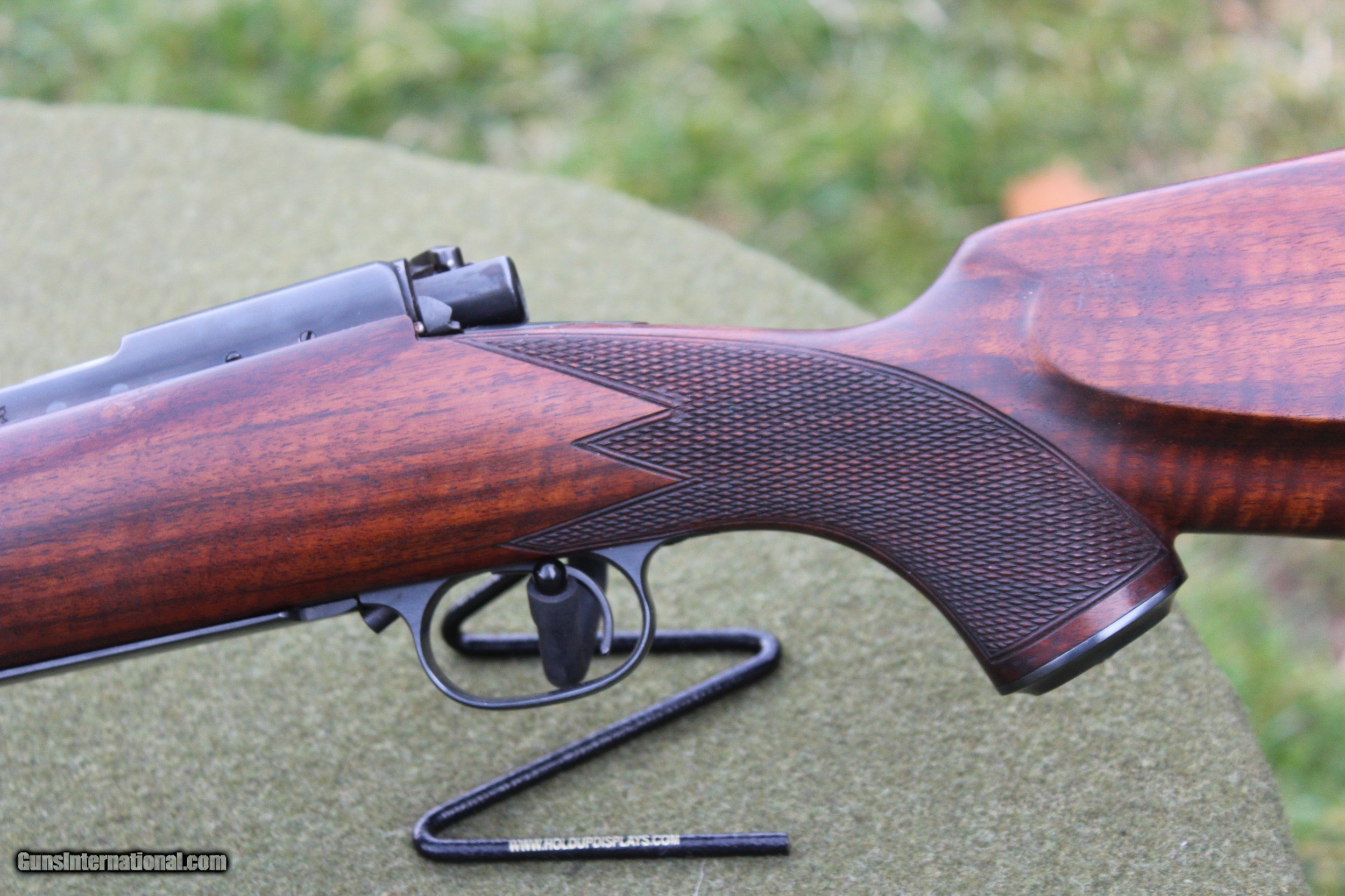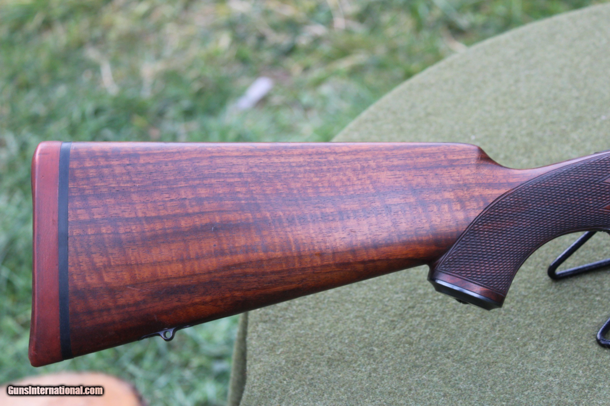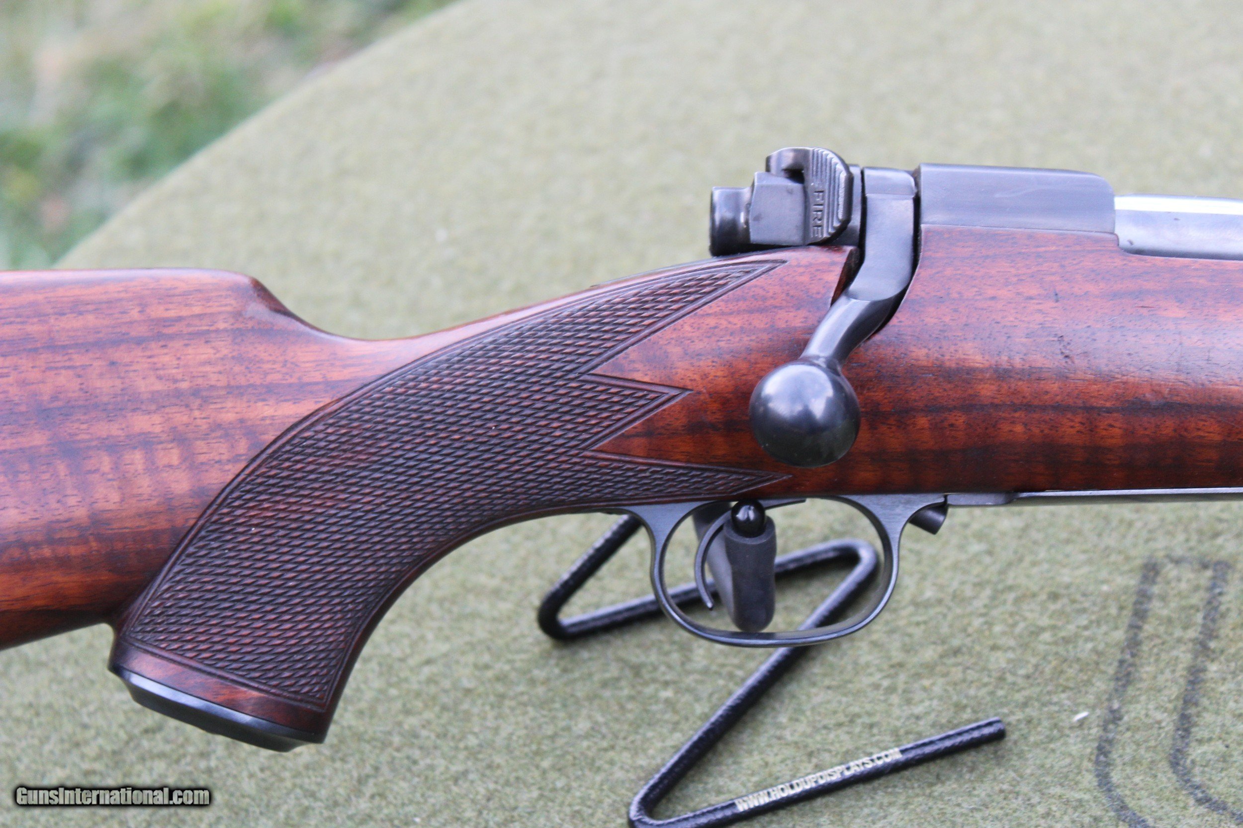 Description: Circa 1936....Serial # 45xx 24 " straight taper mid/heavy factory barrel Excellent bore Quarter rib with 4 folding express sights Point pattern checkering Custom English walnut stock with Silvers pad OD swivels Weighs 9 lbs 4 oz Well balanced rifle $ 3995 + Shipping SOLD |