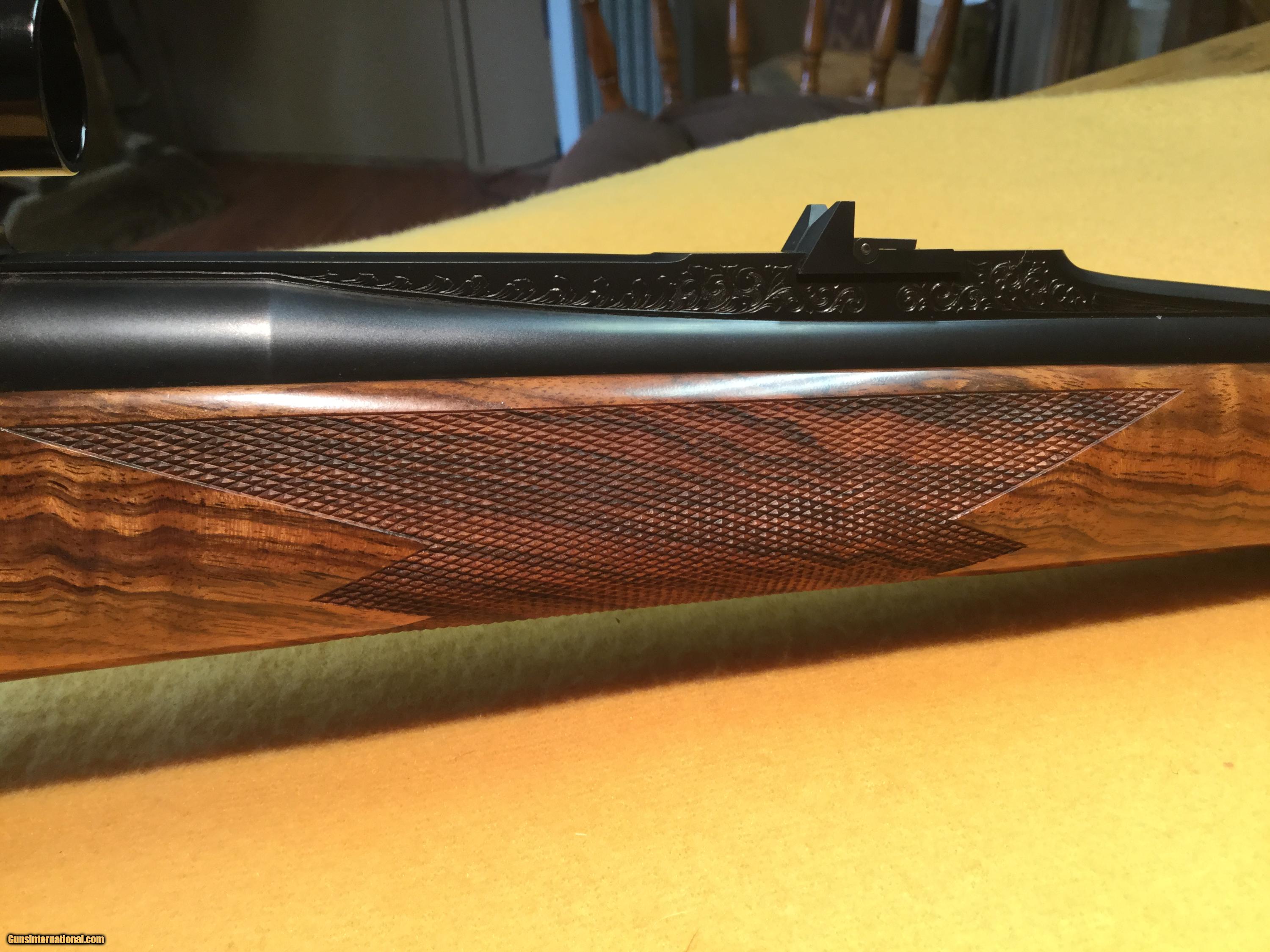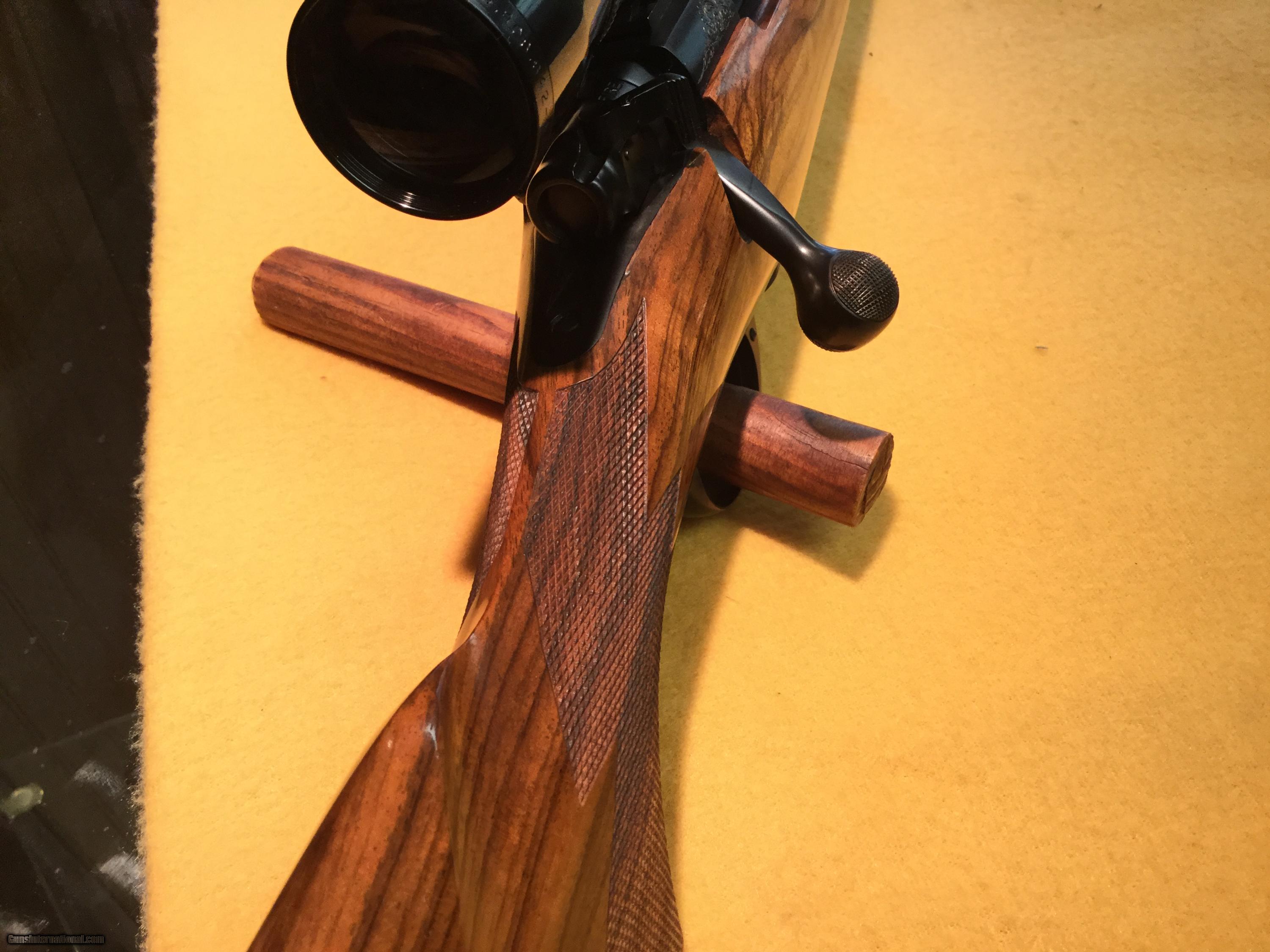 Description: This is a Winchester pre-64 Model 70 custom made in 270 win.cal. This Rifle was made in around 1951. Ted Blackburn floor plate/ Trigger guard,Talley quick detach Rings, Leupolo vari-X3 1.5X5 Gold Ring Scope, French Walnut stock,French Walnut stock hand fitted too reciever by Jerry Fisher, Douglas Premium grade barrel,Hand engraved , Stock made by Byrd Pearson.SN# 179470 Have well over 7000.00 in Rifle sacrifice for 3199.00. Shipping is 45.00 FFL required .Please see all pictures call Richard 406-407-0698 SOLD Curio/Relic: Yes Manufacturer: Winchester Model: Model 70 Serial Number: 179470 Caliber Info: 270 Condition: 98% Metal Condition: 99% Stock: french walnut |