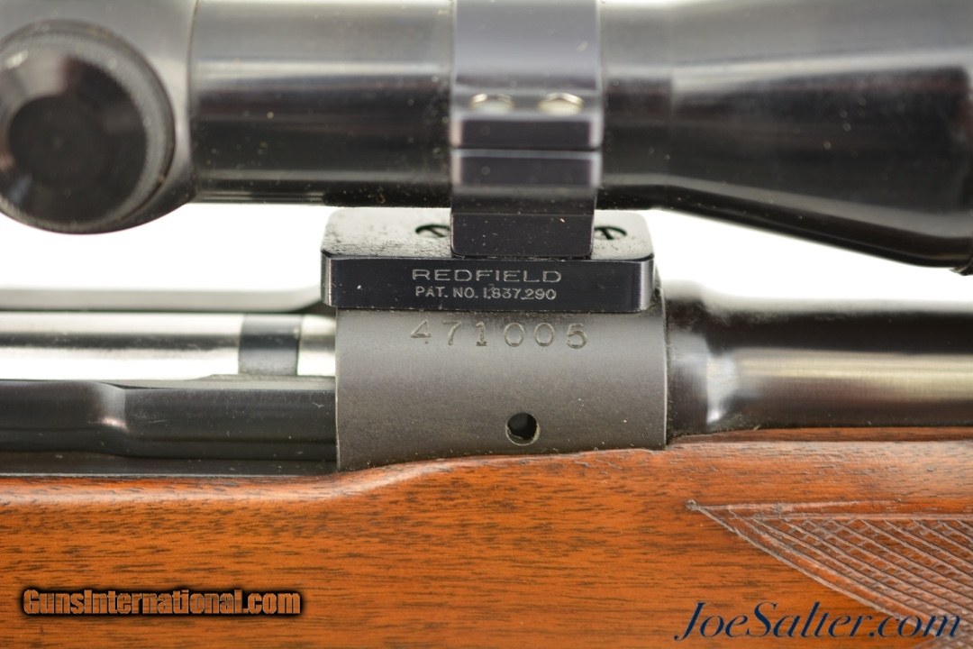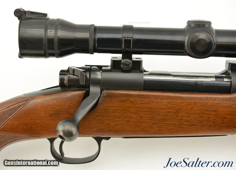 Description: Serial #471005, .30-06 SPRG, 21.5 inch barrel with a bright, excellent bore. This is a Winchester Model 70 Featherweight rifle manufactured in 1960. In excellent plus condition the barrel and frame retain virtually all, 99% plus original blue and matte finish with a tiny bit of wear on the bearing surfaces of the bolt. The checkered walnut stock is likewise excellent showing several tiny finish blemishes from handling and storage. It has the original sling swivels and original flip up rear and hooded bead front sights. The original period 4x Redfield Bear Cub scope is installed on Redfield mounts with clear cross hair optics. A fantastic example of a desirable pre-64 Featherweight 70. FFL or C&R SOLD Curio/Relic: Yes |