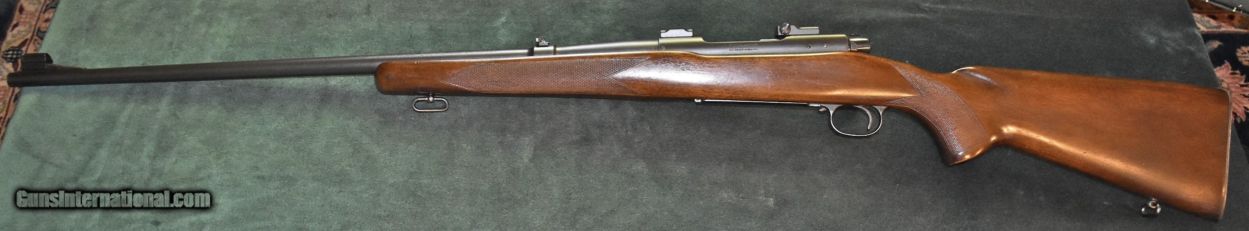 Description: Winchester pre 64 model 70 in 220 Swift.Built in 1950,this rifle is in mint all original condition.It retains 99.9% of the original blue and wood finish.The 26" stainless barrel has a mint bore.The stock is free of any cracks or damage and it retains the original steel buttplate.The stock is the early style non monte carlo straight comb stock.All roll markings and inspectors stamps are sharp and crisp.This is a very hard to find gun in this vintage and condition.It has Leupold bases installed.C&R eliglble. SOLD Curio/Relic: Yes Rifle Caliber: .220 Swift Manufacturer: Winchester Model: 70 Serial Number: 145009 Barrel Length: 26 Condition: mint Metal Condition: mint Wood Condition: mint Bore Condition: mint Barrel Type: Winchester proof steel Action: bolt Butt Pad: factory steel buttplate Manufacture Date: 1950 |