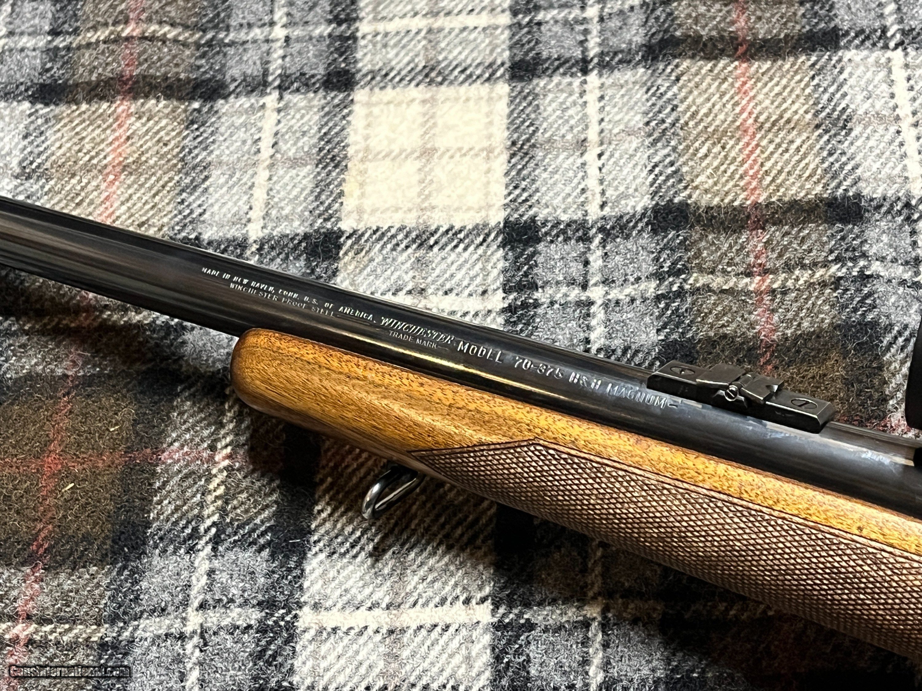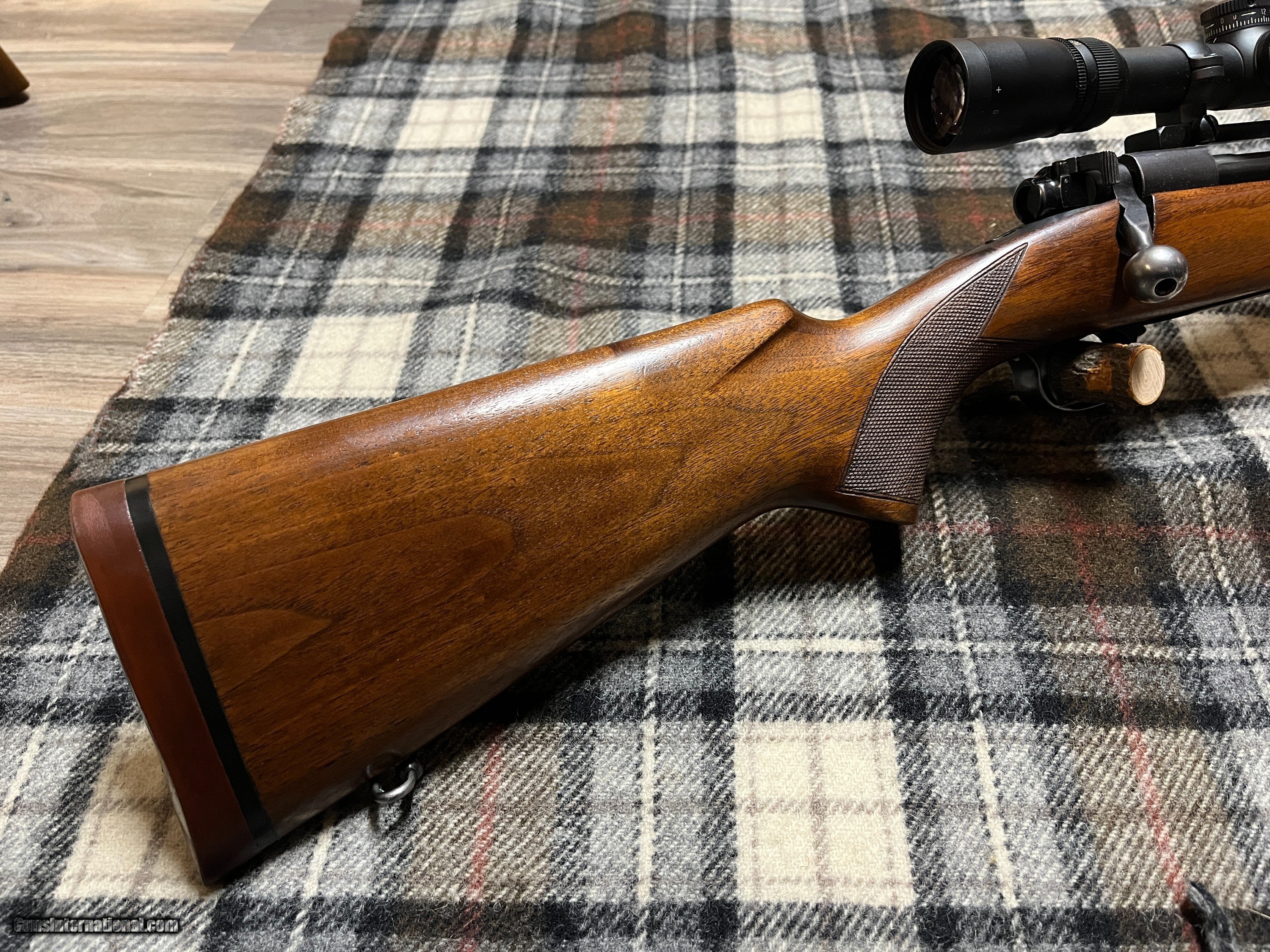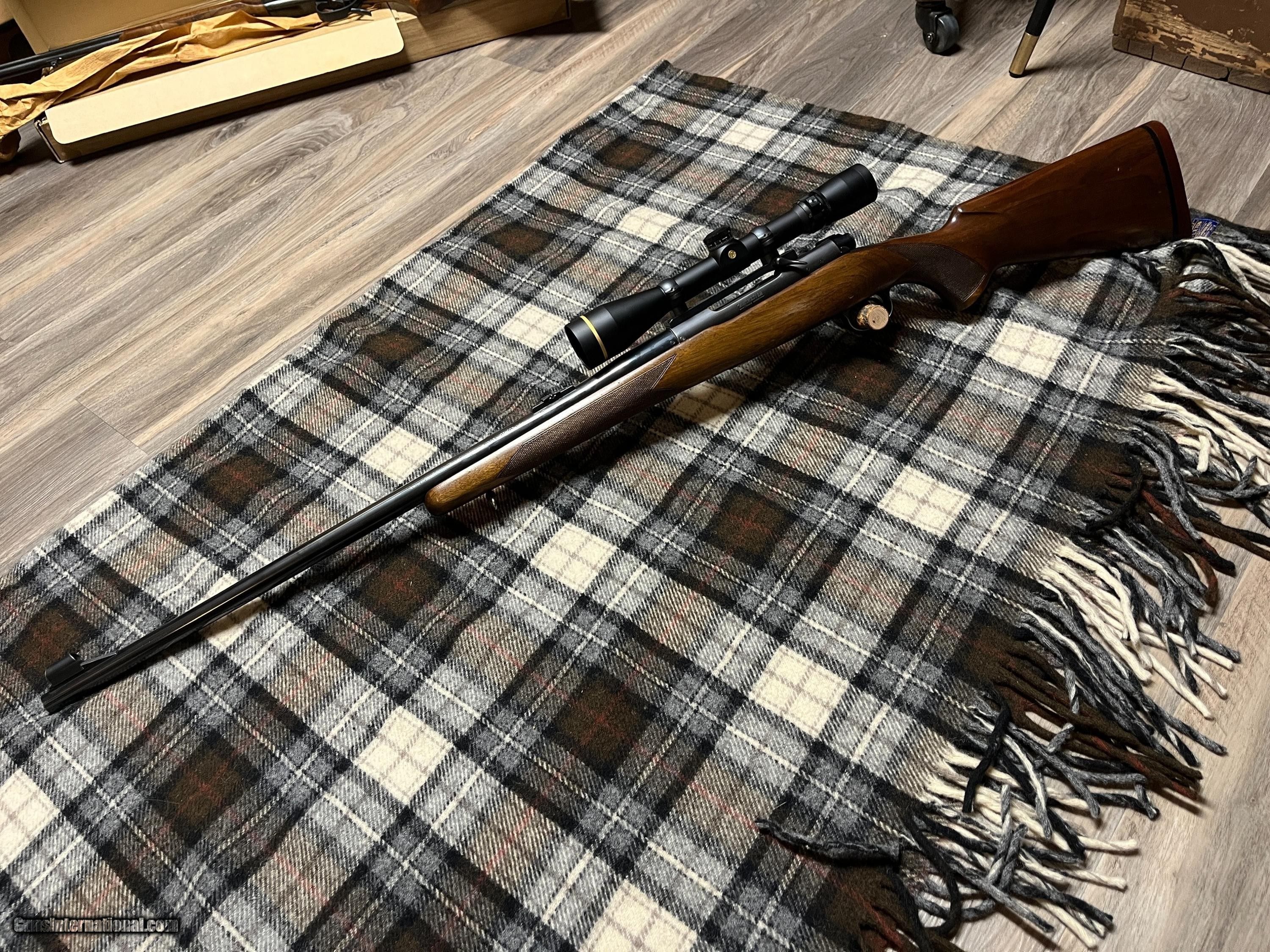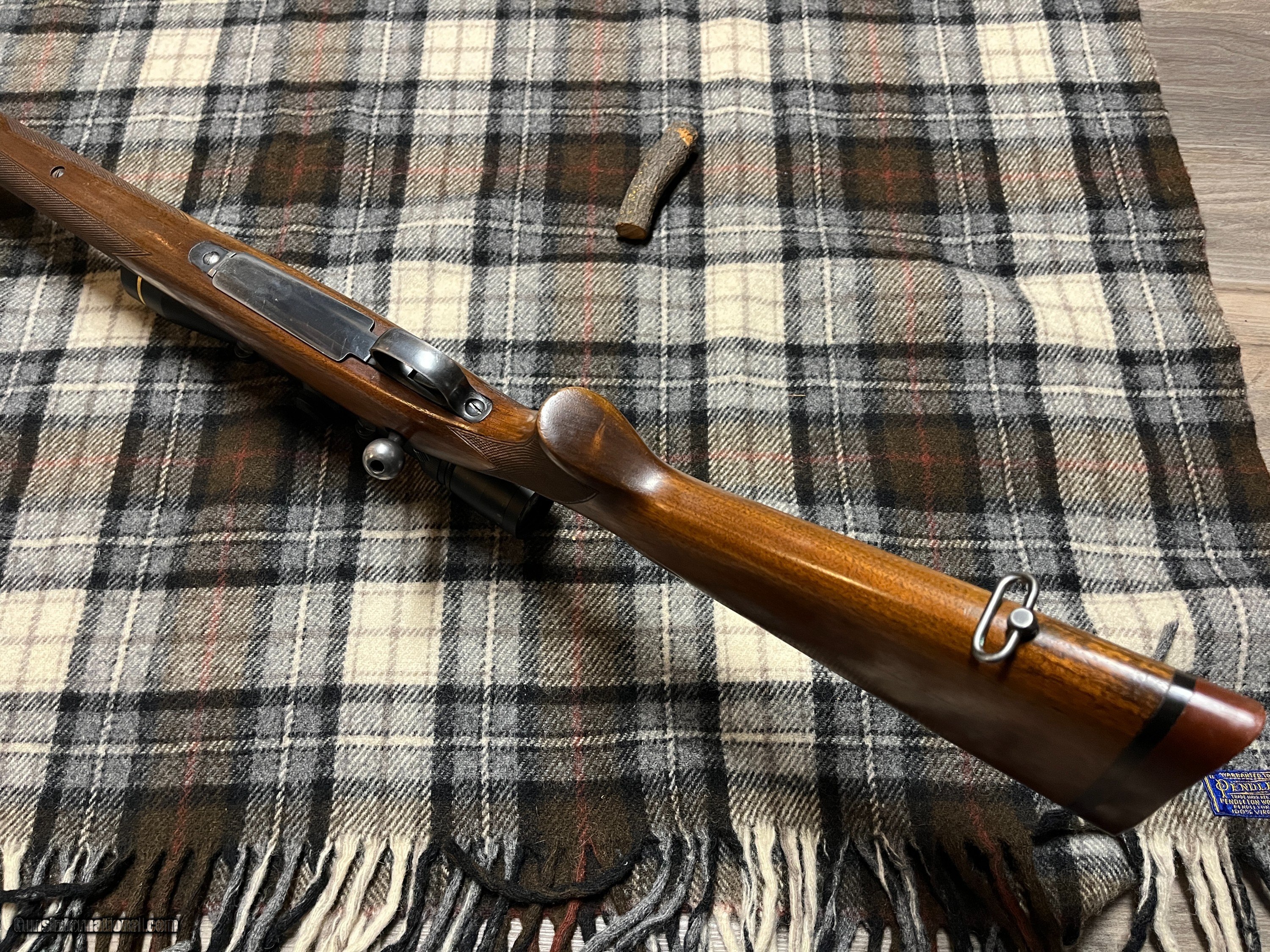 Description: For sale is a pre-64 Model 70 in 375 H&H Magnum, sporting a Leupold 4.5-14x40 with a standard duplex reticle. See images for details of the rifle's condition. Overall it is an honest hunting rifle. There is edge wear and compression marks, but nothing severe. Someone did bed the action; otherwise it is all original. I inherited the gun from my father and his journal states it shot 1-1/2" groups at 200 yards with factory Remington loads using an older Leupold 3 power. He then used it for one season of black bear. The trigger is 4lbs with a clean, tactile break. The scope is mounted on a quick detatch Redfield base with new Leupold rings to go with the new scope. The bore is pristine, mirror bright, with strong rifling. If you have any questions or need any other images, please let me know. Please pay with either a money order or certified check and remember to mail the letter with some sort of tracking. FFL can be a hardcopy mailed with payment or email me a digital copy. I'll ship it as soon as I can and let you know the tracking number. Shipping is included in the price, and it will ship in a hardcase. *I do also have a supply of reloading components for 375 H&H if you are interested. I am only interested in selling them with the rifle. Thank you for your interest, Ethan SOLD Rifle Caliber: .375 H&H Magnum Manufacturer: Winchester Model: Pre-64 Model 70 Manufacture Date: 1952-1953 Item Location: Eastern Washington |