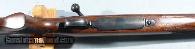 Description: NEAR MINT WINCHESTER MODEL 70 PRE-64 ALASKAN .338 WIN. MAG. CAL. RIFLE MANUFACTURED IN 1960. 25” barrel. 100% original in every respect and in superb condition with 99% blue and with all the original stock finish. Original “WINCHESTER” logo solid red recoil pad. Perfect working order and mint bore. First year production for the Alaskan. SOLD Curio/Relic: Yes |
