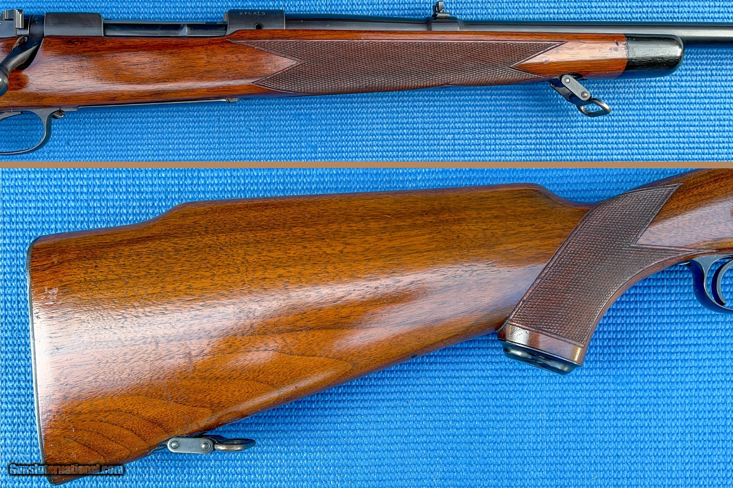 Description: I'm selling a RARE Super Grade Winchester Pre-64 Model 70, chambered in .300 H&H. Per the Blue Book of Gun Values, "the Model 70 is one gun for which caliber ranks before condition in terms of desirability" (S.P. Fjestad). The rifle has a 4-round magazine and is set in a checkered walnut pistol grip stock. Produced in 1953, the rifle is mechanically sound and shows no signs of alterations. The hallmark 1-1/2" sling swivels are original. The rifle shows minimal sign of handling marks on the metal & wood. The rifle does not come with a scope, scope rings, or a case. Length of pull is 13-1/2." Weight is 7 lbs, 7 oz. SOLD Rifle Caliber: .300 H&H Magnum Manufacturer: Winchester Model: Model 70 Serial Number: 276619 Butt Pad: N/a LOP: 13-1/2 Weight: 7 lbs, 7 oz Sights: Yes Manufacture Date: 1953 Case: NA Item Location: Lexington, KY (USA) |