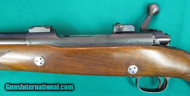Description: Hard to beat a 375 H&H when it comes to hunting big and dangerous game. It has been proven all over the world since it's debut in 1912 and it's still going strong. I can vouch for it's effectiveness on Moose, maybe not dangerous, but certainly big. This Pre-64 Model 70 Winchester 375 is ready to scope, preferably a low powered, long eye relief one, then off to the hunt. I have the rings for it, just not shown. Metal is all original except for the rear sight leaf, that has been changed. the stock may or may not have had a finish applied to it, not sure. The stock has been reinforced with cross bolts. The original recoil pad is intact. The sling swivel studs are set up for quick detachable swivels and are not factory. I'm 72 now and my Alaskan adventures are over, I no longer need a 375 H&H. I think the price is reasonable at $2000 plus $45 shipping and insurance to C&R or FFL. 120 day lay-a-way available, no credit cards and no trades. SOLD Curio/Relic: Yes |