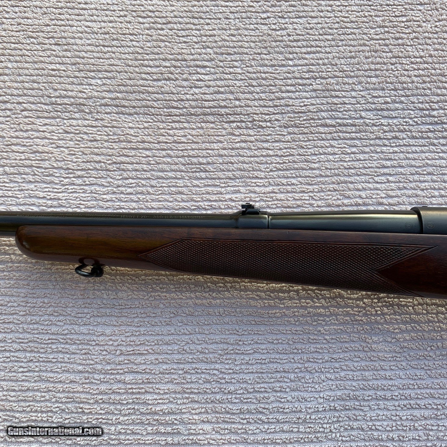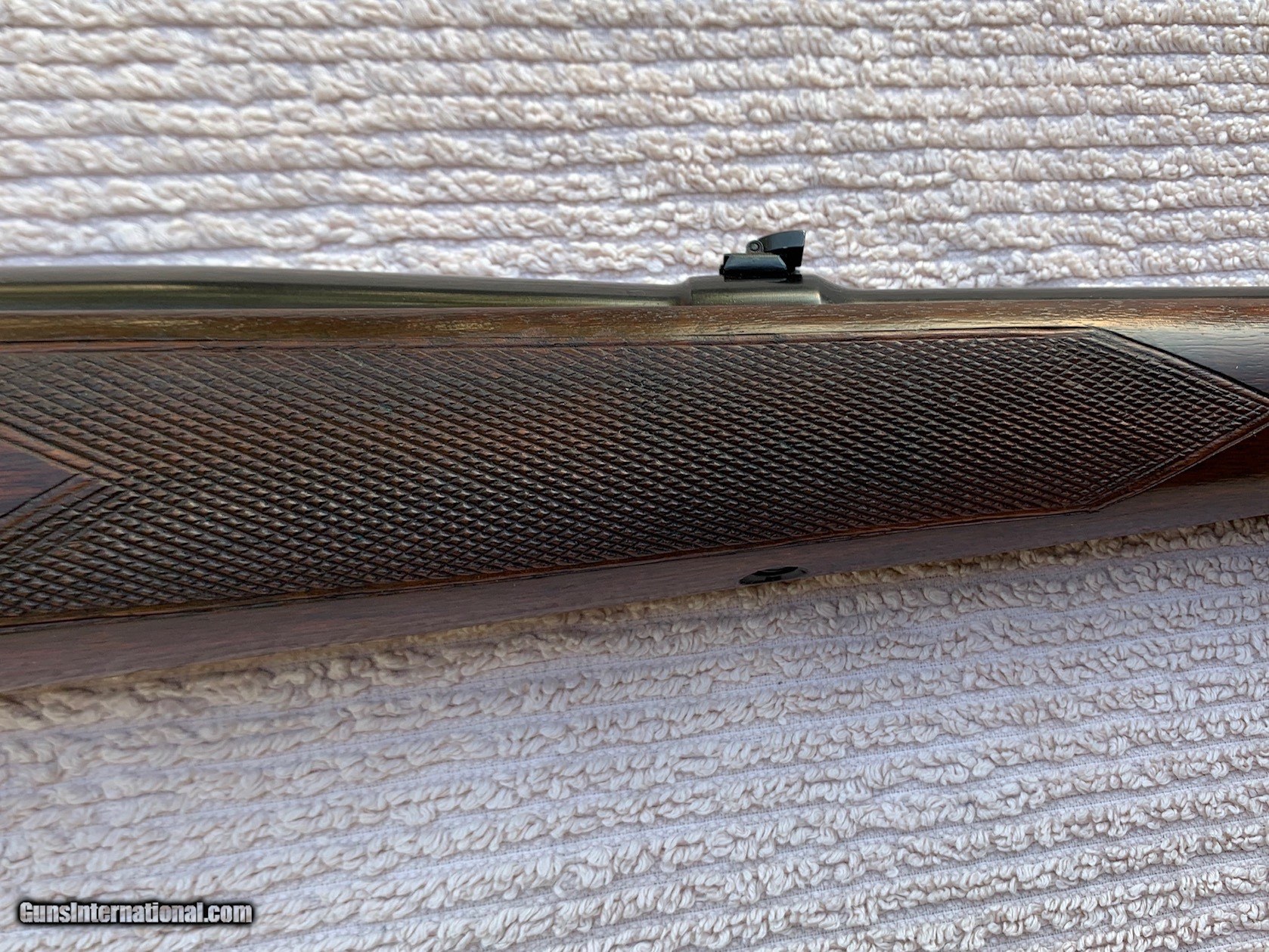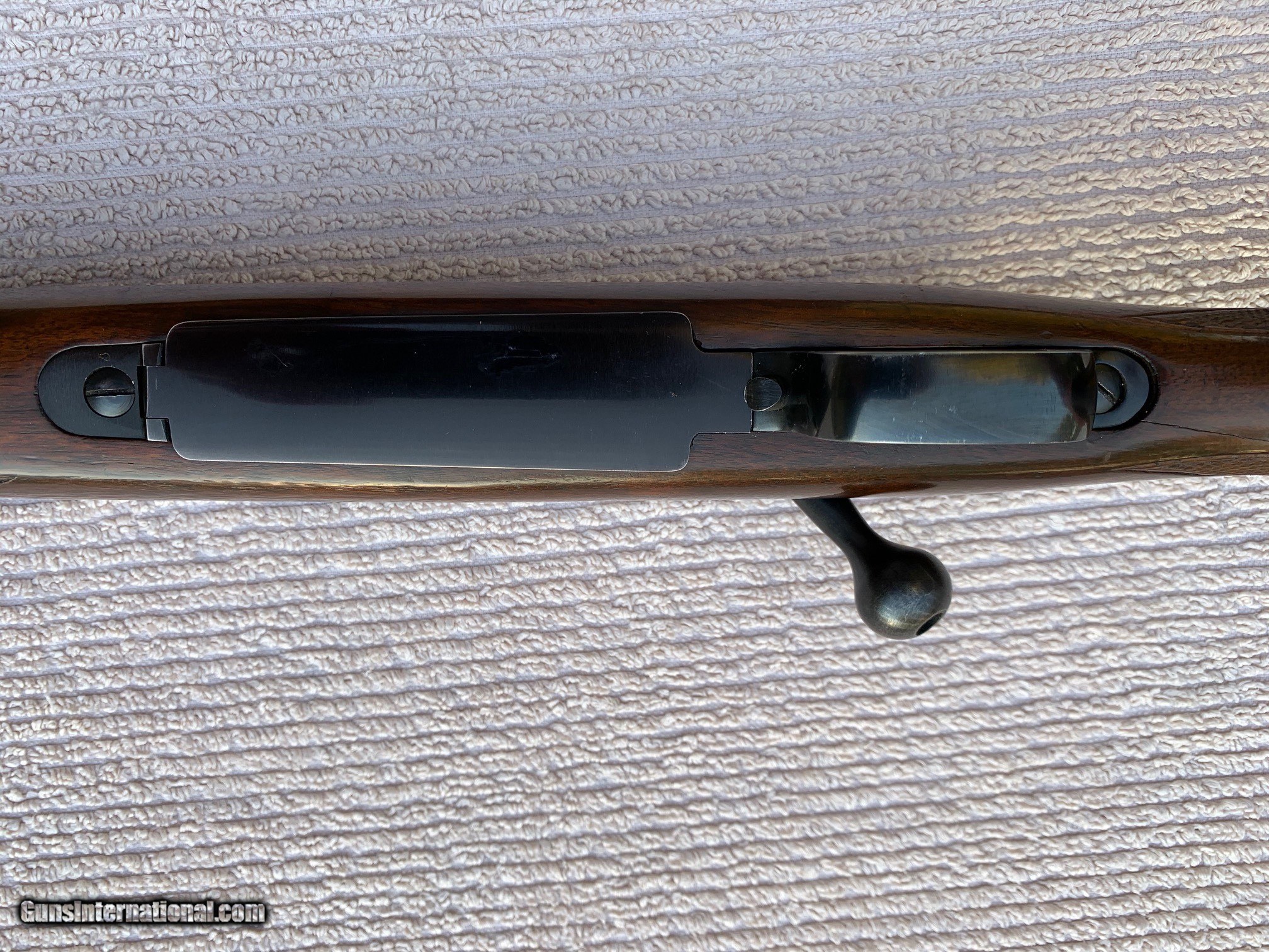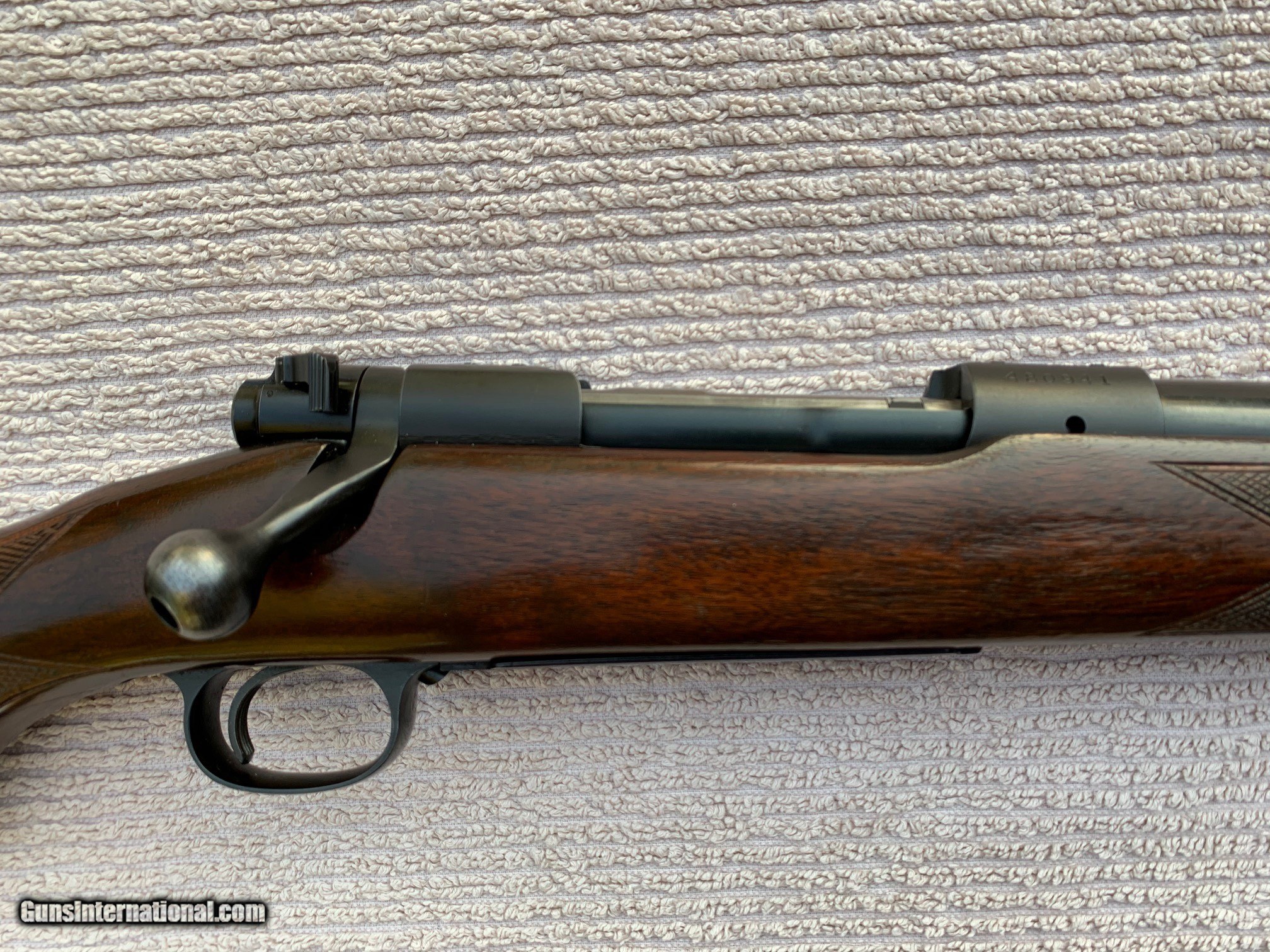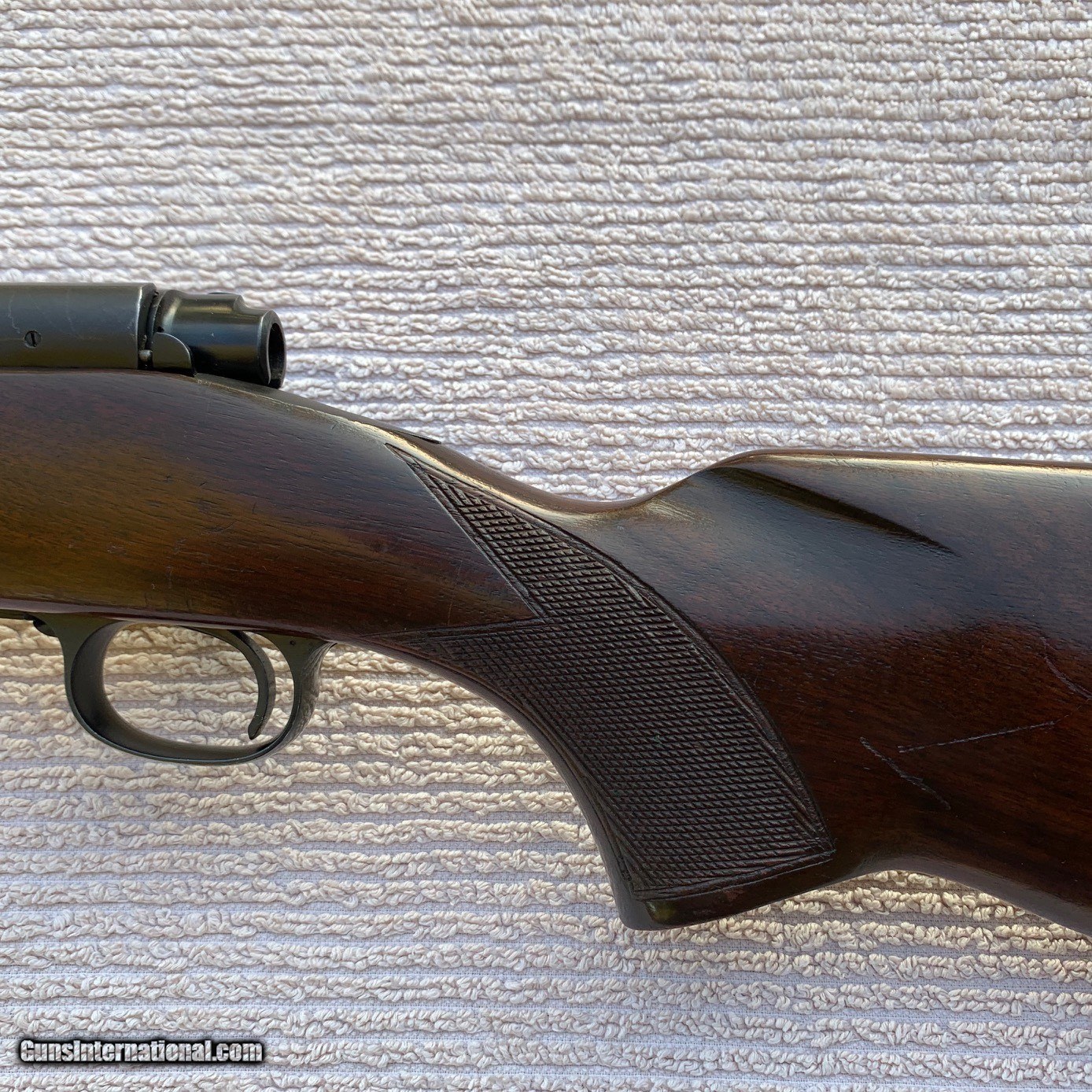 Description: Pre-64 Model 70 from 1960, chambered in the Classic 300H&H Magnum According to the previous owner it went Elk hunting a couple of times, otherwise shot very little. 95% blue. Has a crack in the stock behind the trigger guard, a few scratches in the stock and some blue loss on the bolt shown in the pictures. Price includes shipping to the Contigious United States. More pictures to email or text. Thank you. SOLD |