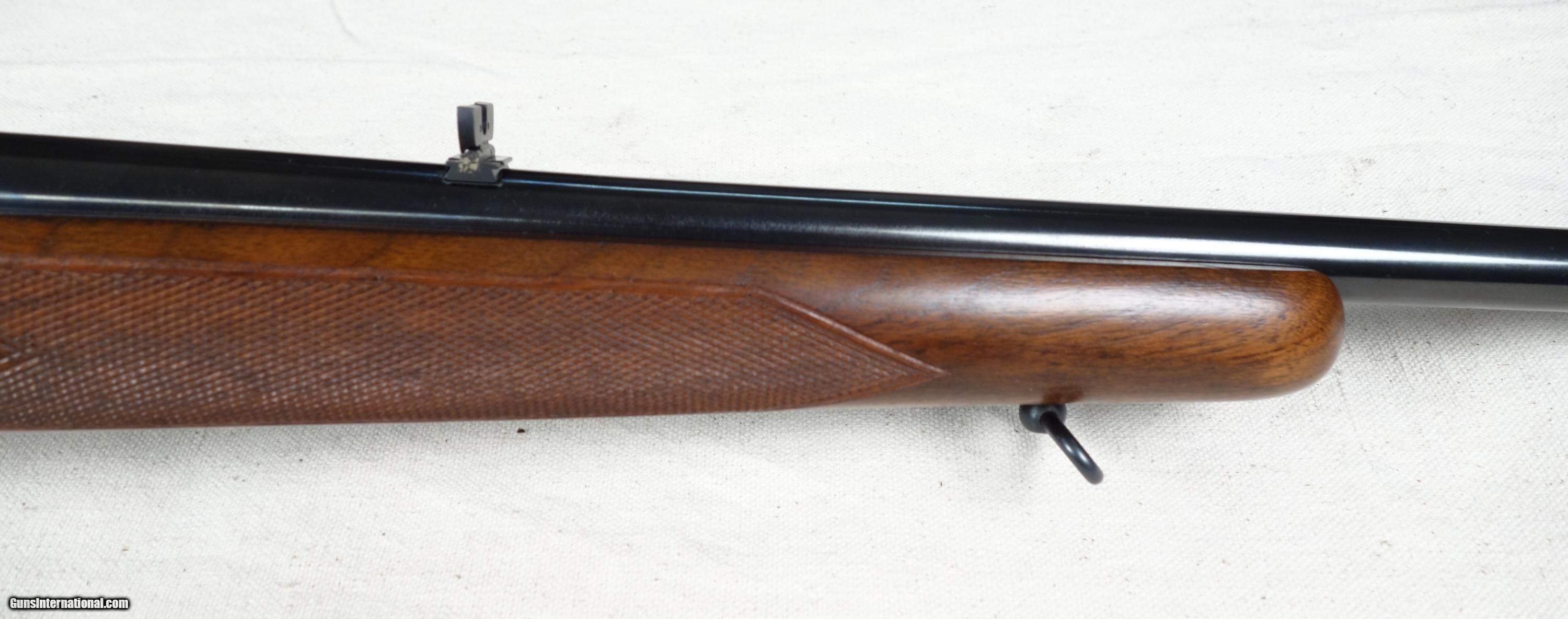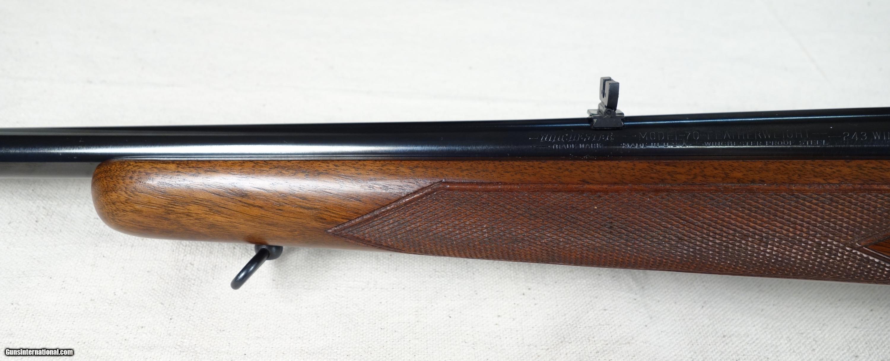 Description: Beautiful Pre 64 Winchester Model 70 Featherweight in .243 Caliber with highly desired aluminum butt plate. 22" light contour Barrel. S/N 335xxx with matching Bolt, Mfg. 1955. 98% Blue, 98% Varnish. Mechanics and Bore are excellent. SOLD Curio/Relic: Yes |