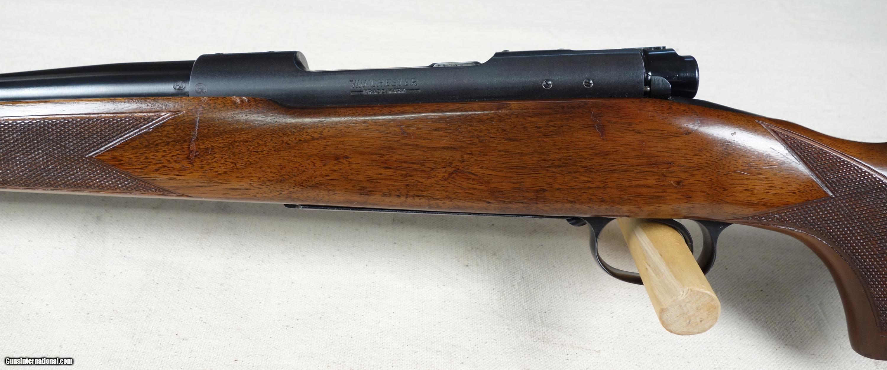 Description: Outstanding Pre 64 Winchester 70 30-06 standard rifle. 24" Barrel. S/N 298xxx with matching bolt, Mfg. 1954. 99% Blue, 98% Varnish with only a couple very light scrapes as shown. 100% original. The wood exhibits a nice honey tone to it. Mechanics and bore are excellent. SOLD Curio/Relic: Yes |