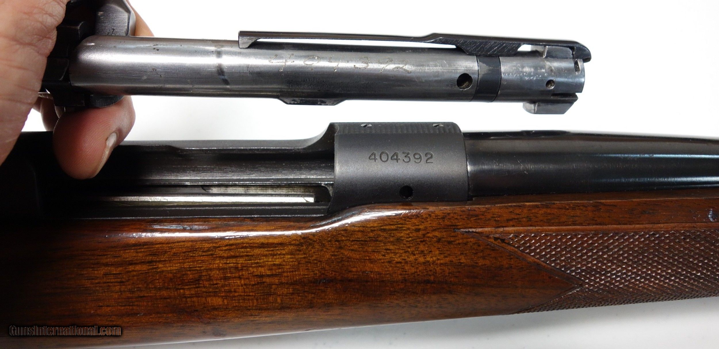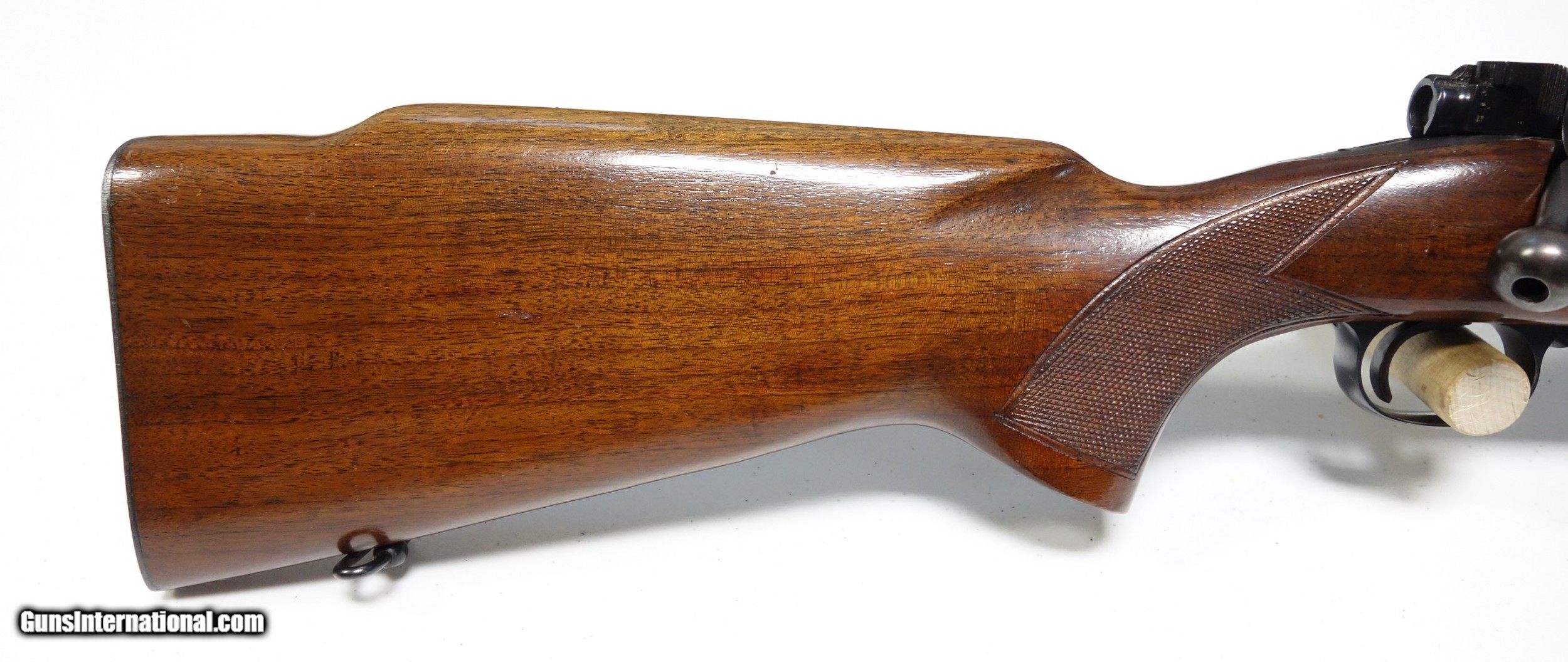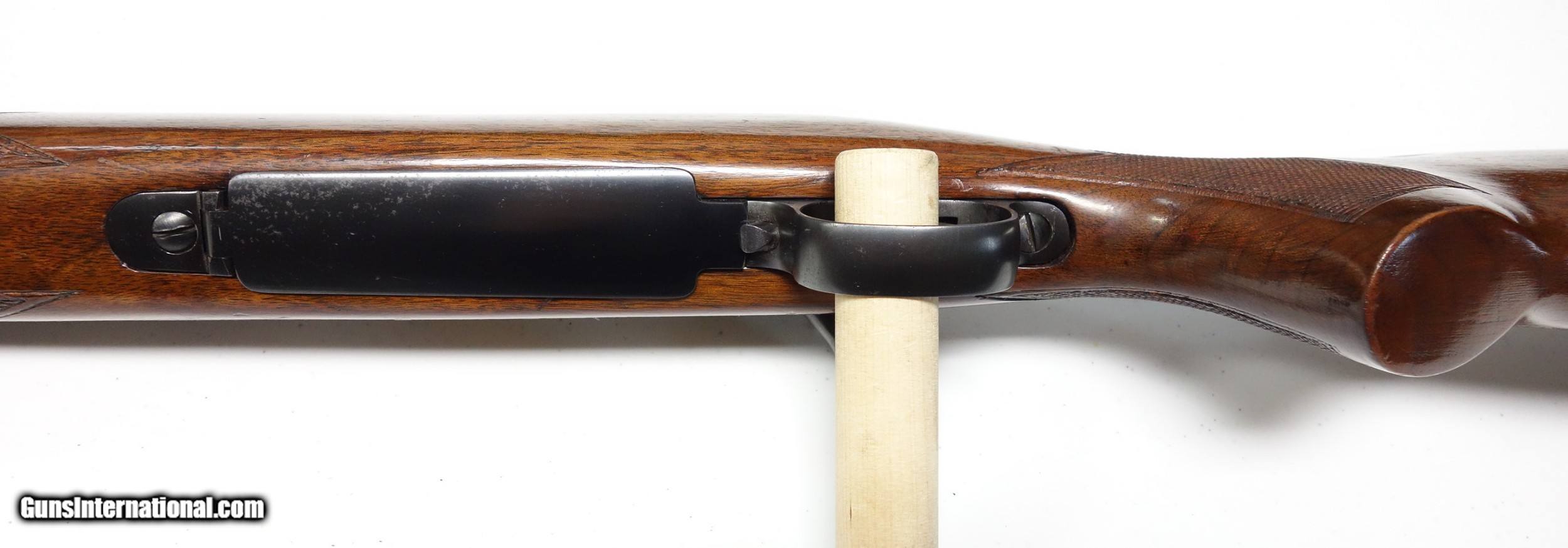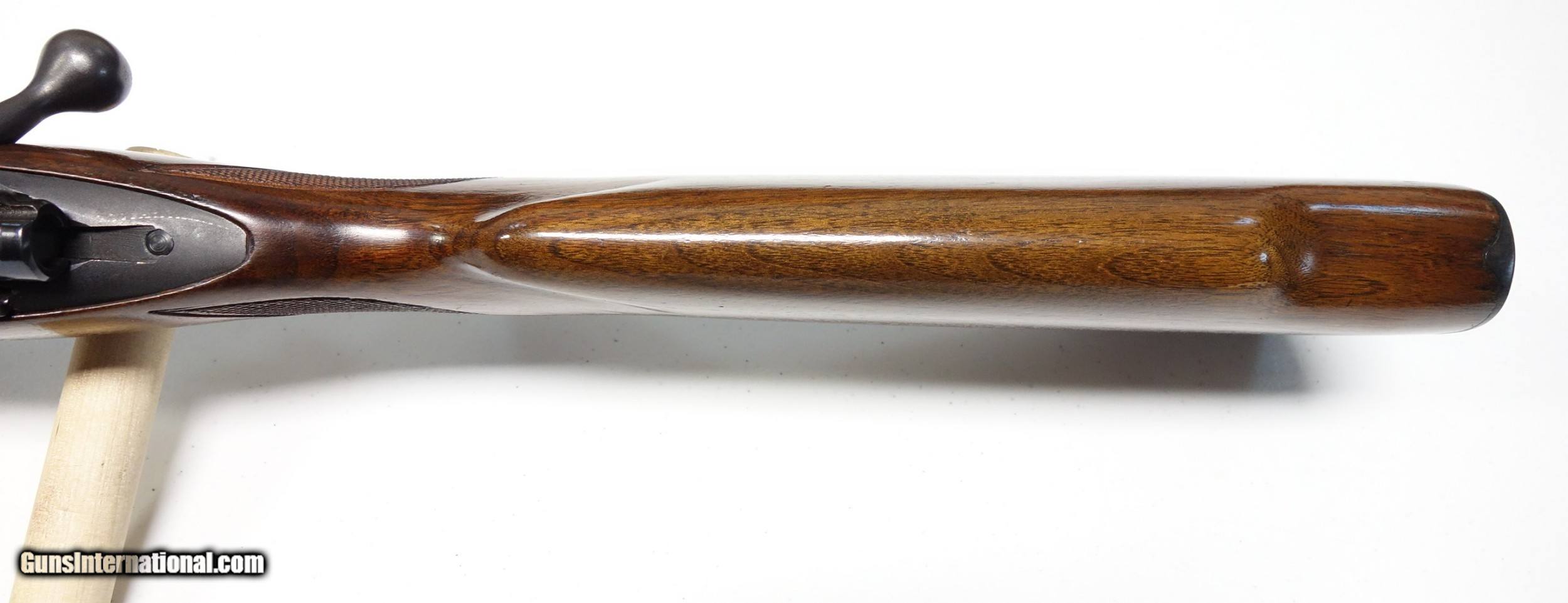 Description: Excellent condition 300 H&H Mag S/N 404*** Mfg. 1957. Bolt S/N matches receiver. About 96% Blue and 97% Varnish with a few scattered light handling marks. 26" barrel with an excellent bore. The rifle has been test-fired and has positively not been reamed to WBY or any other caliber. All mechanical functions are in good working order. Flat rate of $55 expedited/insured shipping from Alaska. SOLD Curio/Relic: Yes |