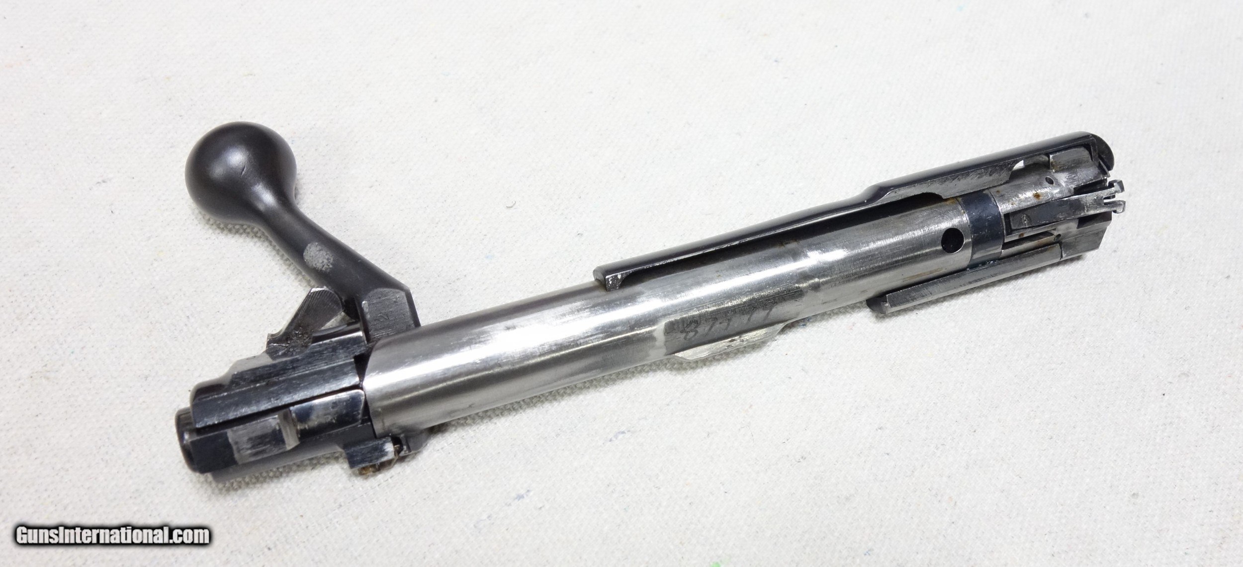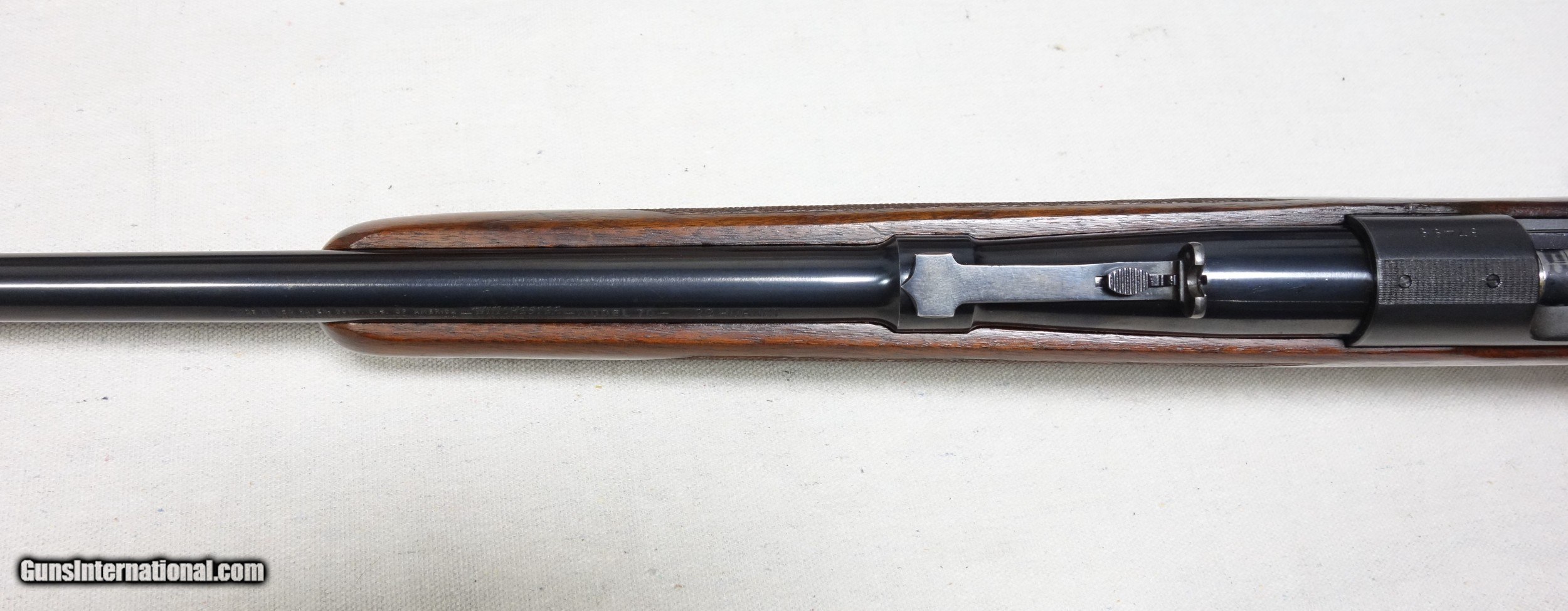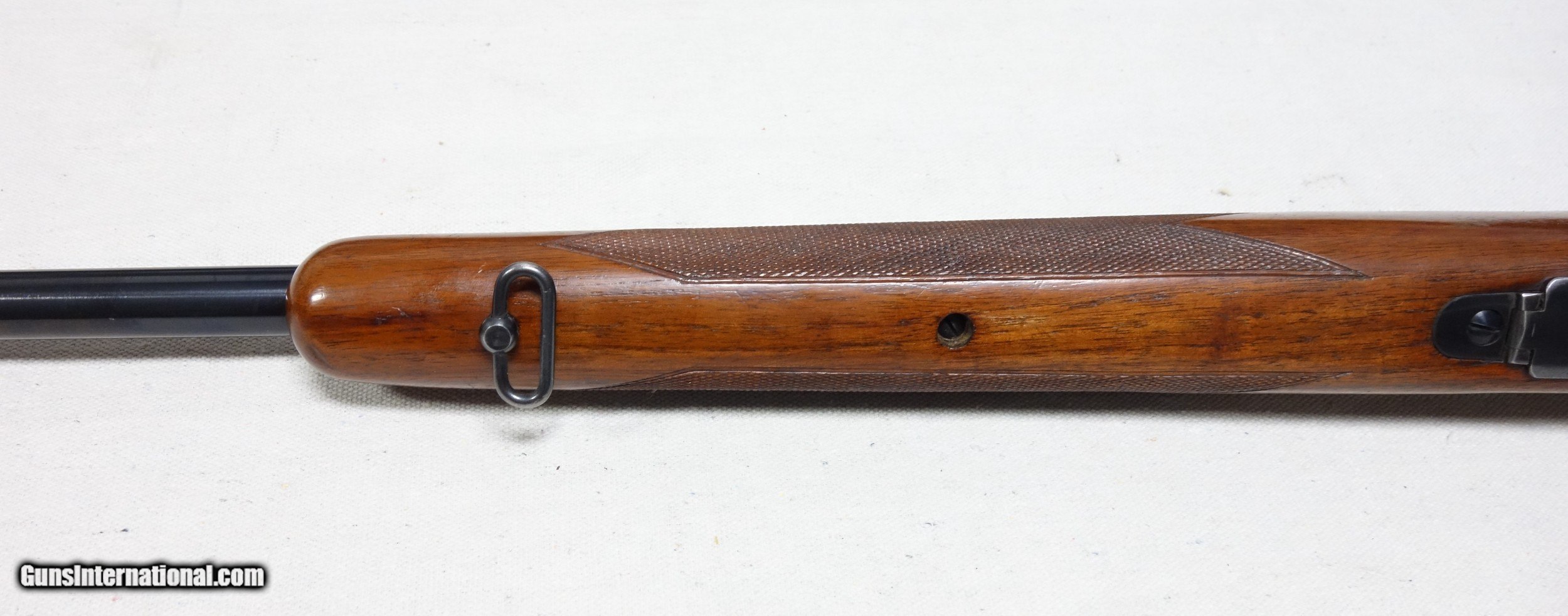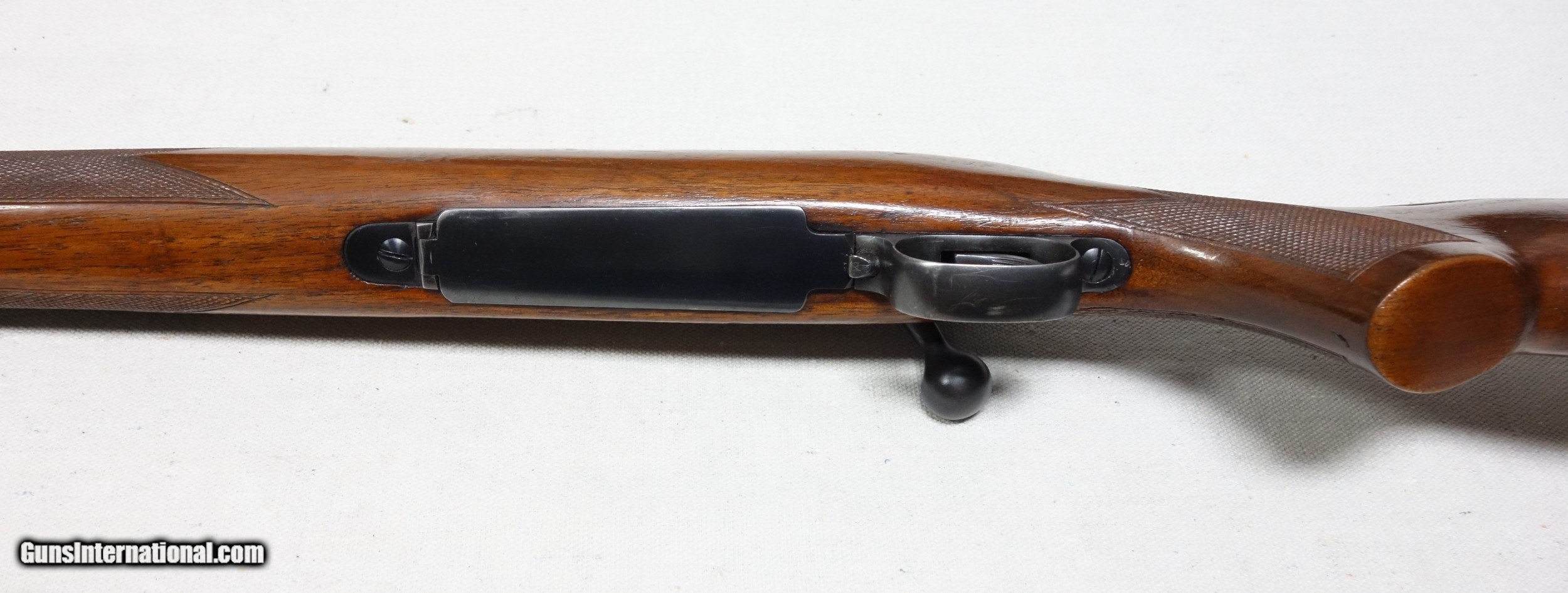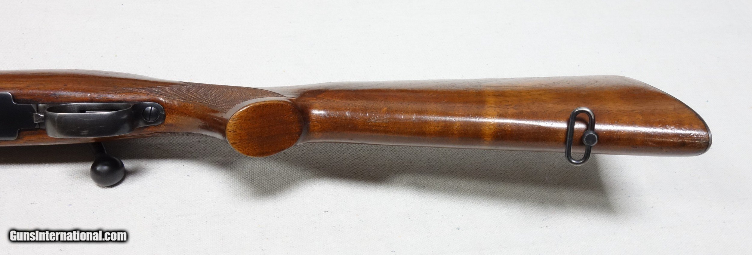 Description: ***SOLD, shipped*** An excellent and super scarce transition era rifle in 22 Hornet caliber. S/N 87*** with matching scribed bolt made in 1948. These "transition" guns were only made for a few years just after WWII from 1946-48 and unlike other post war guns have some unique features including a Pre War style clover leaf tang and the "clam shell" or "rabbit's foot" safety lever. This rifle is in excellent original condition showing 97% Blue other than the buttplate which shows more wear, and 96% Varnish with a few handling marks. 24" Barrel. The bore and mechanics are excellent. I have also verified that the chamber remains a true 22 Hornet and has never been reamed to K. A very nice and very hard to find rifle, and a blast to shoot. Expedited and fully insured shipping from Alaska to your FFL is an additional $75. SOLD Curio/Relic: Yes |