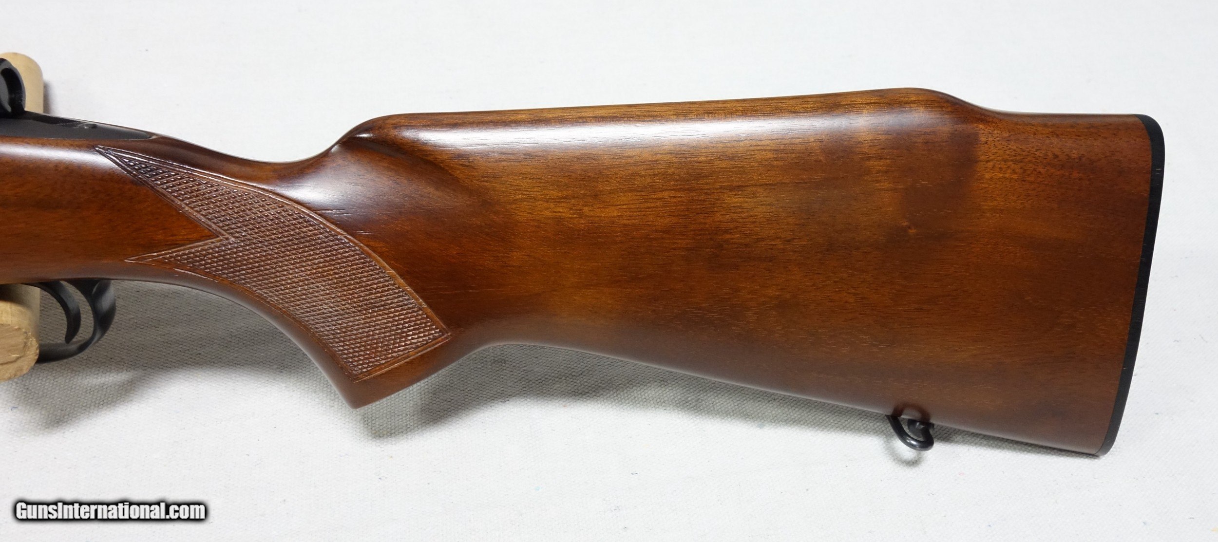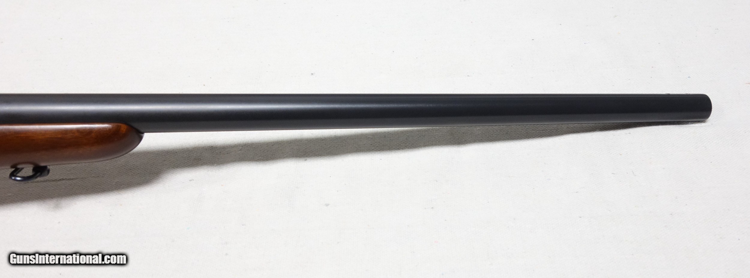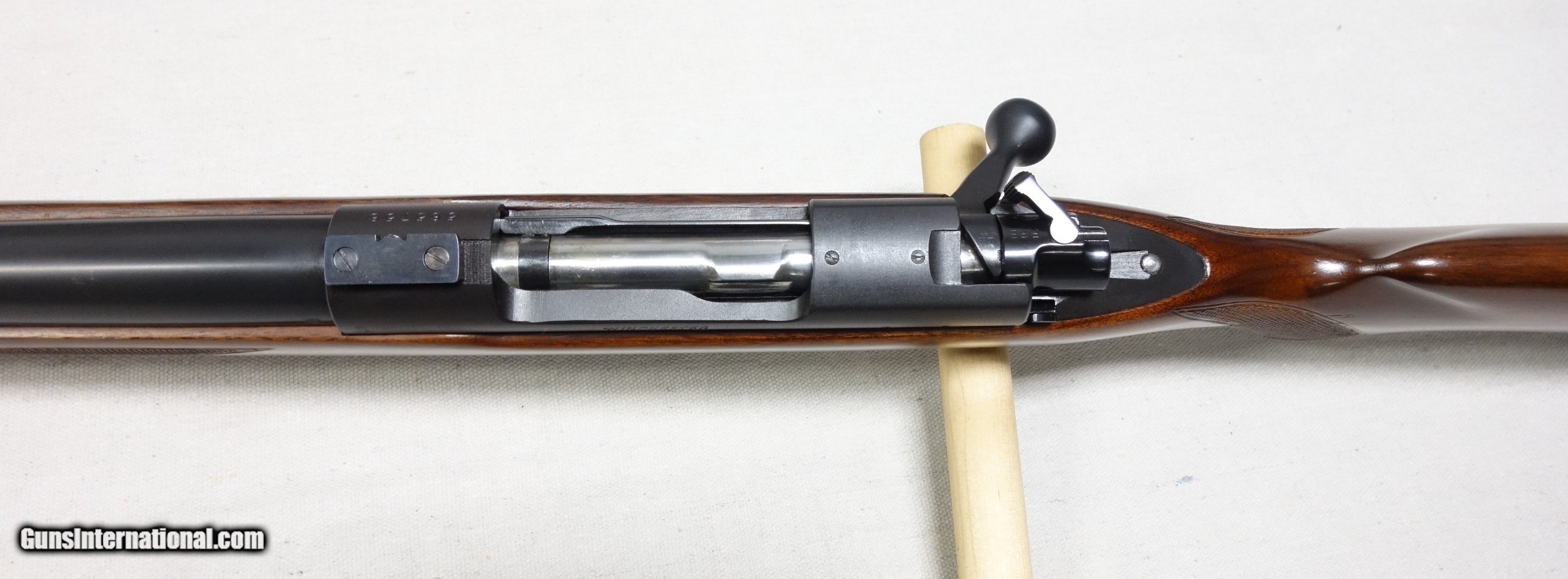 Description: **SOLD, shipped** The best there is... Pristine NIB example of the very rare 220 Swift Varmint style. ONLY 900 ever made in this caliber! S/N 565*** with matching bolt and box made in 1963. 99%+ throughout. 26" stainless steel barrel. Bore and mechanics are expectedly fine. The factory box is also the best of any I've had my hands on, nearly perfect. Inside of the box are all of the usual documents, hang tags, etc. along with cardboard partitions, oil paper and wooden end cap. No collection is complete without a Varmint, and this is the best of the best. Shipping will be in 2 containers. Please add $125 for expedited and fully insured shipping from Alaska to your FFL. SOLD Curio/Relic: Yes |