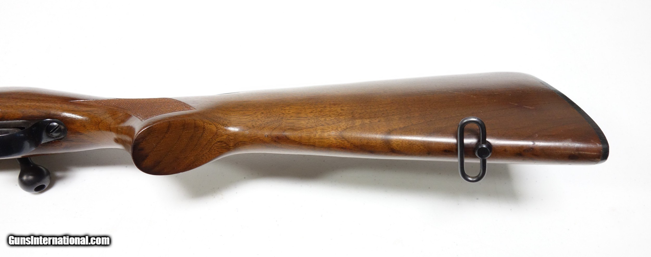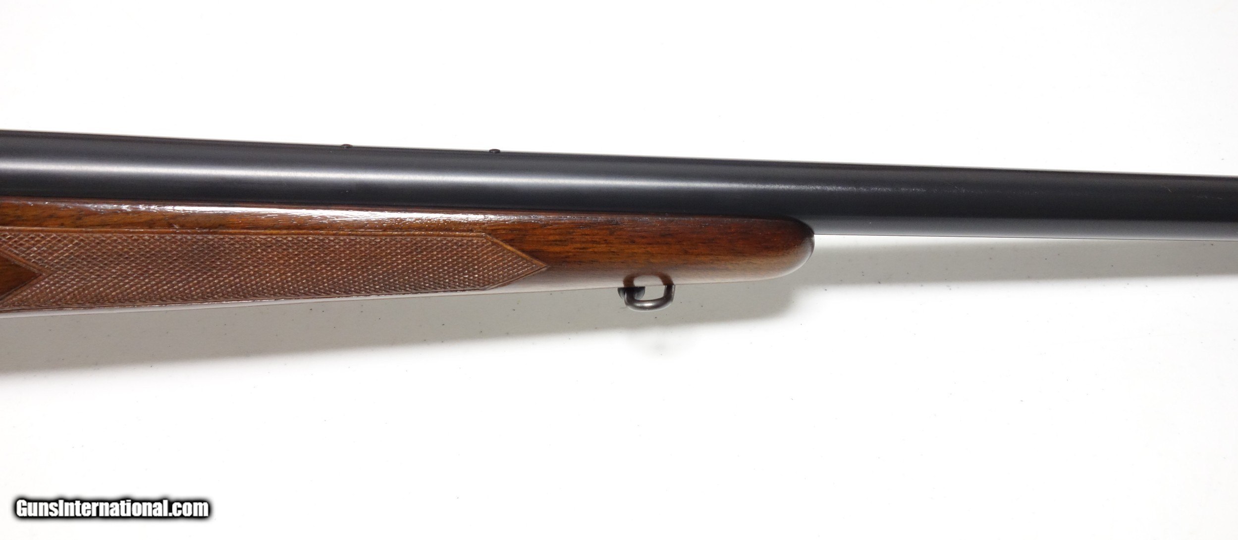 Description: Beautiful Winchester 70 Varmint in rare .220 Swift caliber. Only 900 made out of nearly 600,000 Pre 64 Model 70s! S/N 541*** with matching scribed bolt made in 1961. Easy 97% original condition showing only a few light marks. Insides are immaculate. 26" direct blued Stainless barrel with perfect bore/throat. Mechanical fuction is smooth and proper in all regards. One of the nicest I've had. SOLD Curio/Relic: Yes |