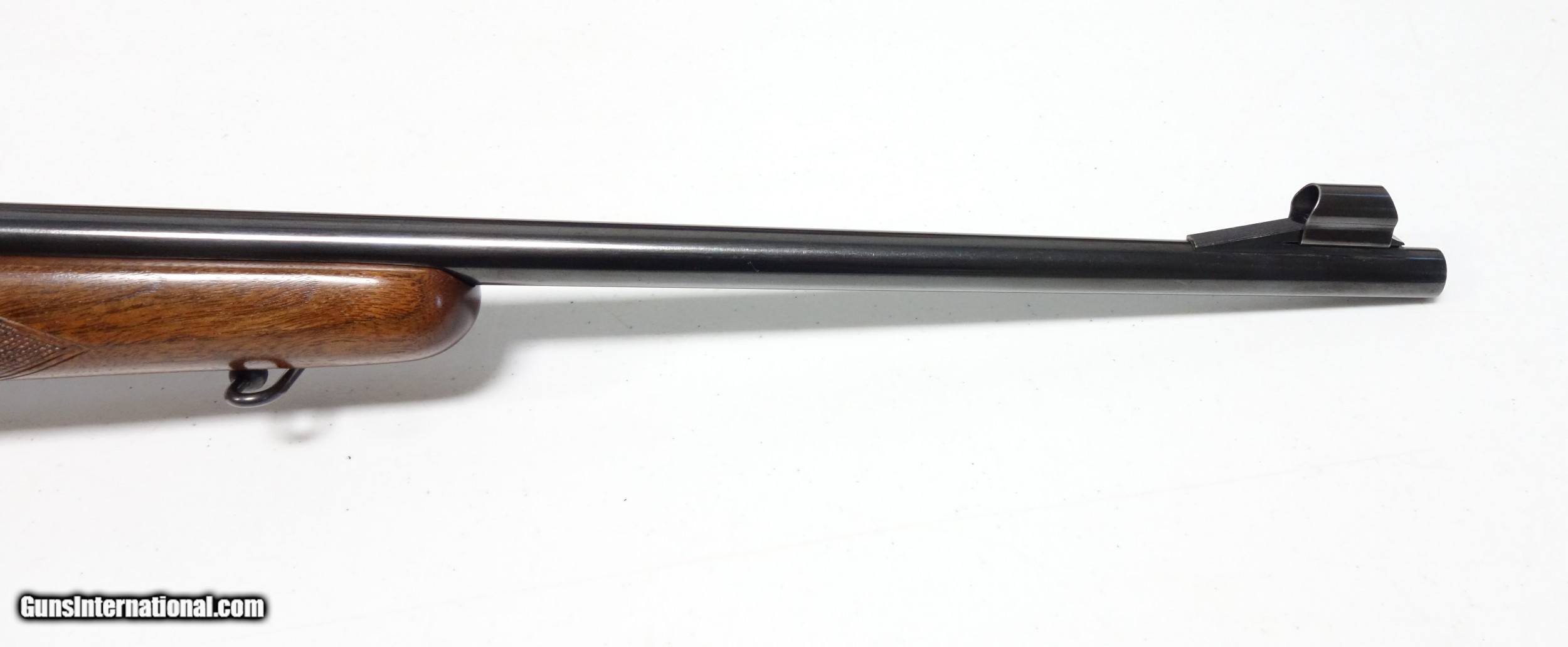 Description: Outstanding Winchester Model 70 featherweight in the versatile and somewhat scarce .243 caliber. These mid fifties guns with the nice wood, nice checkering, and aluminum buttplates can be tough to find, especially in 243. S/N 369*** with matching scribed bolt made in 1956. 99% Blue including fragile aluminum bottom metal and buttplate. Attractive stock with a bit of figure showing near 100% Varnish which may have had some attention over the years since I literally can not find a single mark anywhere beyond a slight chip at the buttplate union. The color, grain fill, sheen, sharp edges, and checkering all look great and appear original. 22" barrel with minty bore. Mechanical function is excellent. SOLD Curio/Relic: Yes |