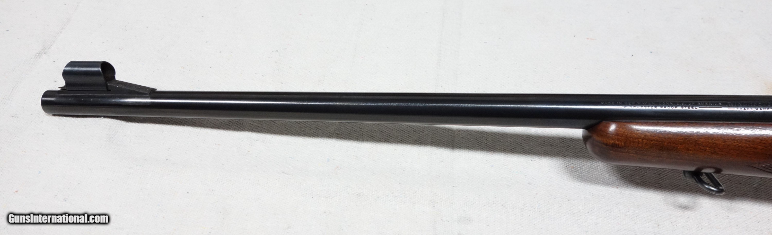 Description: ***SOLD*** Excellent example of the scarce standard weight .243 Win. Model 70 with a steel buttplate. Most 243s were made in other styles such as featherweight, target, varmint, etc. Of the relative few standard weights made, many will have the later and less desirable plastic buttplate. S/N 346577 with matching scribed bolt made in 1955. 99%+ Blue with no mentionable discrepancy. 98% Varnish with a few light pressure dents and a fairly common finish check near the heel of buttplate. The wood is beautiful with a dark, rich color and nice grain pattern. The bore and mechanics are crisp and minty. A very nice and infrequently encountered rifle. Please add $75 for expedited and fully insured shipping from Alaska. SOLD Curio/Relic: Yes |