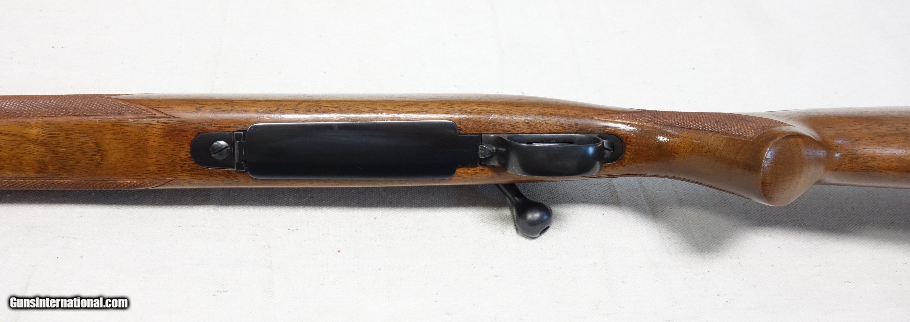 Description: Difficult to find 243 caliber in a standard weight rifle with steel butt plate. (most were fwts. or later plastic butt plates). This is a very clean rifle throughout and looks virtually new inside. 98% Blue. Wood has some scattered light impressions. S/N 393*** with matching scribed bolt made in 1957. 24" barrel. Flawless mechanical functions and bore. Please add $75 for expedited and fully insured shipping from Alaska to your FFL. SOLD Curio/Relic: Yes |