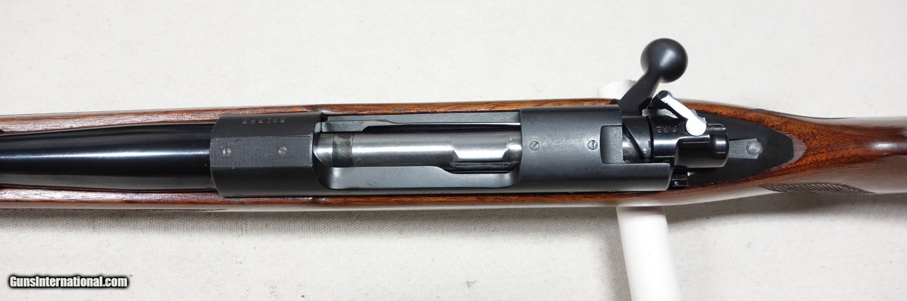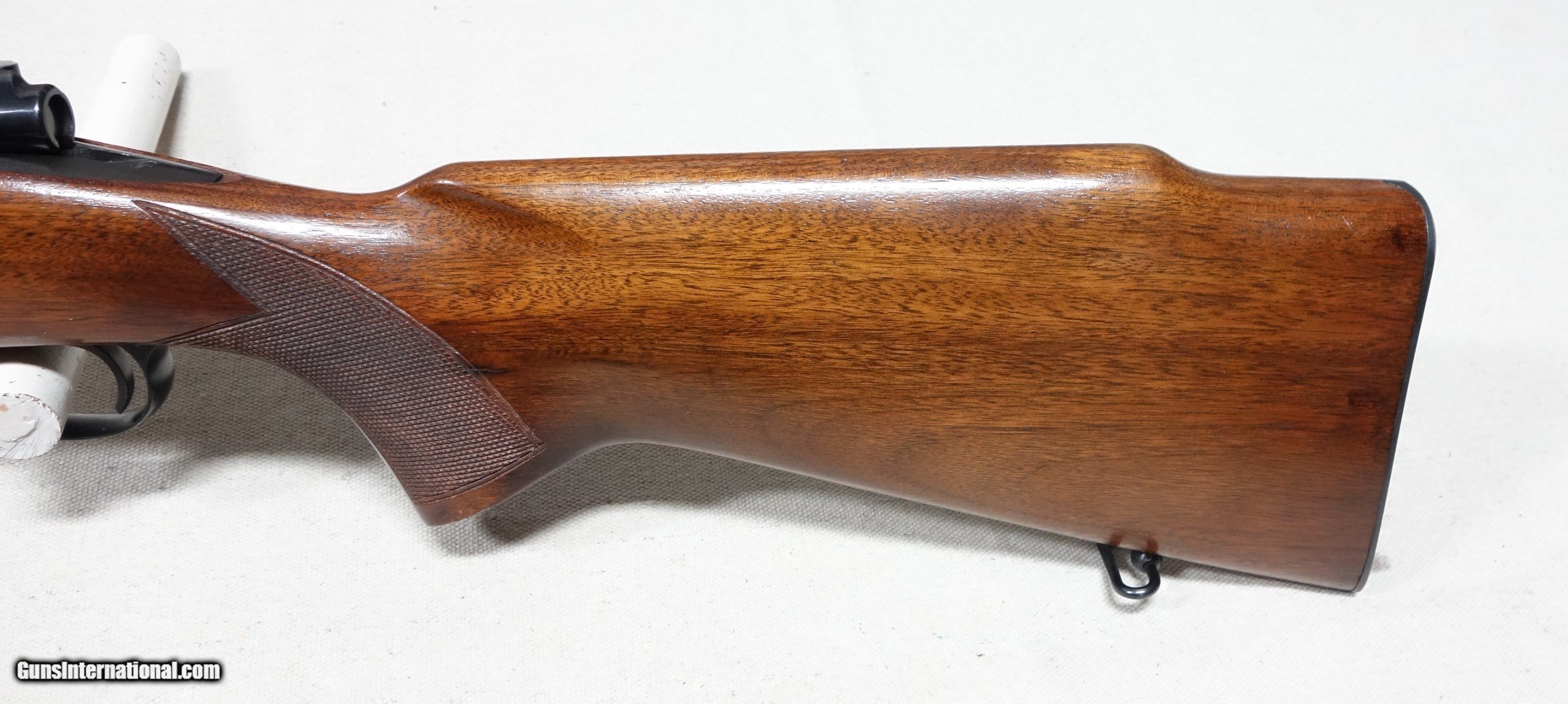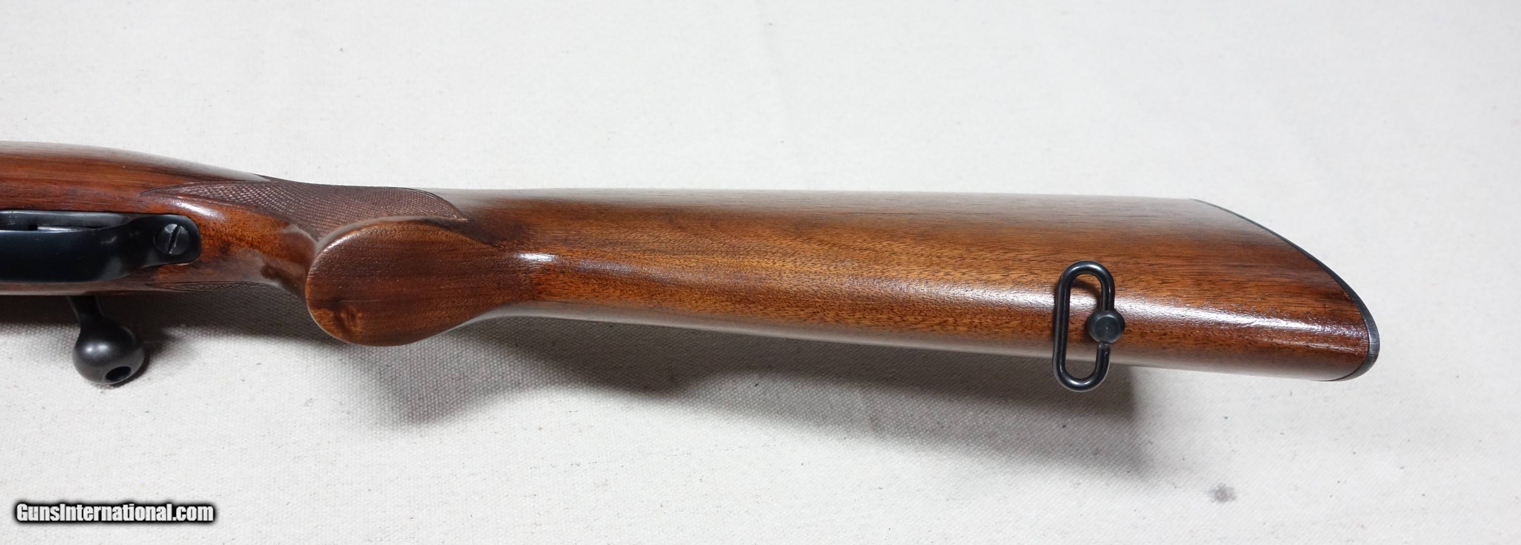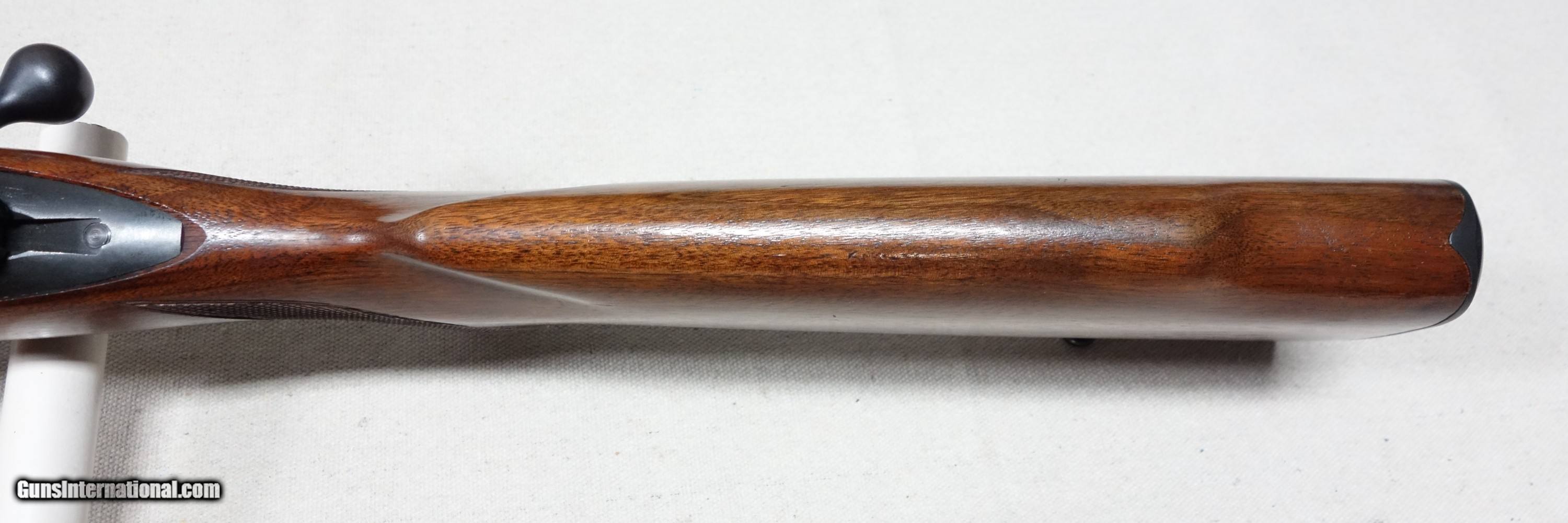 Description: Hard to find, quality built .243 standard weight with the STEEL buttplate in exceptional condition. There were not a lot of 243 standard weights made to begin with, and since it was a later caliber offering of around 1955, many of those encountered will be later production guns with the plastic buttplates and narrow checkering, etc. This one is S/N 391393 with a matching scribed bolt made in 1956. Clean and original in all regards, showing 98% finishes on both metal and wood. The bore is excellent, as are all mechanical functions. An extremely popular caliber and a great addition to any collection. Please add $100 for expedited and fully insured shipping from Alaska in a custom cut, foam lined box. SOLD Curio/Relic: Yes |