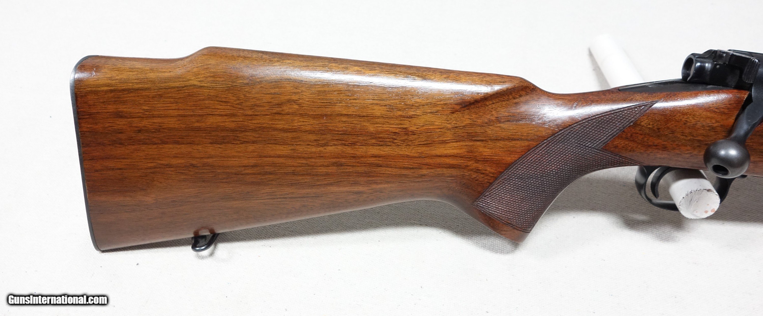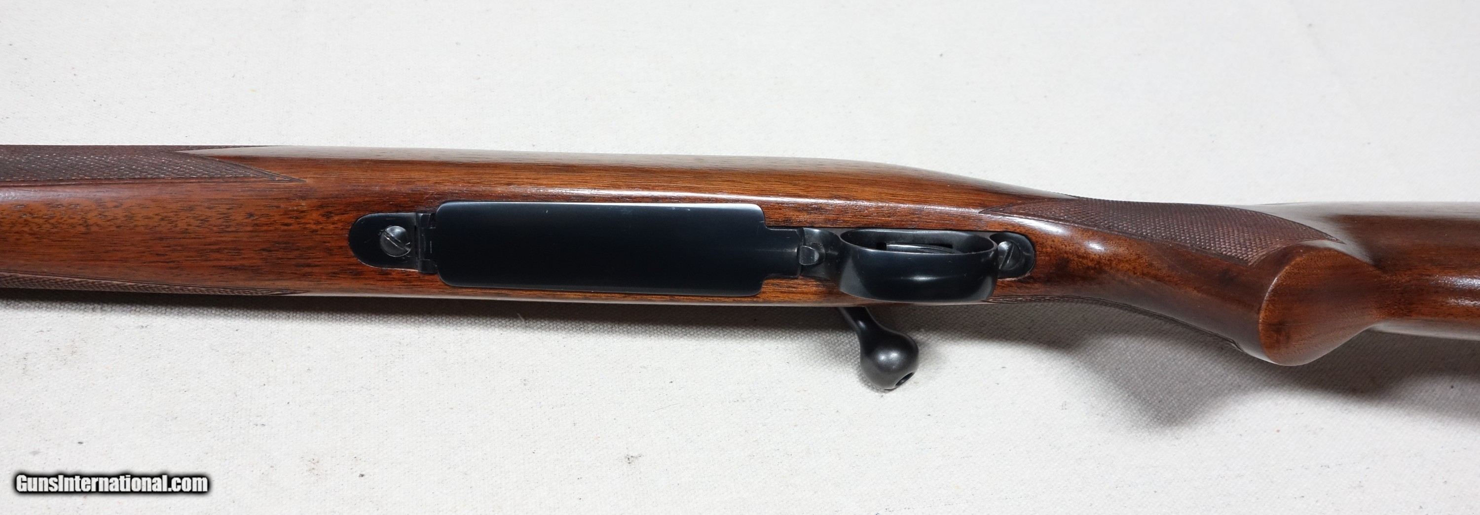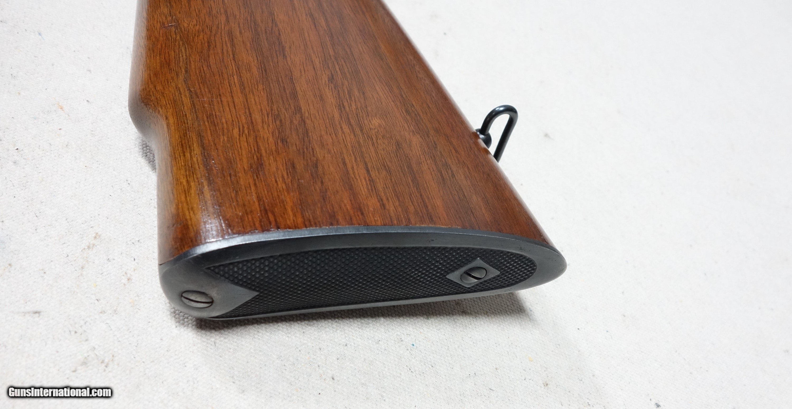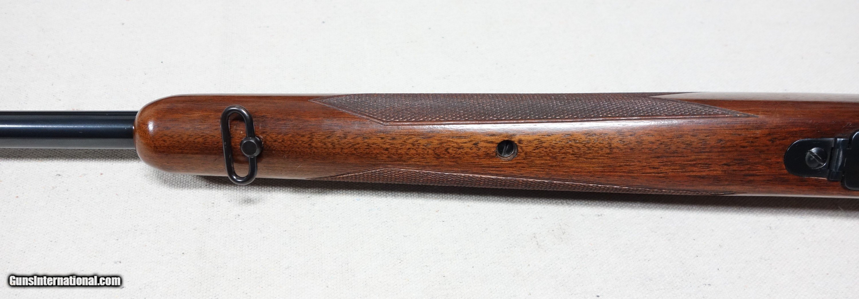 Description: Hard to find, quality built .243 standard weight with the STEEL buttplate in exceptional condition. There were not a lot of 243 standard weights made to begin with, and since it was a later caliber offering of around 1955, many of those encountered will be later production guns with the plastic buttplates and narrow checkering, etc. This one is S/N 391393 with a matching scribed bolt made in 1956. Clean and original in all regards, showing 98% finishes on both metal and wood. The bore is excellent, as are all mechanical functions. An extremely popular caliber and a great addition to any collection. Please add $100 for expedited and fully insured shipping from Alaska in a custom cut, foam lined box. SOLD Curio/Relic: Yes |