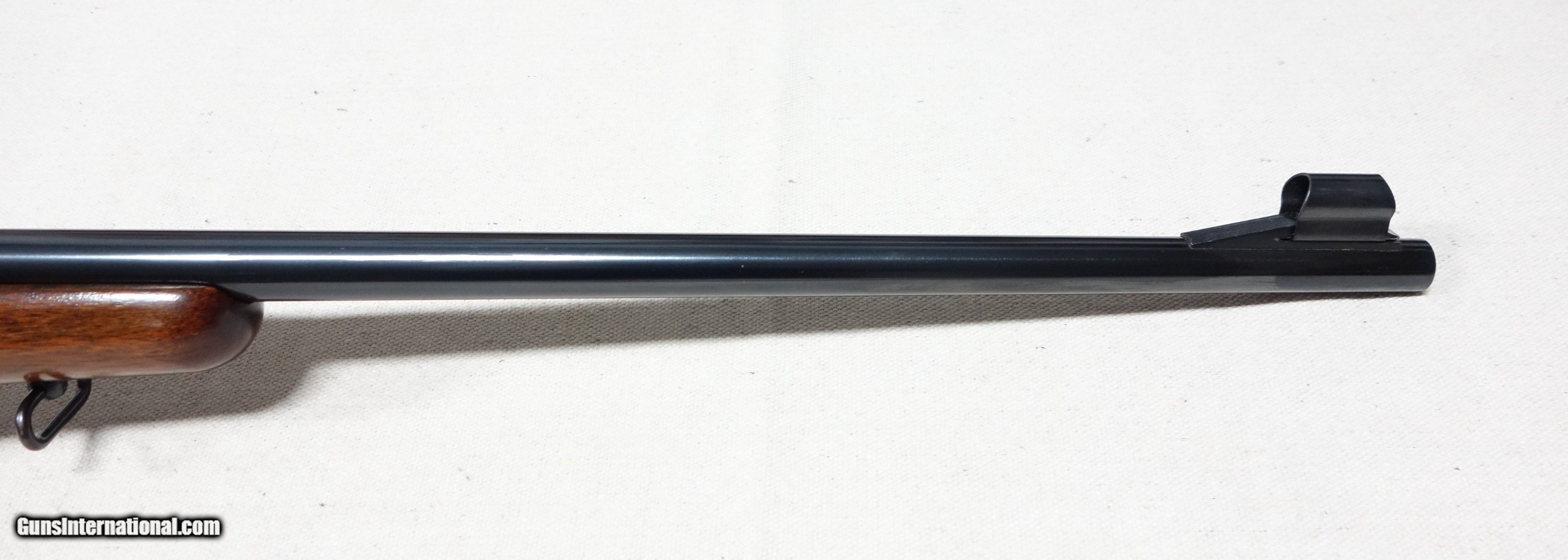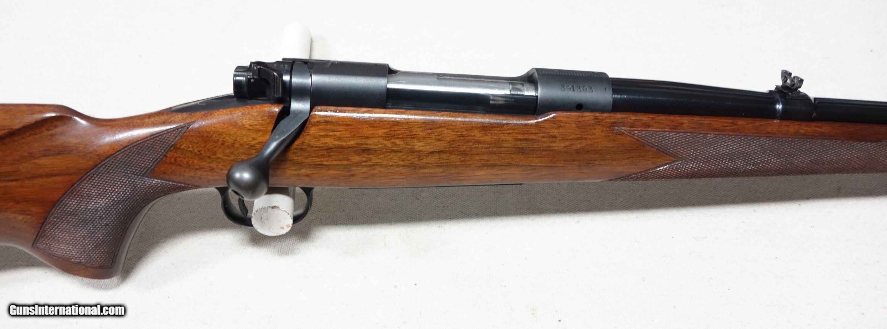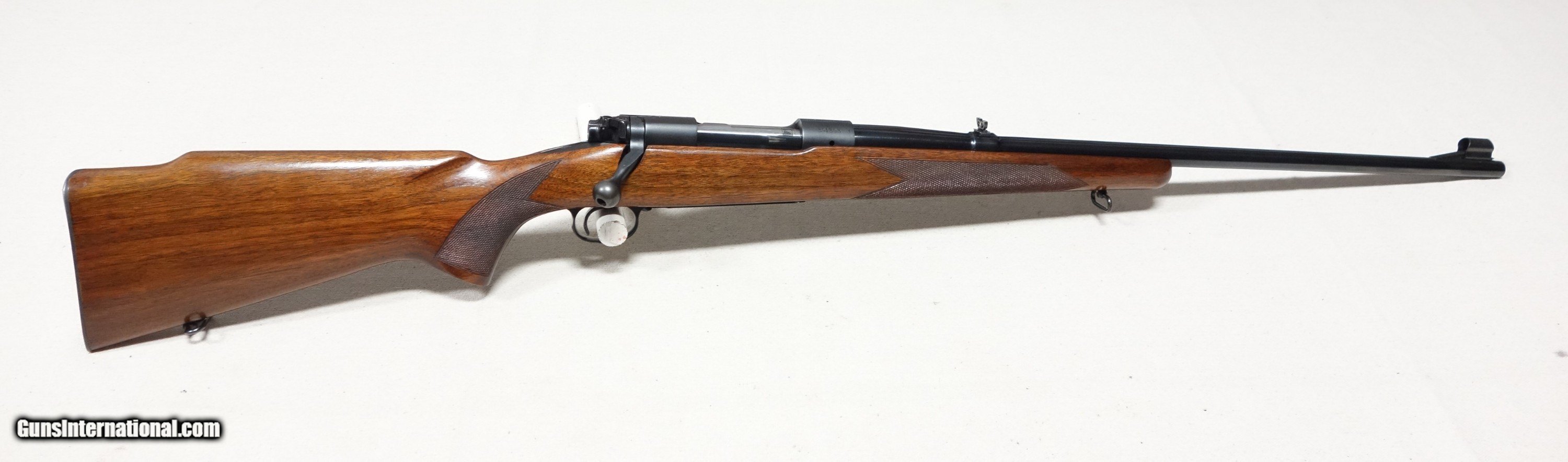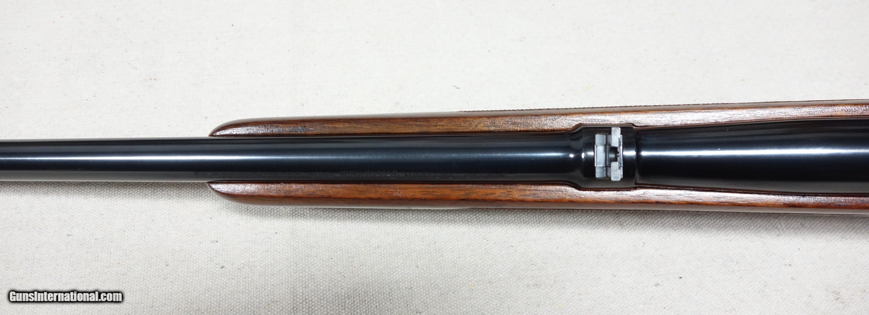 Description: Hard to find, quality built .243 standard weight with the STEEL buttplate in exceptional condition. There were not a lot of 243 standard weights made to begin with, and since it was a later caliber offering of around 1955, many of those encountered will be later production guns with the plastic buttplates and narrow checkering, etc. This one is S/N 391393 with a matching scribed bolt made in 1956. Clean and original in all regards, showing 98% finishes on both metal and wood. The bore is excellent, as are all mechanical functions. An extremely popular caliber and a great addition to any collection. Please add $100 for expedited and fully insured shipping from Alaska in a custom cut, foam lined box. SOLD Curio/Relic: Yes |