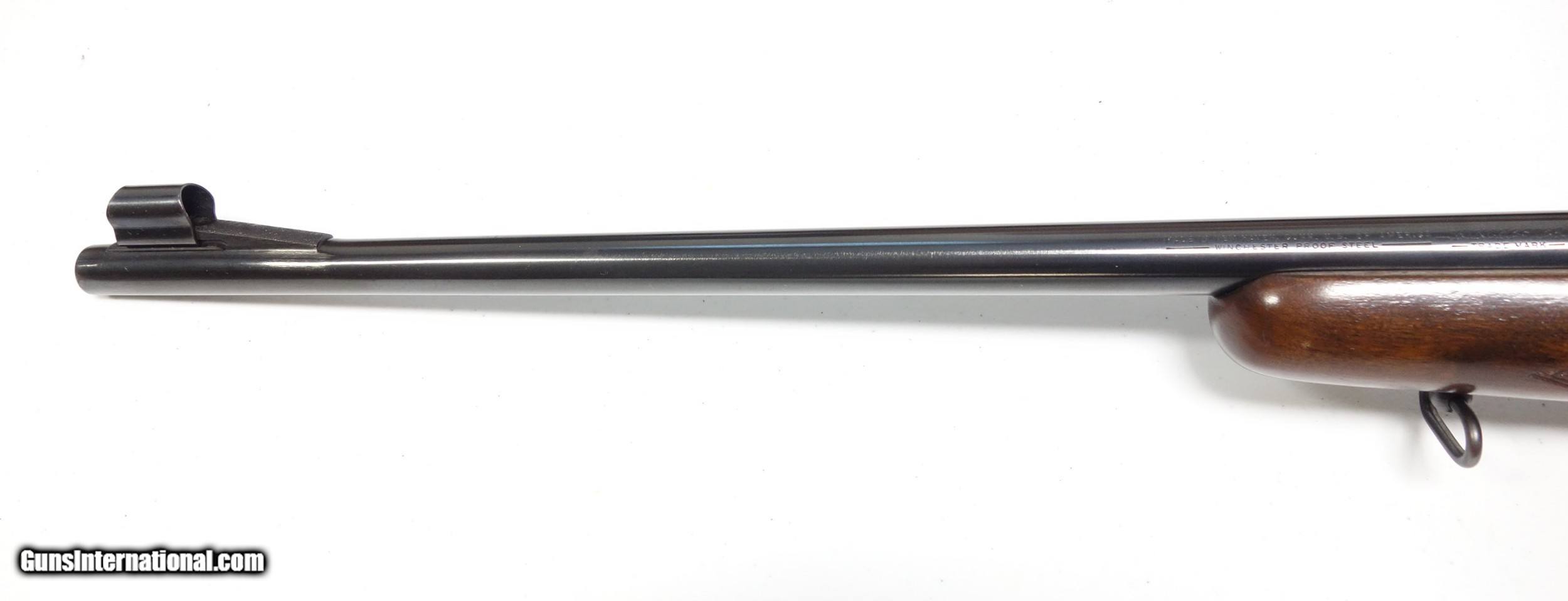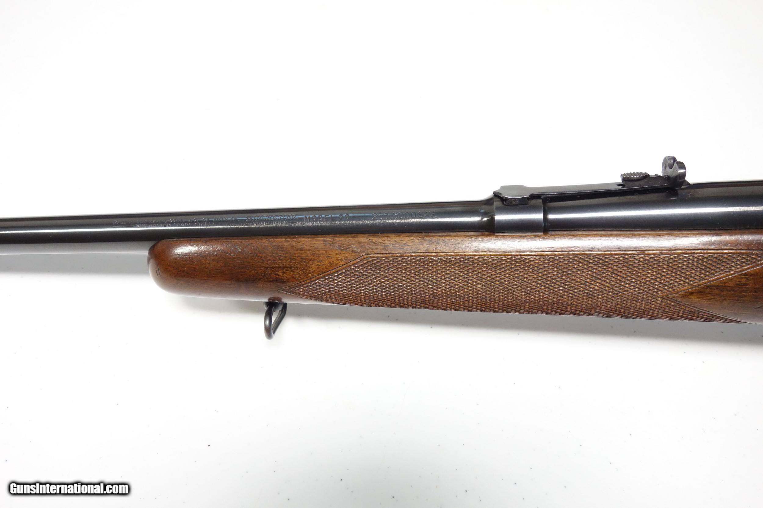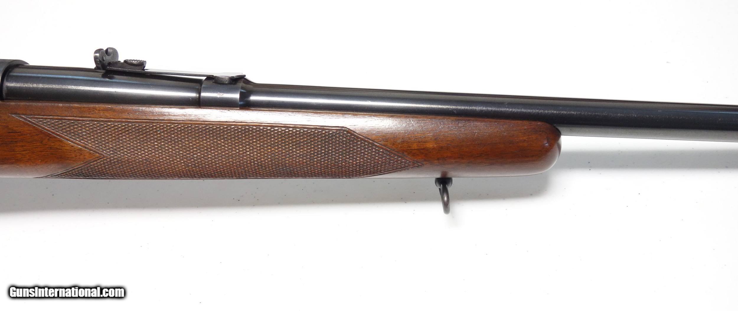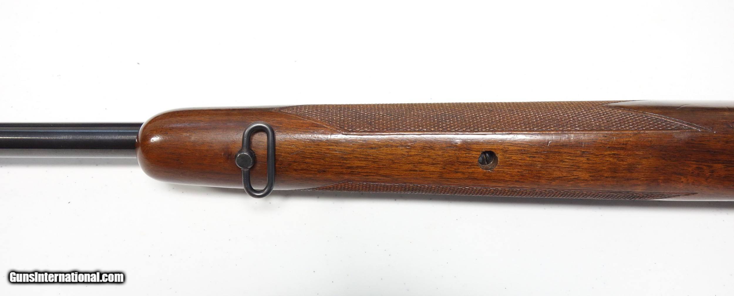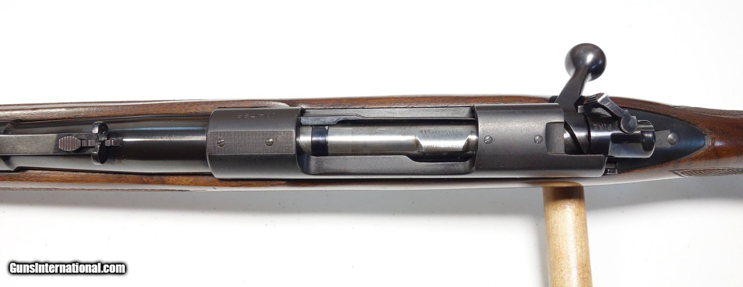 Description: Another genuine "Holy Grail" type rifle that you will not often see from any other source! This one has it all: Condition, Originality, and in an ULTRA scarce caliber. This is a Pre 64 Winchester Model 70 in 250-3000 Savage. S/N 114*** with matching scribed bolt made in 1949. 97% Blue, 97% Varnish. All of the unique inner components are correct including original #7 Mag box, #5 ejector, and the correctly positioned bolt collar/stop. I did notice during disassembly that the forward partition of the mag box has been removed. This is a very securely crimped piece so am guessing a previous owner must have popped it out to shoot longer profile bullets. I have personally confirmed that the rifle loads, stacks and cycles standard factory ammo perfectly with no issues whatsoever. The Barrel is 24" with an excellent bore. Mechanics are likewise smooth and functioning properly. This is a really great rifle and certainly one that does not come along every day! SOLD Curio/Relic: Yes |