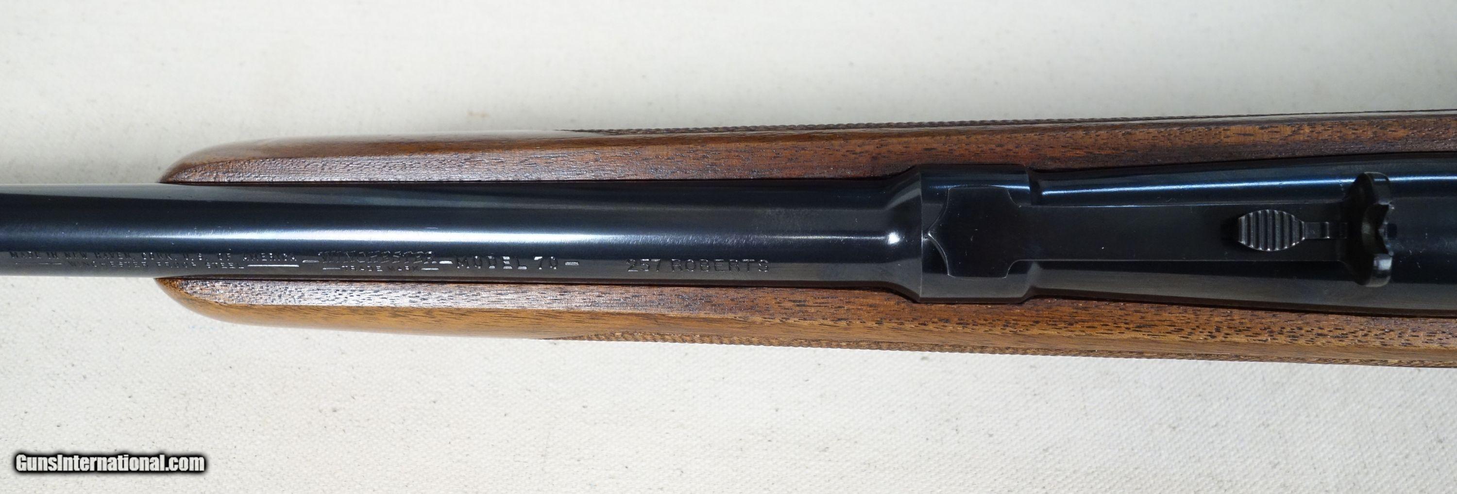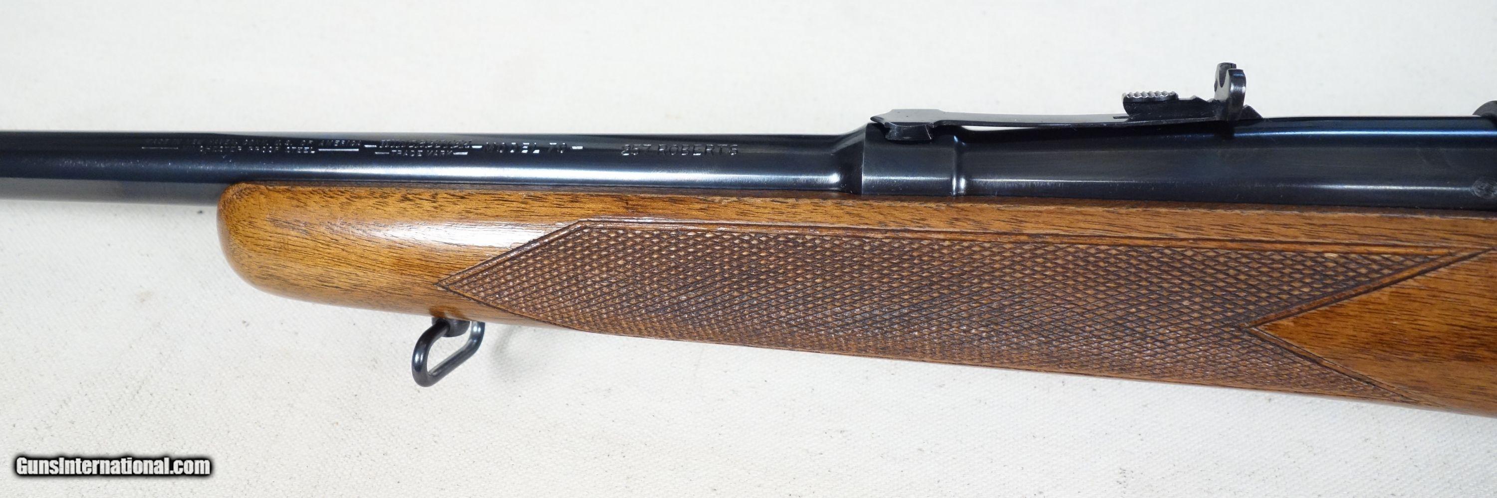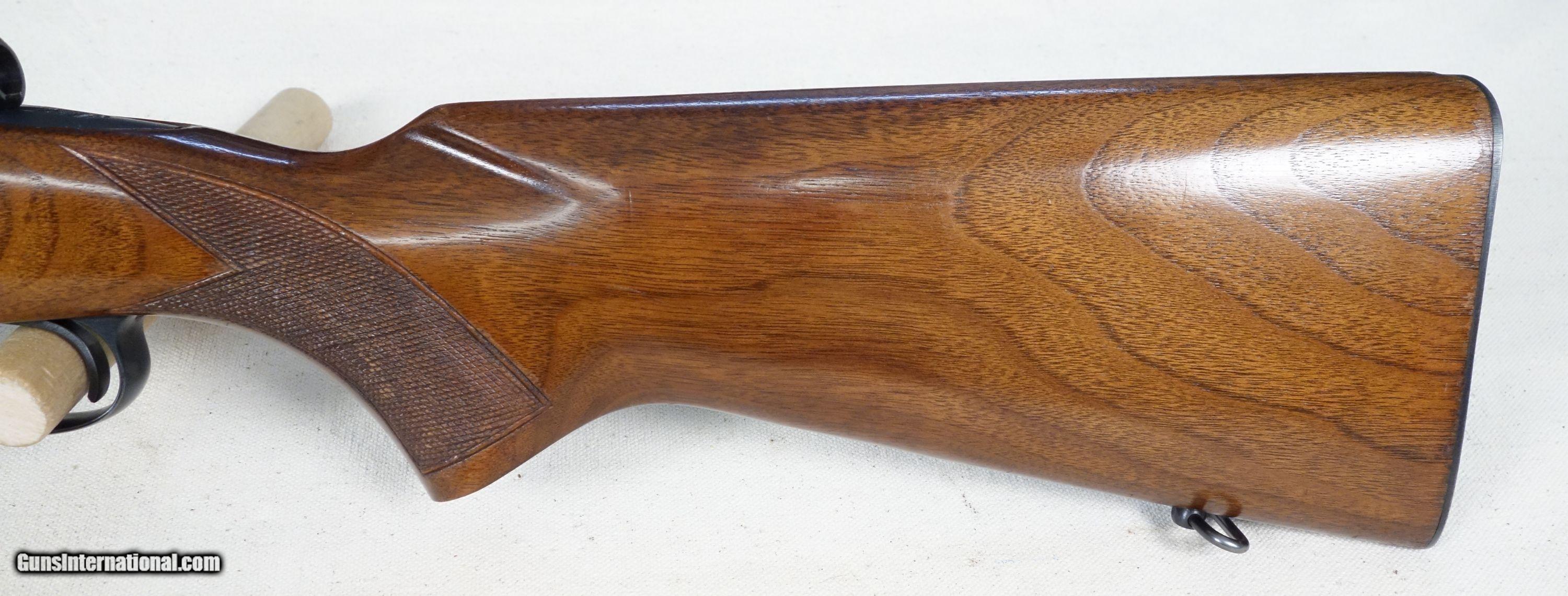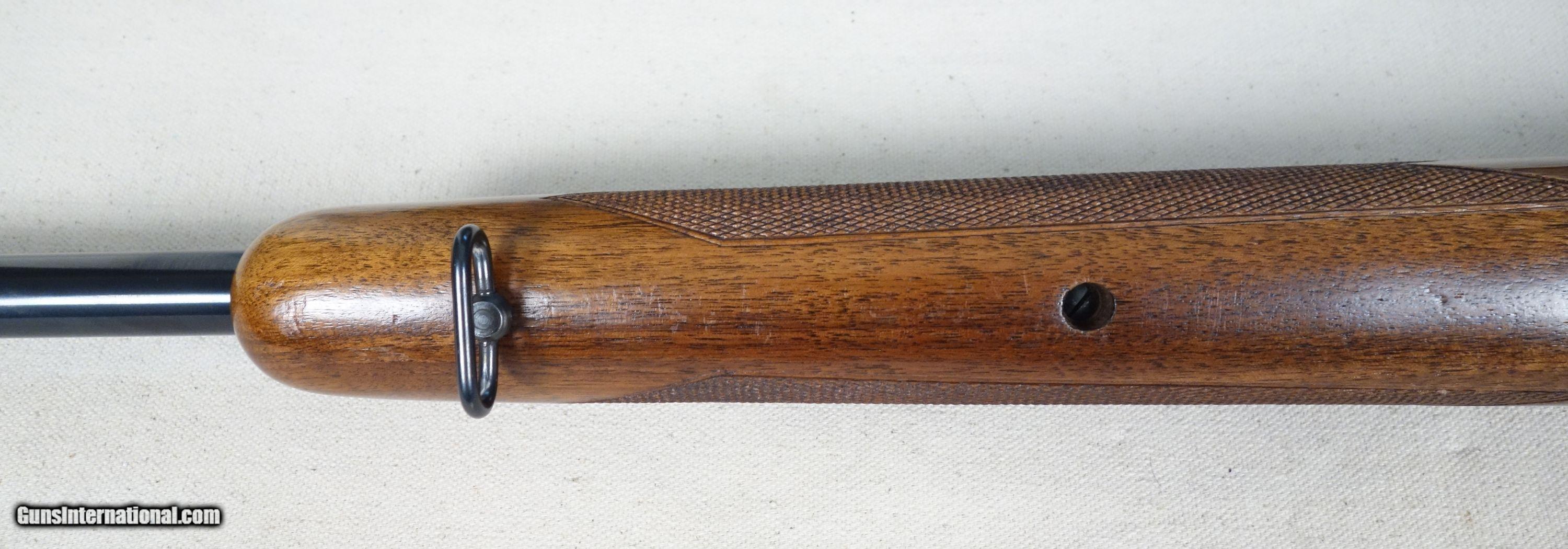 Description: Another great, unaltered standard rifle with no issues. This one is in .257 Roberts caliber S/N 136*** with matching bolt Mfg. 1950. Has a 24" barrel with excellent bore. 98% Blue showing less at heel of butt plate, 98% Varnish on the nice honey colored wood. Straight comb, all correct components. 100% original. I have had the rifle apart as usual and it is like new inside. with no corrosion, staining, bedding, routing, cracks, etc. Good 70s are getting harder to find, especially in the scarcer calibers such as this. This one is very nice. Please click on the top blue "see all listings" button for more exceptional vintage collector arms to be added daily. SOLD Curio/Relic: Yes |