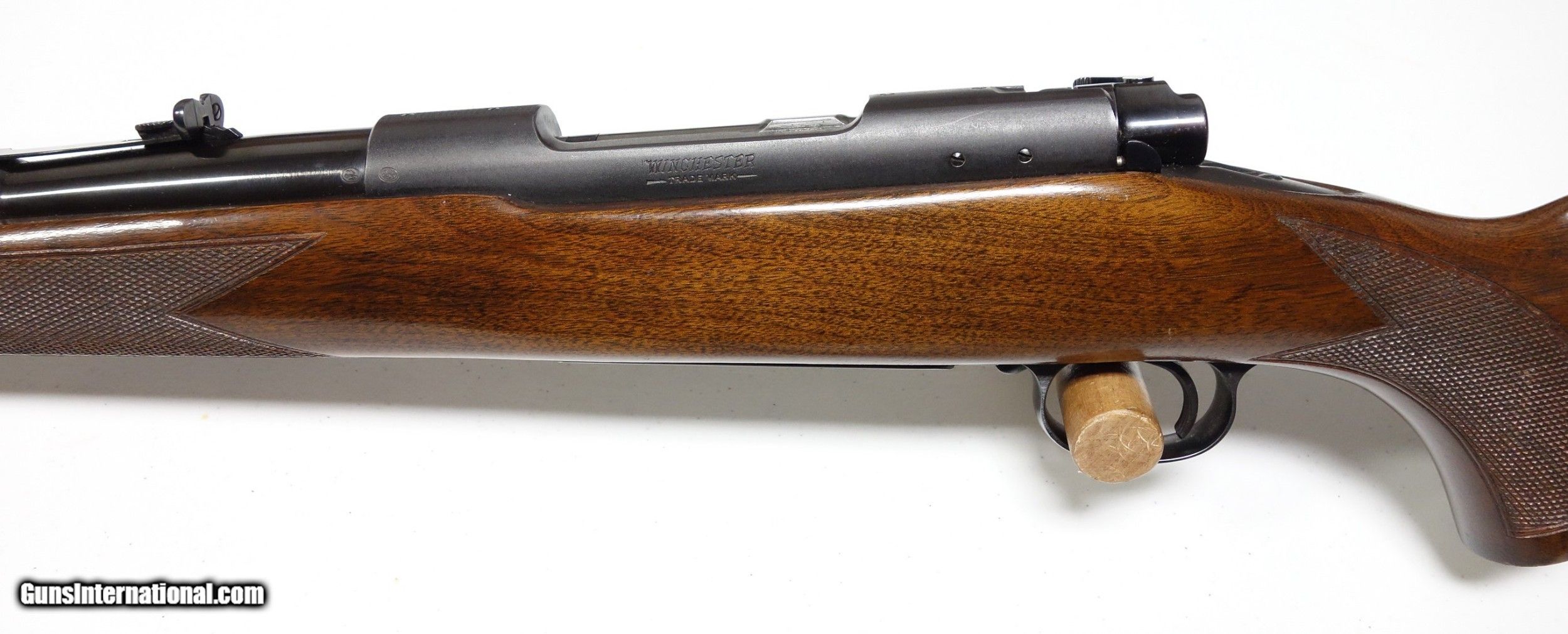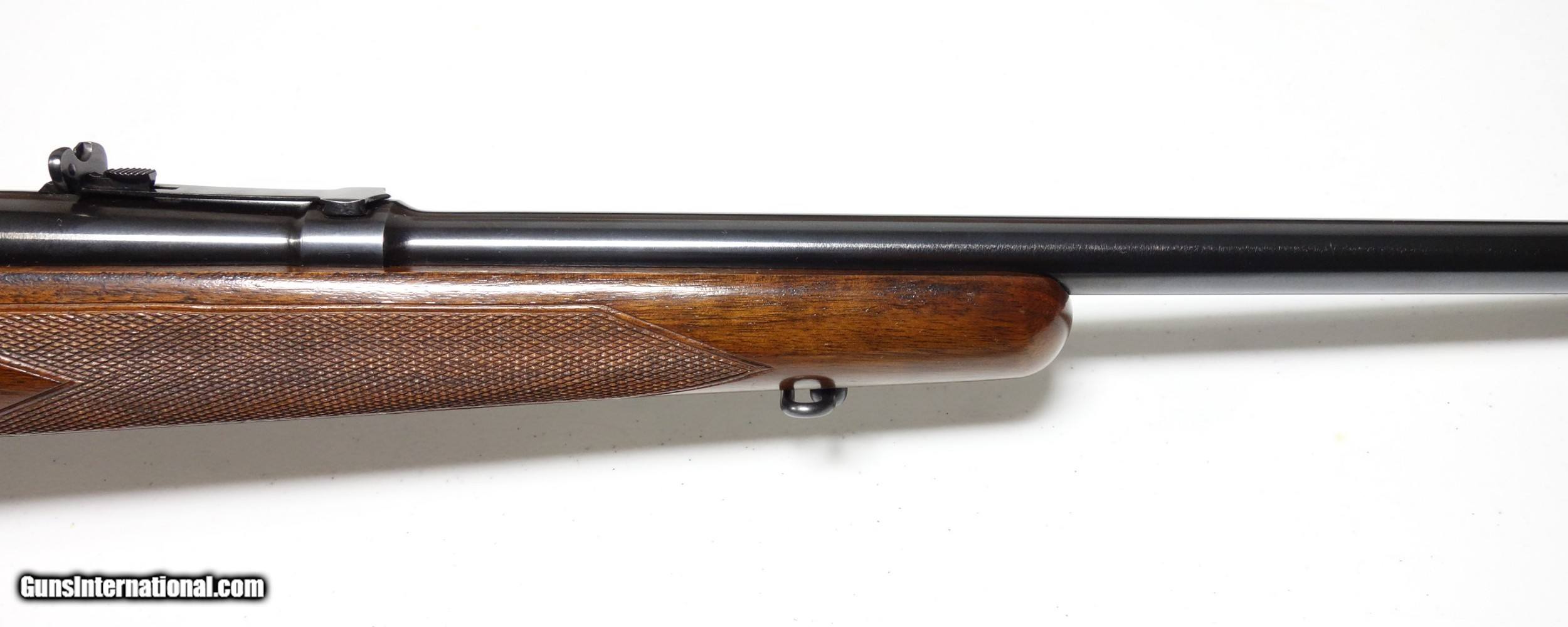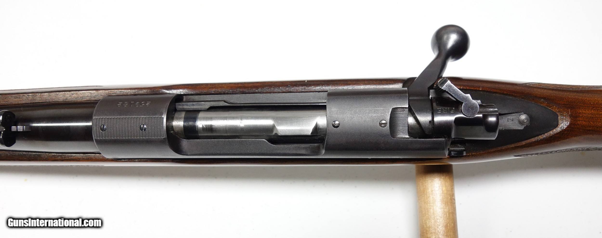 Description: Outstanding rifle in scarce .257 Roberts caliber. S/N 259*** with matching scribed bolt Made in 1953. Better than 98% Blue and 98% Varnish. 24" Barrel with an excellent bore. Desireable straight comb and solid bolt knob. Mechanical function is smooth and proper. Factory correct appointments throughout. They don't come much better! SOLD Curio/Relic: Yes |