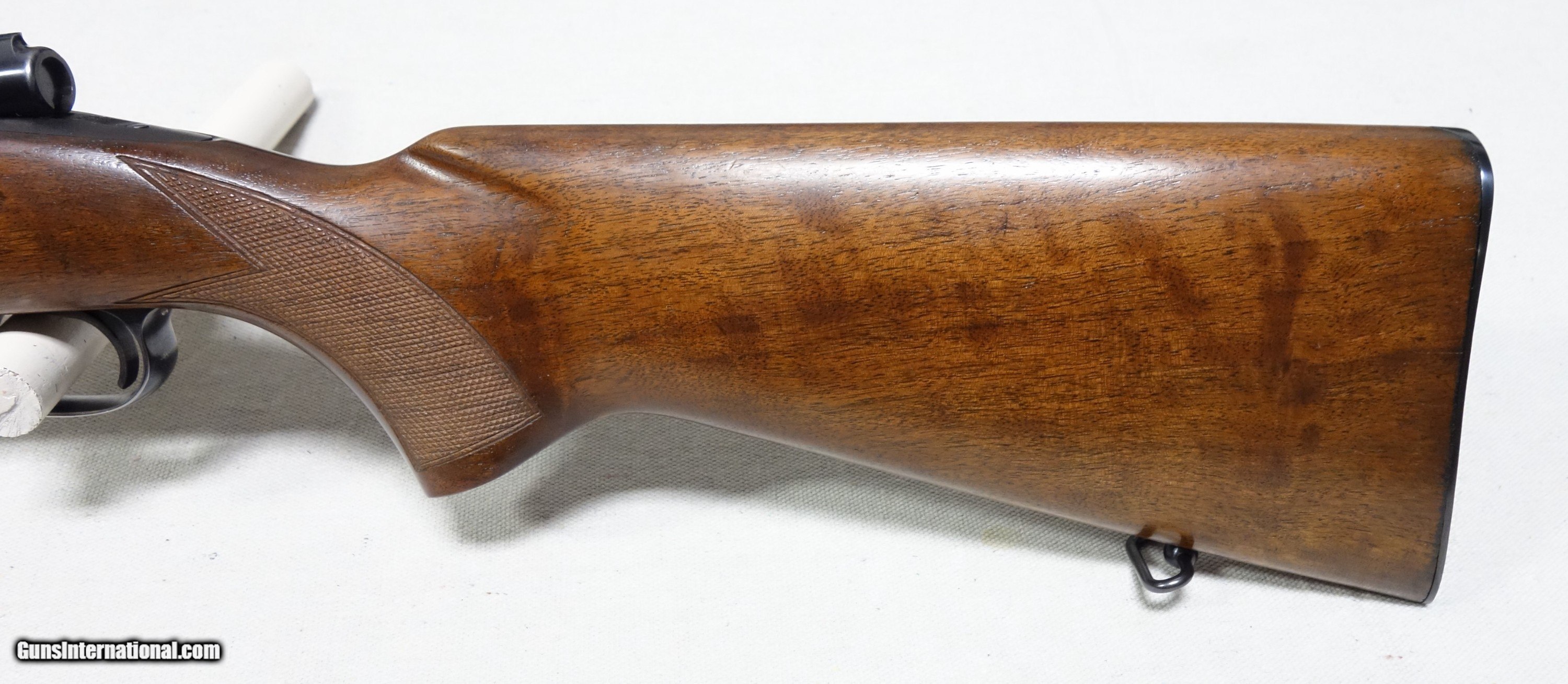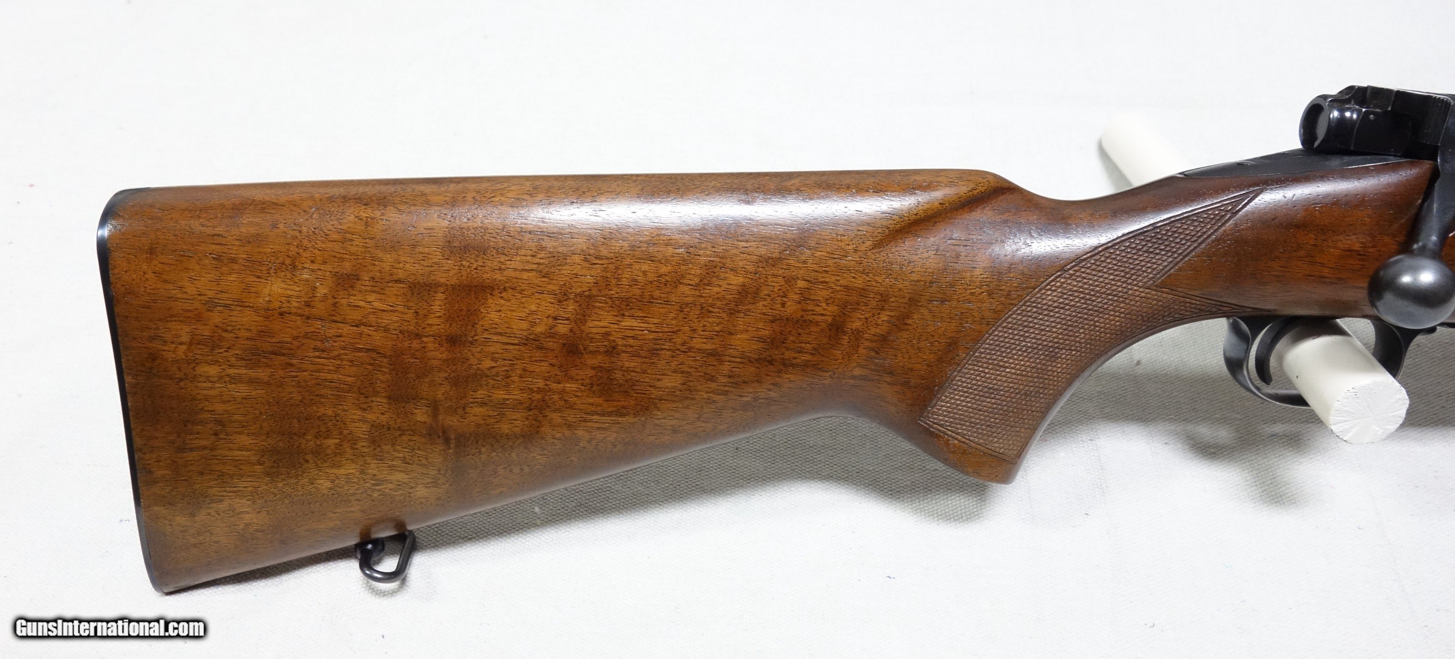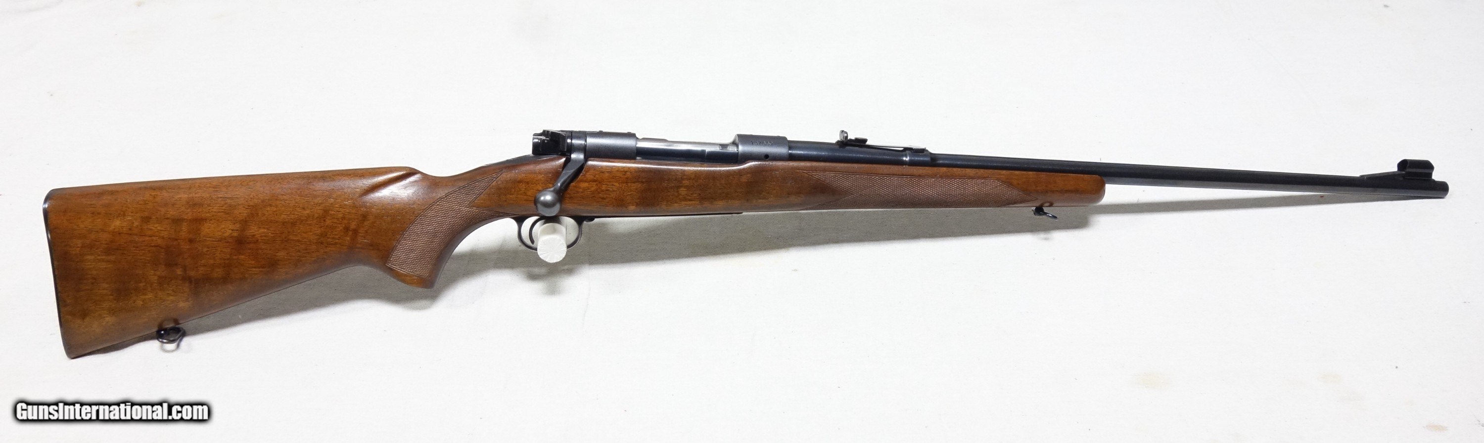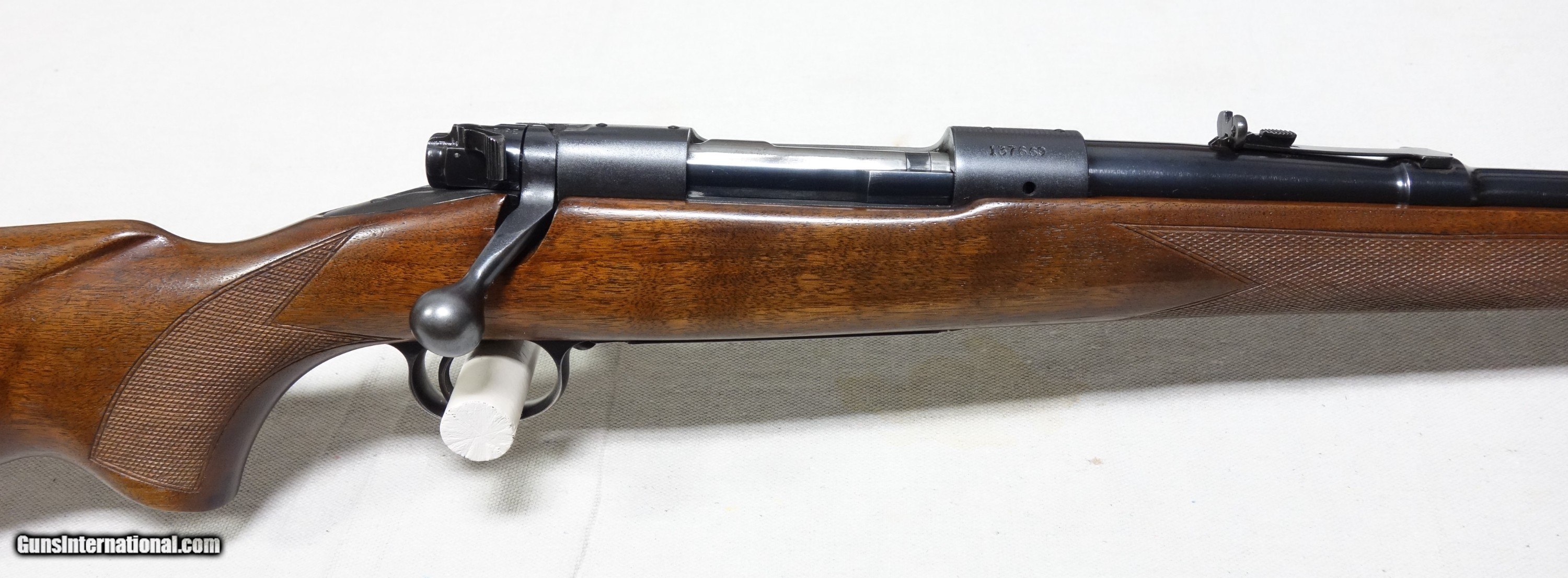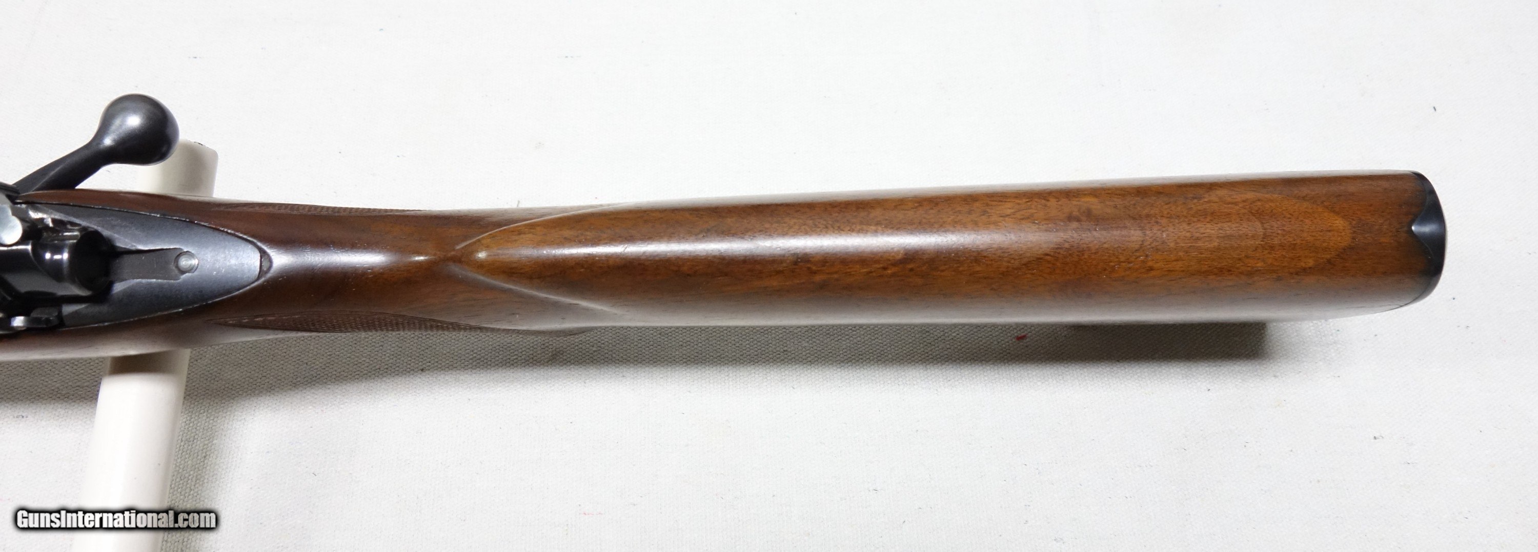 Description: ***SOLD*** Here's a good looking Model 70 in the super versatile and quite scarce 257 Roberts caliber. There were less than 15,000 units made in this caliber representing only 2 1/2 percent of total Pre 64 Model 70 production. A fantastic all around cartridge that can be used for everything from small varmints to medium/big game with almost no felt recoil. Perfect for wives, teens, or seasoned veterans who've figured out they can get the job done just fine without having their retinas detached. S/N 137669 with matching bolt made in 1950. Low comb stock with correct components present. 24" barrel with excellent bore and excellent mechanics. Overall external condition is very good showing original finishes with a light cleaning, no cracks, along with very clean and unaltered internals. I would rate at 96% or so. Not as pristine as some of my offerings, but a very solid and plenty sharp rifle in the somewhat difficult to find 257 Roberts caliber for under 3 grand...and that's not something you'll see every day. Please add $100 for expedited and fully insured shipping from Alaska to your receiving FFL dealer. SOLD Curio/Relic: Yes |
